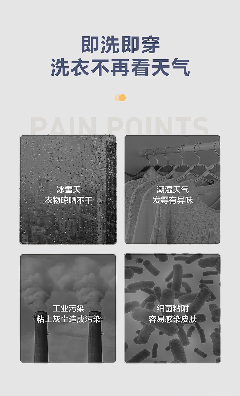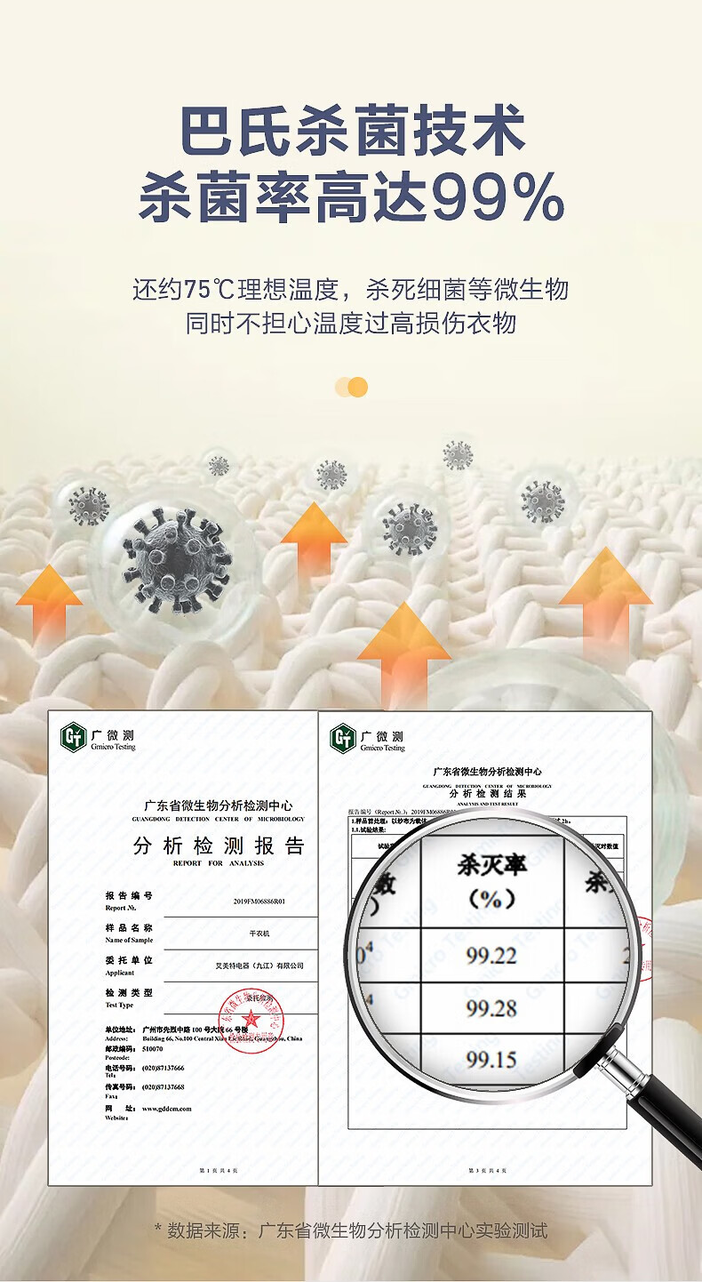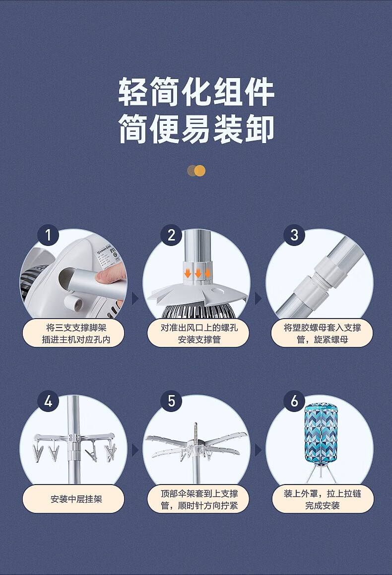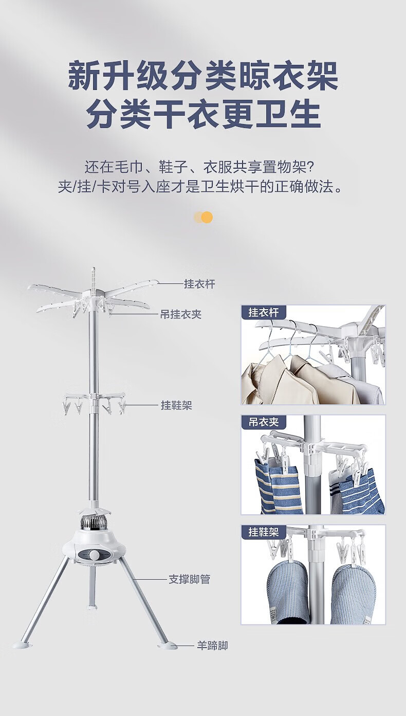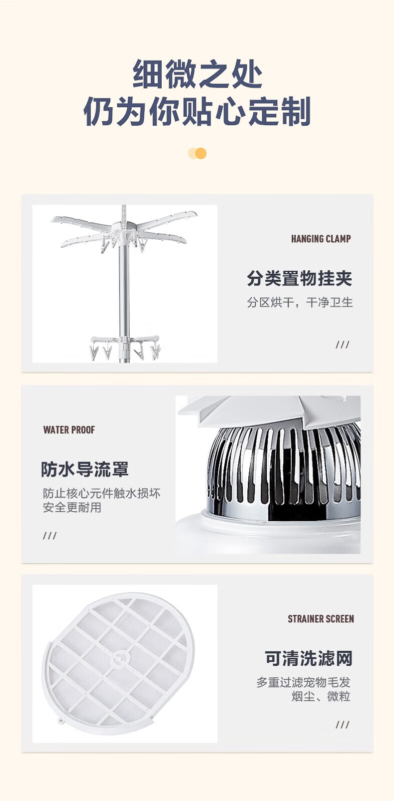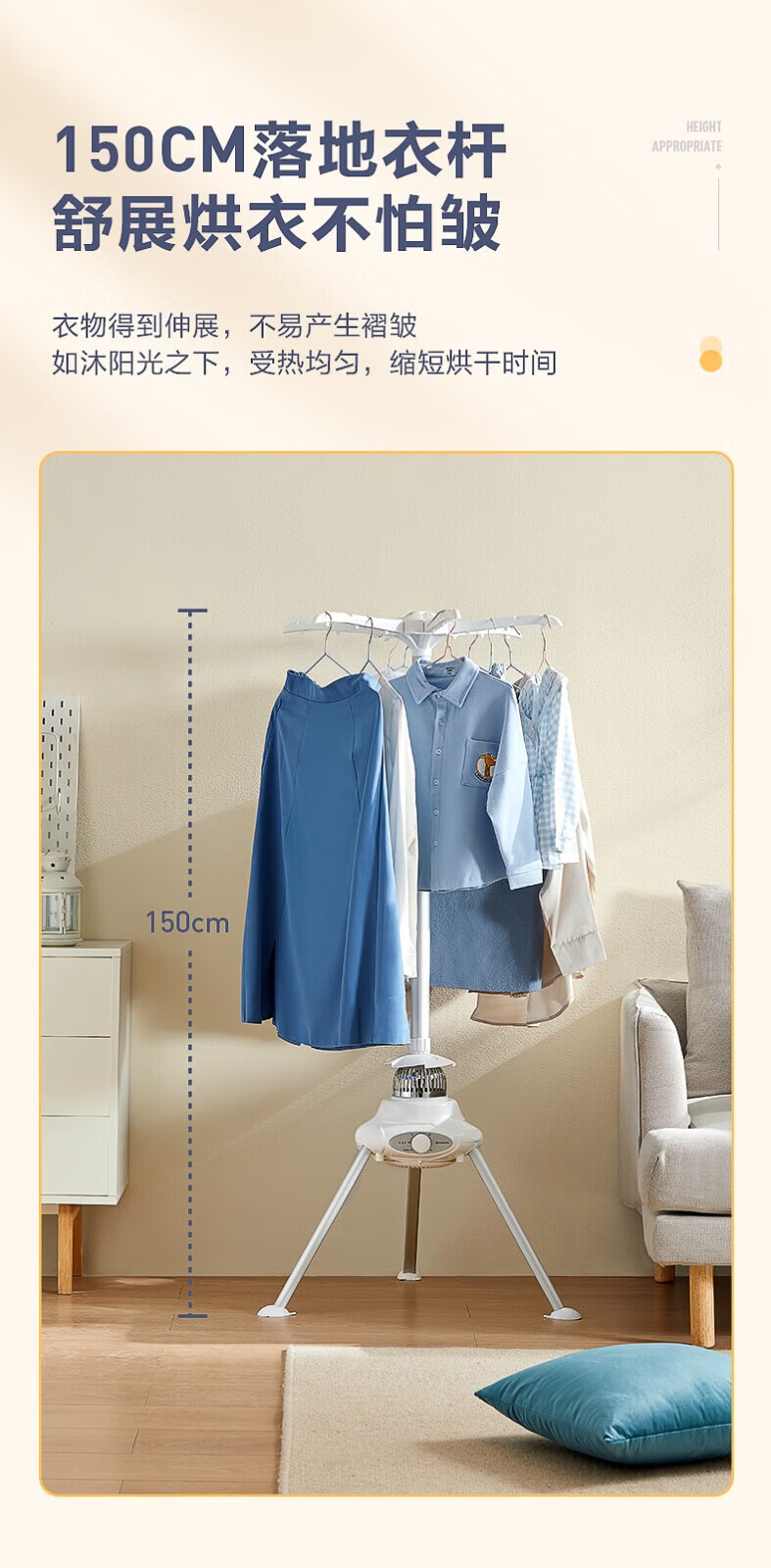 艾美特(AIRMATE)【家用烘干机】干衣机烘衣服母婴儿优选衣物内衣小型宿舍圆筒烘衣机折叠晾衣架巴氏杀菌消毒风干机 花色 1000W速烘 3H定时【巴氏杀菌】 300L