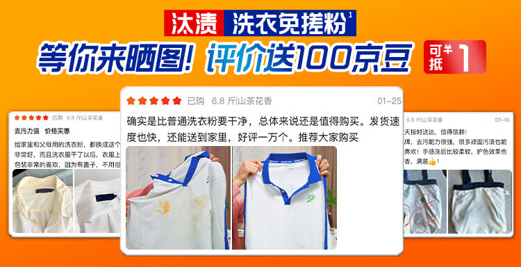 汰渍洗衣免搓粉 清雅山茶花6.8斤装 洗衣粉非爆炸盐皂粉 持久留香30天