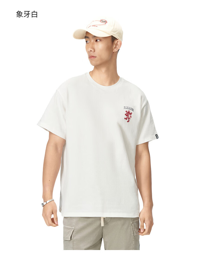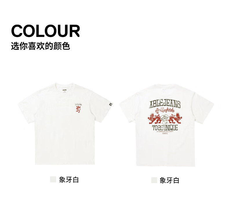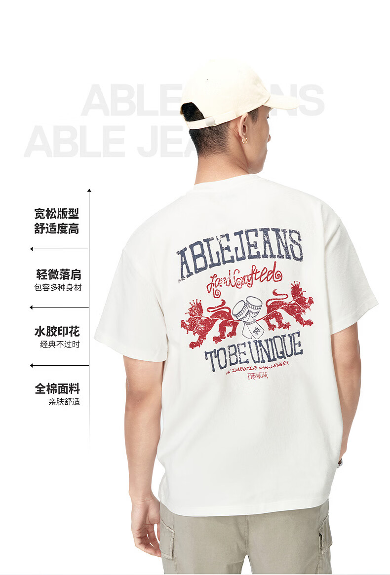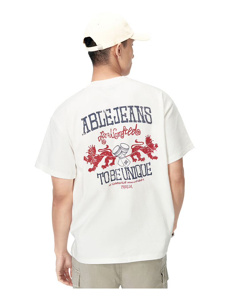 ABLE JEANS 26春夏新款T恤男街头潮流复古印花上衣宽松百搭纯棉透气短袖 象牙白 XS