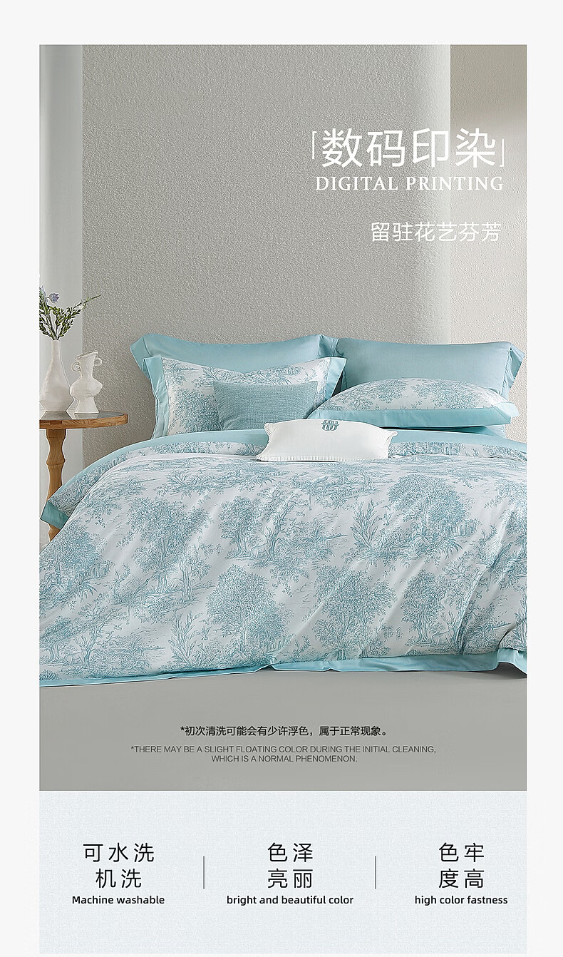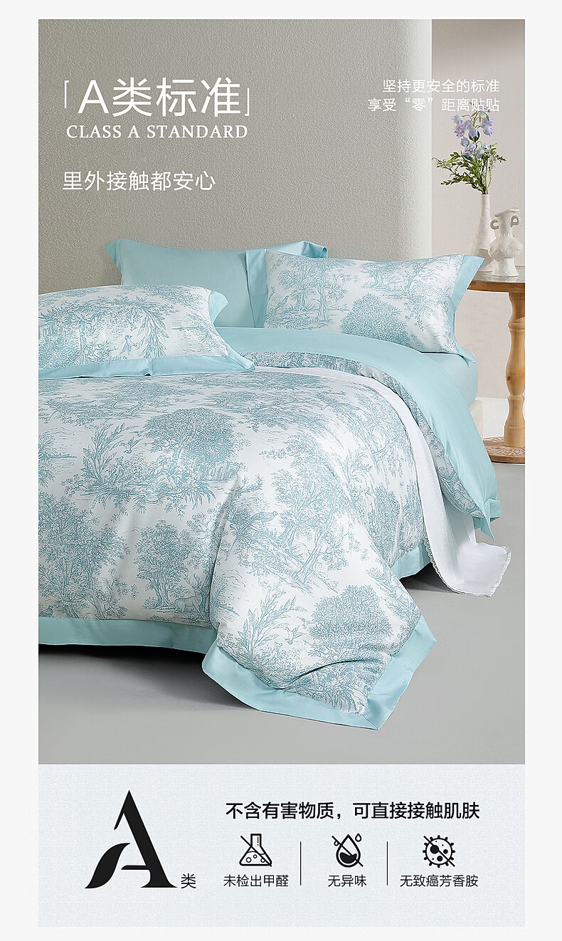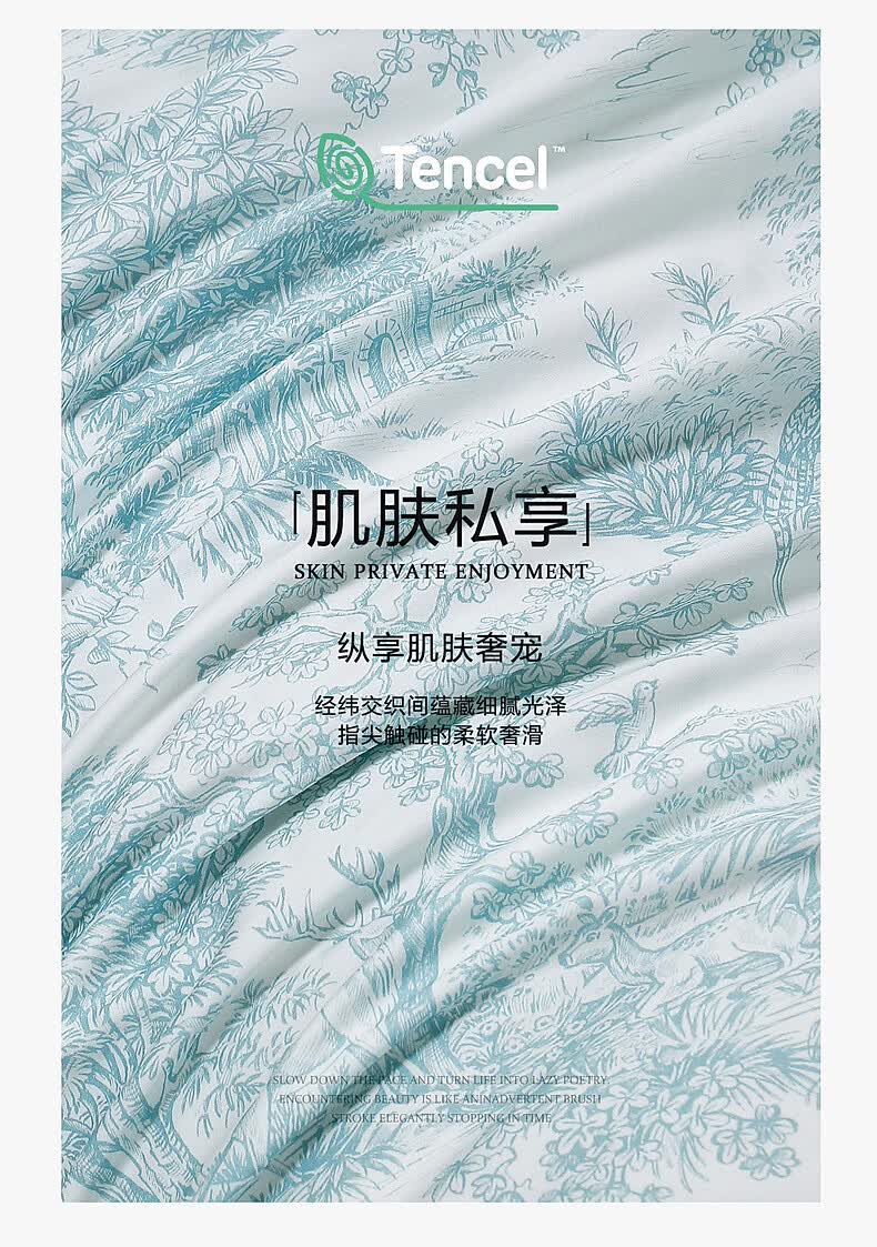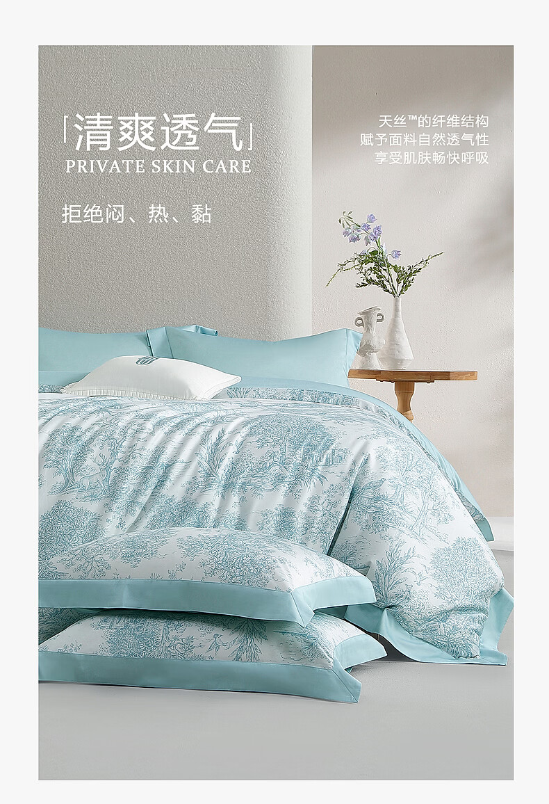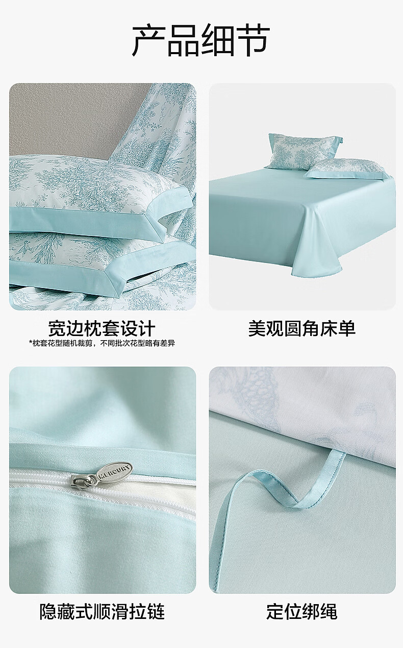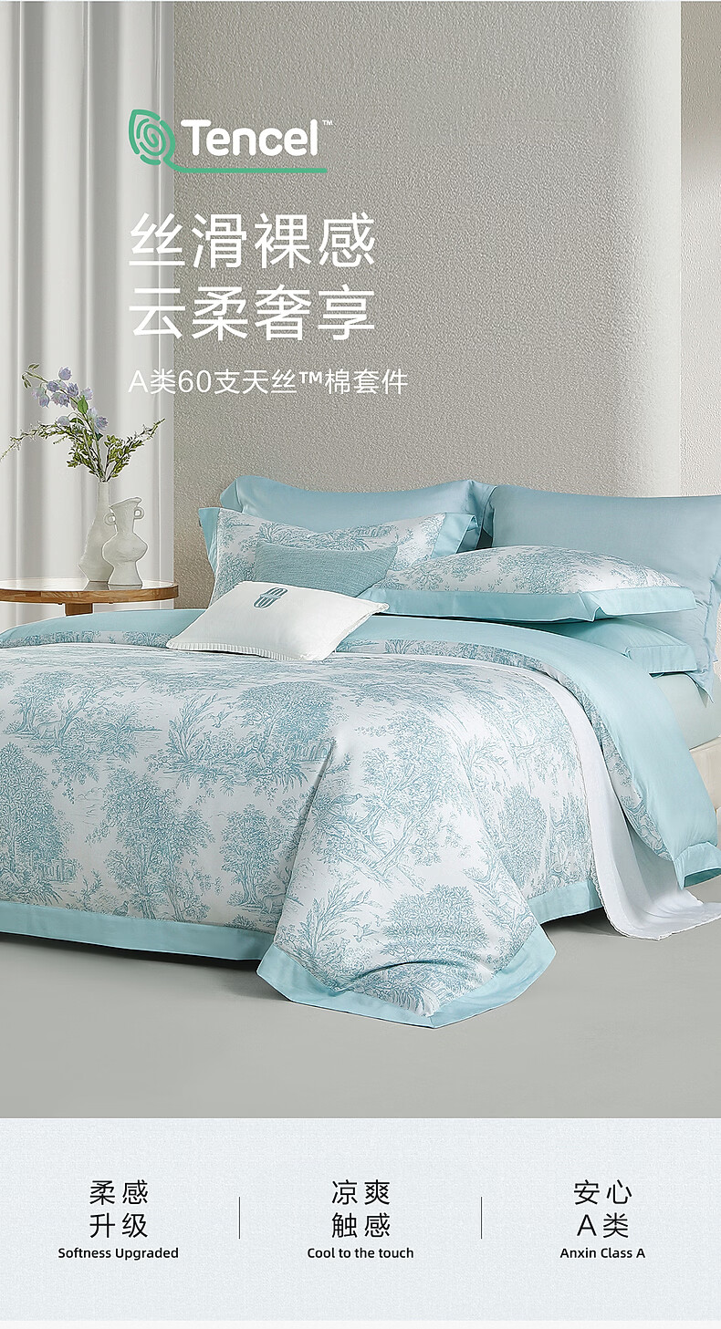 水星家纺四件套床上A类天丝™棉凉感莱赛尔被套枕套床单26年新款套件 南法·塞畔花栀床单式 床单款 (被套150*210cm)