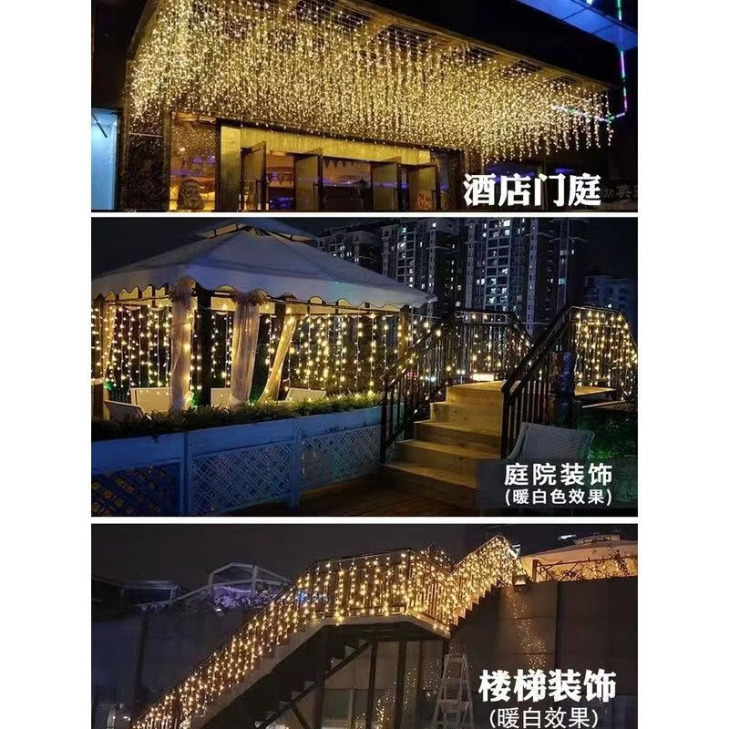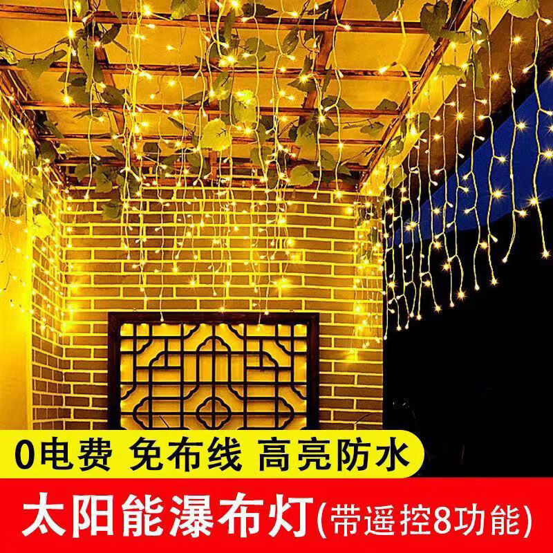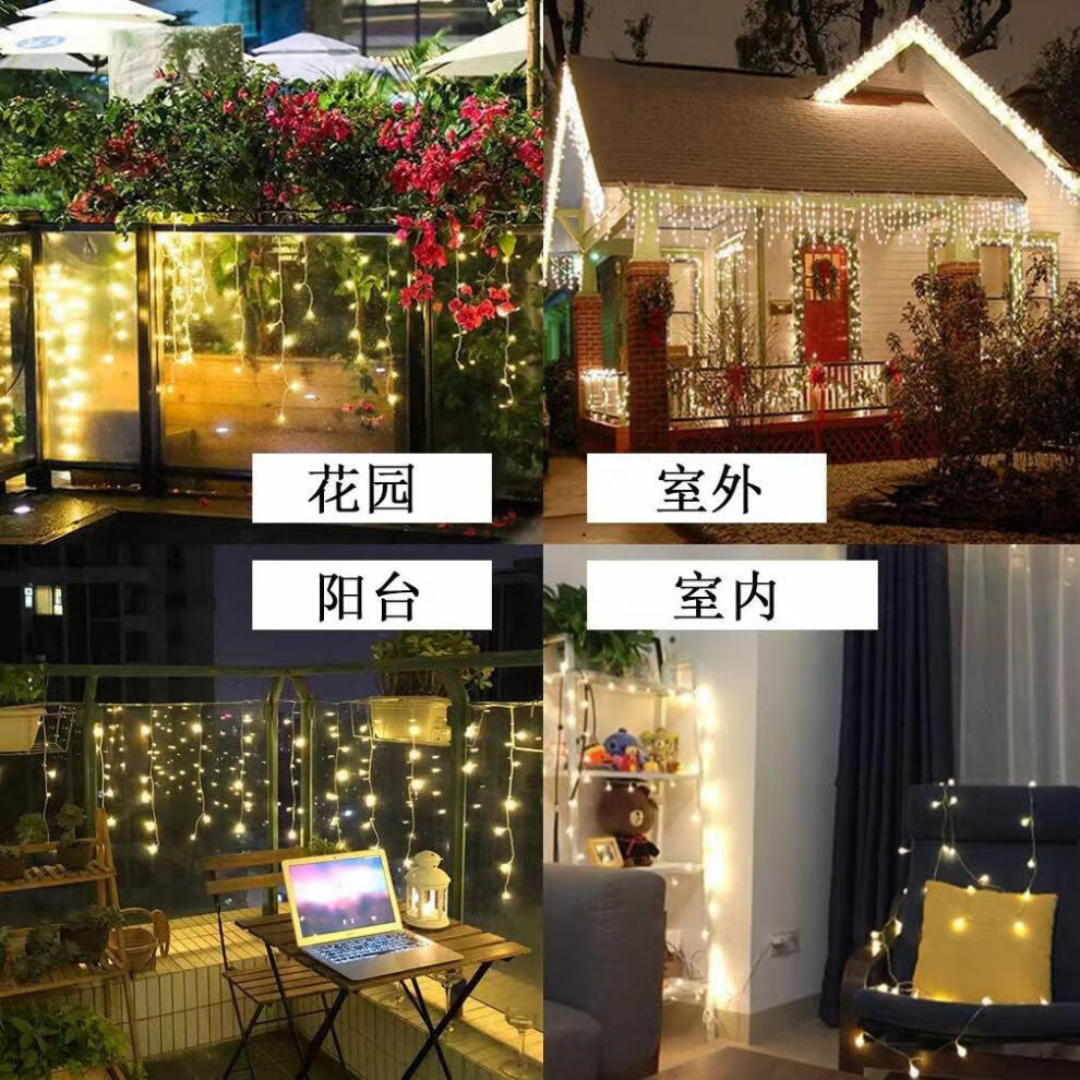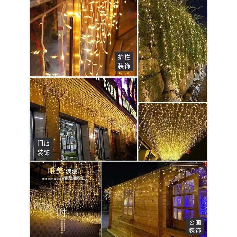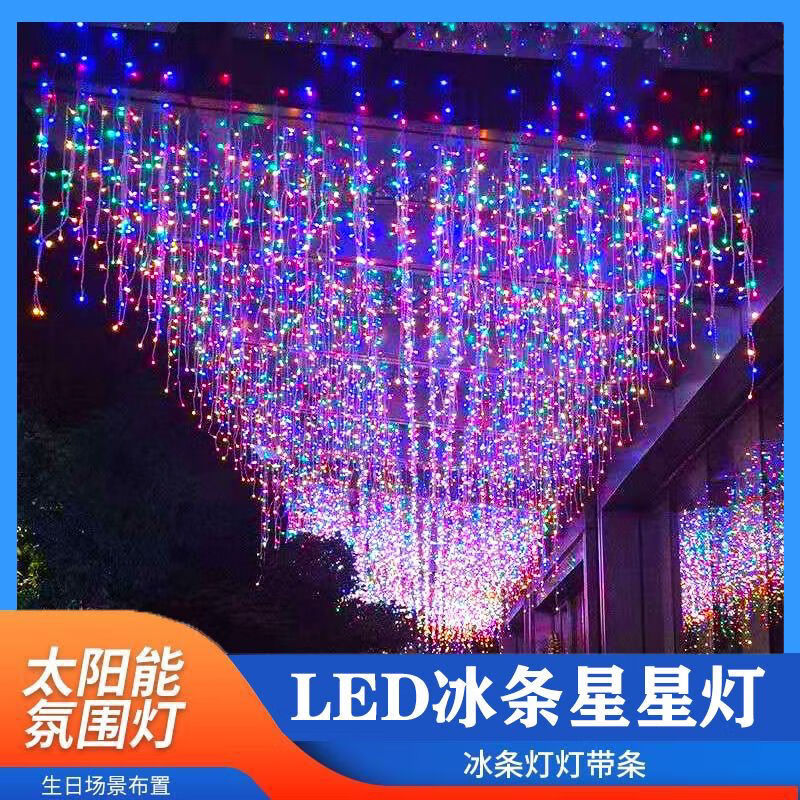 OYKTN太阳能氛围灯led七彩卧室瀑布灯满天星串灯户外庭院阳台装饰灯 24伏插电(彩暖变色)全防水不漏电 10米下垂30公分】配1.5米延线