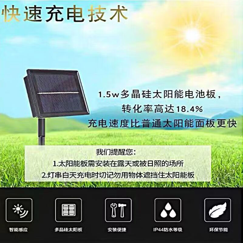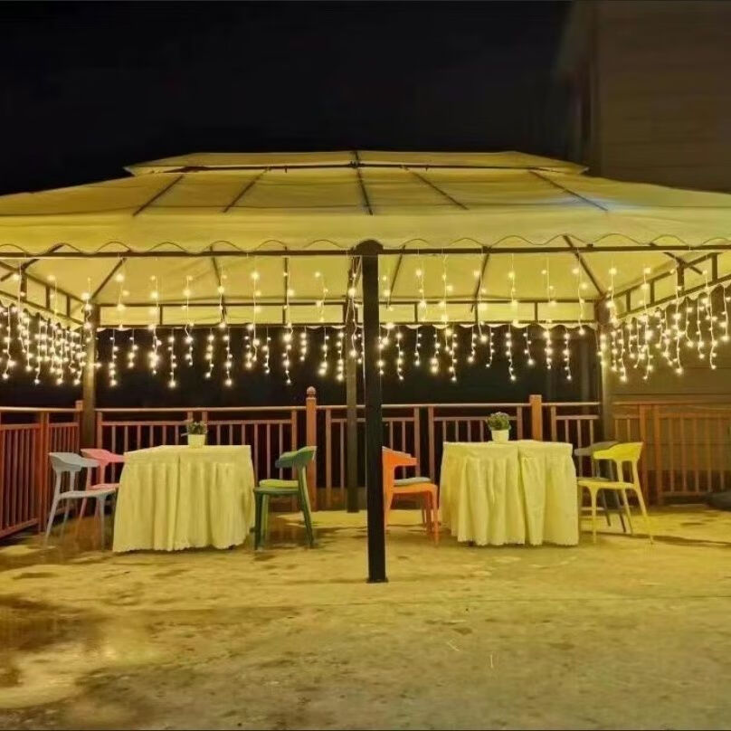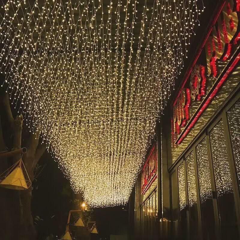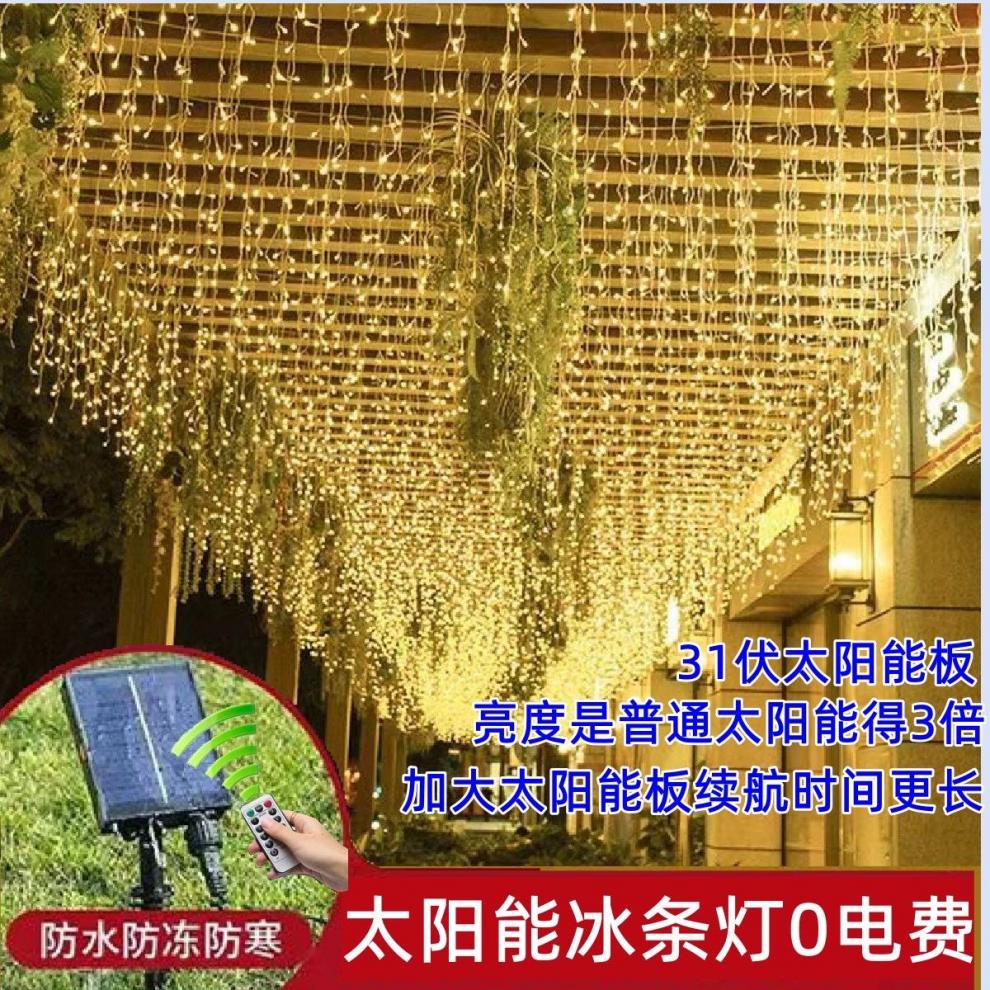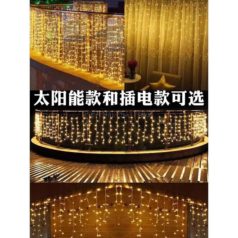 OYKTN太阳能氛围灯led七彩卧室瀑布灯满天星串灯户外庭院阳台装饰灯 24伏插电(彩暖变色)全防水不漏电 10米下垂30公分】配1.5米延线