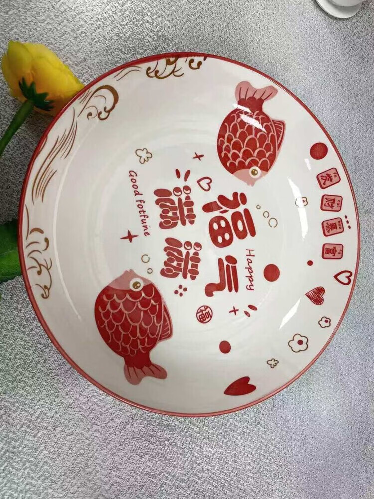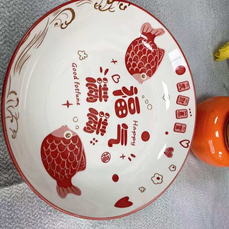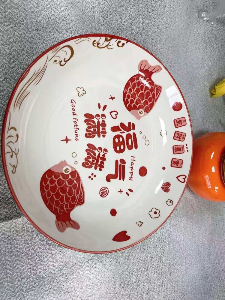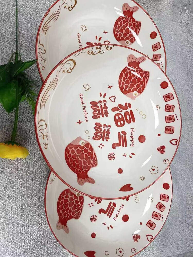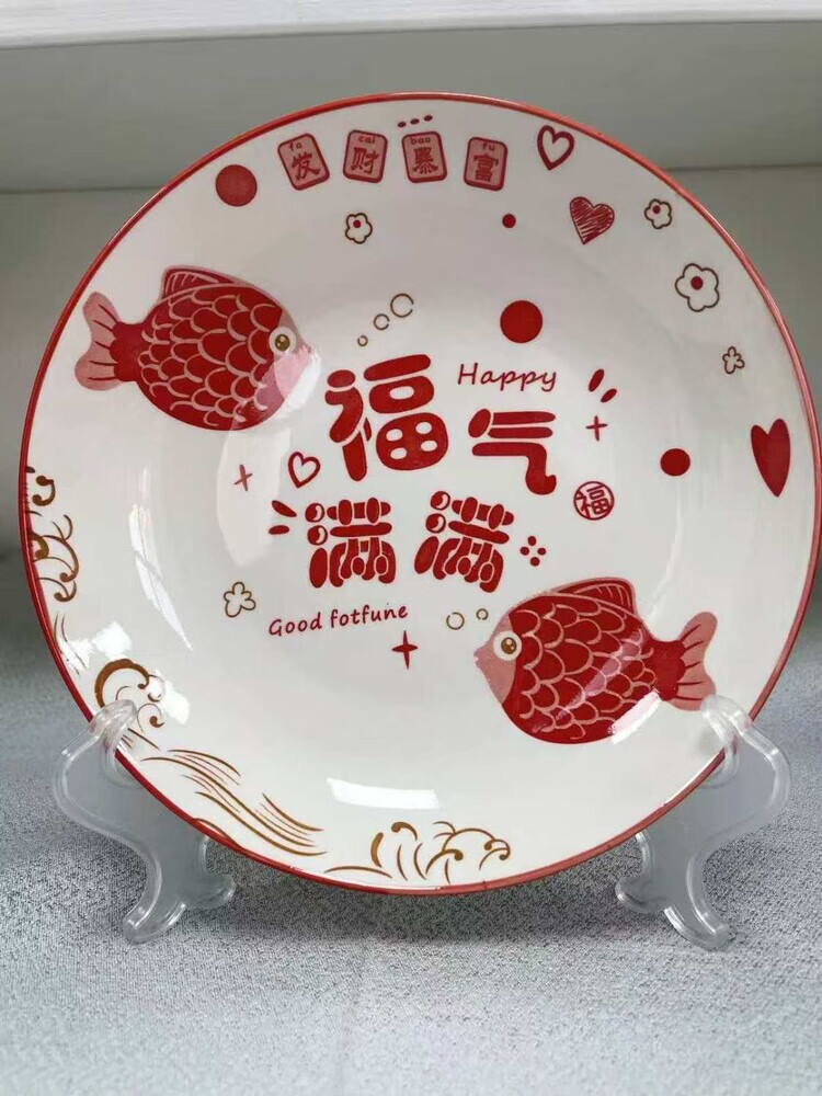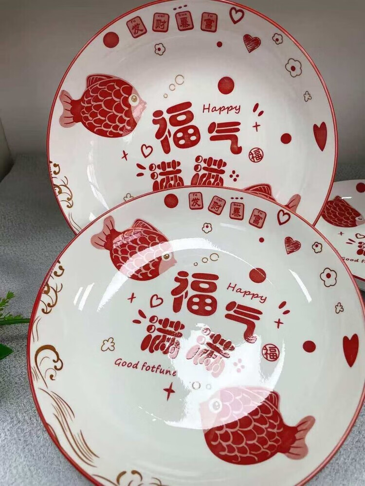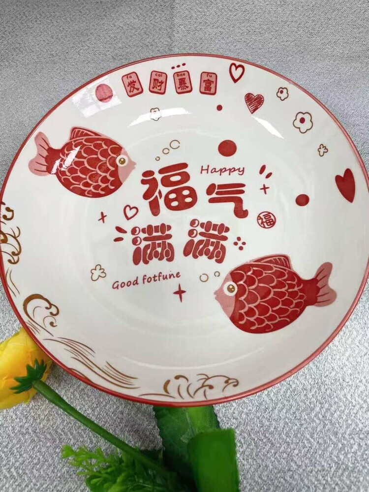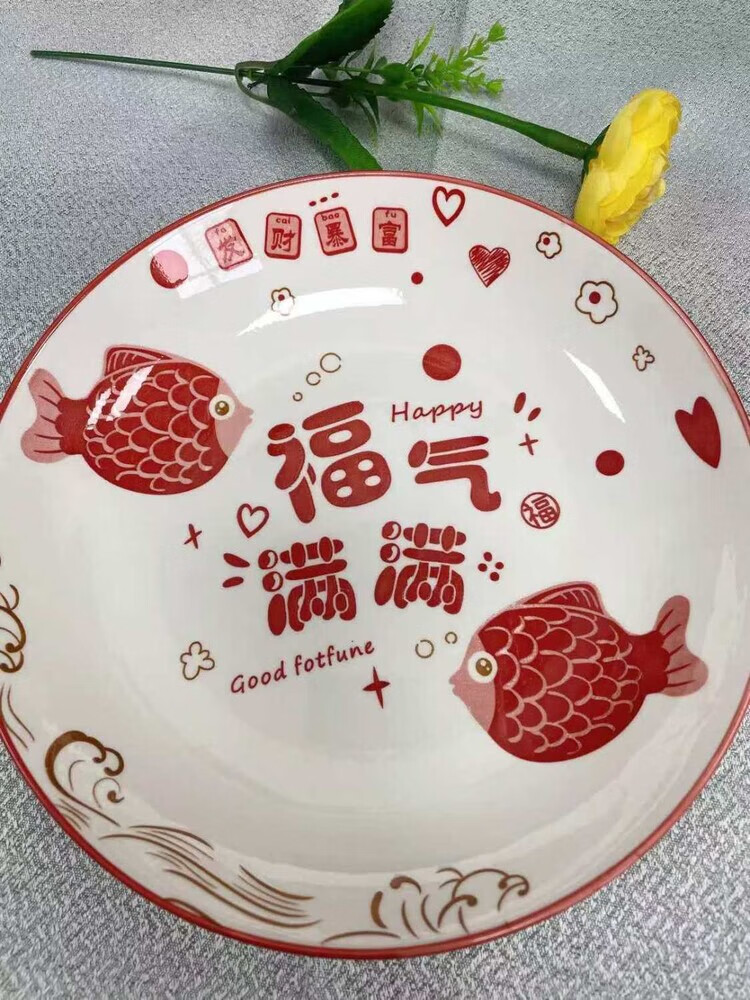 泰禧阁家用福气满满发财暴富8英寸英寸圆盘可爱高颜值餐具耐高温釉下彩1 8英寸圆盘2个