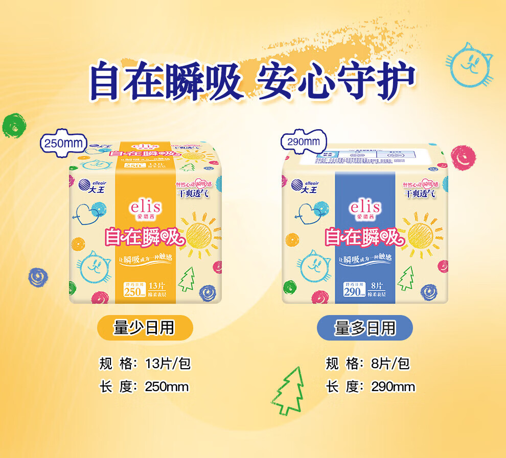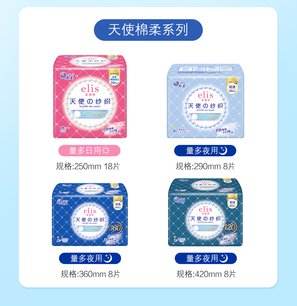 爱璐茜(elis)【活动专享】大王系列任选日用夜用卫生巾 光羽奢适系列极薄 180mm 14片