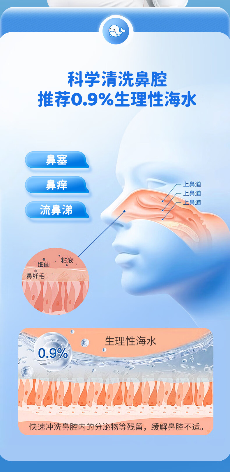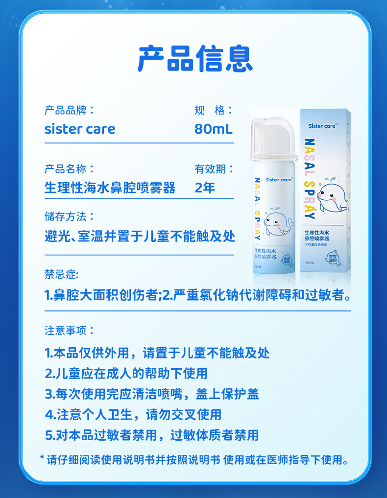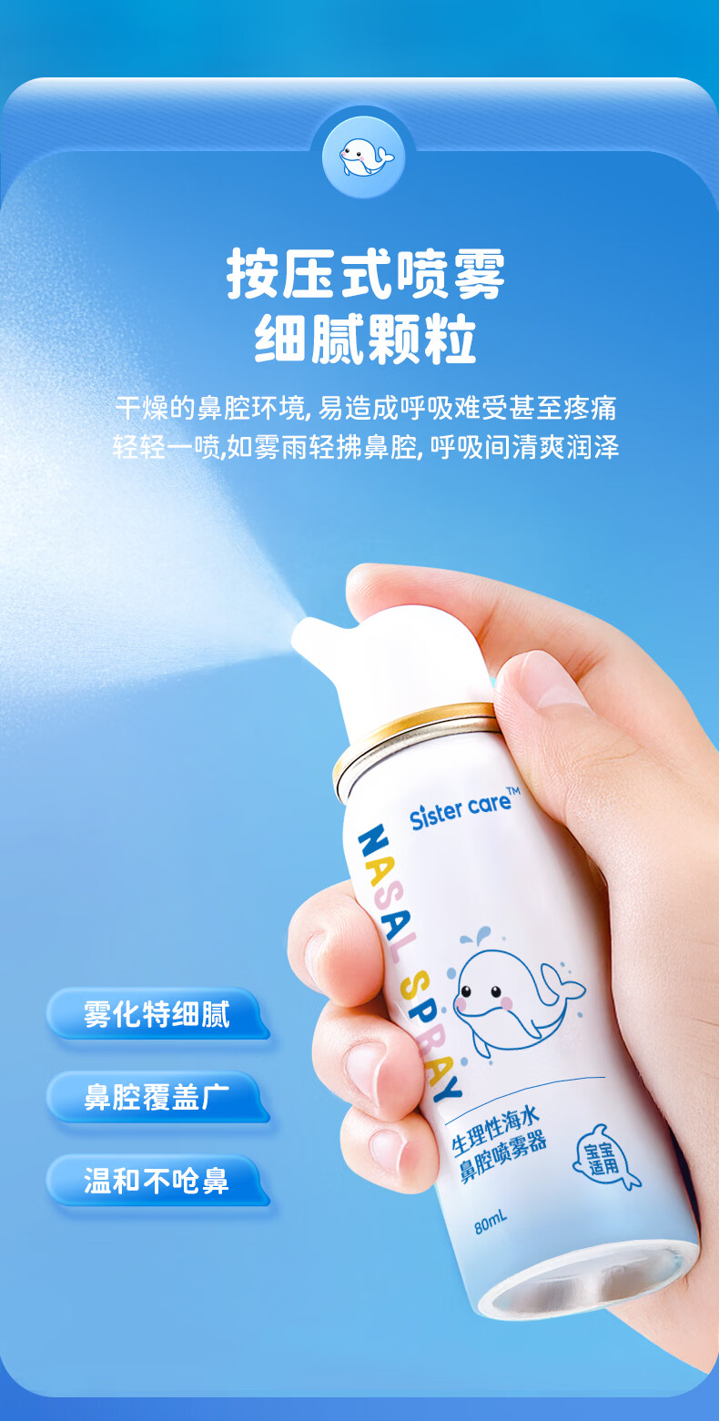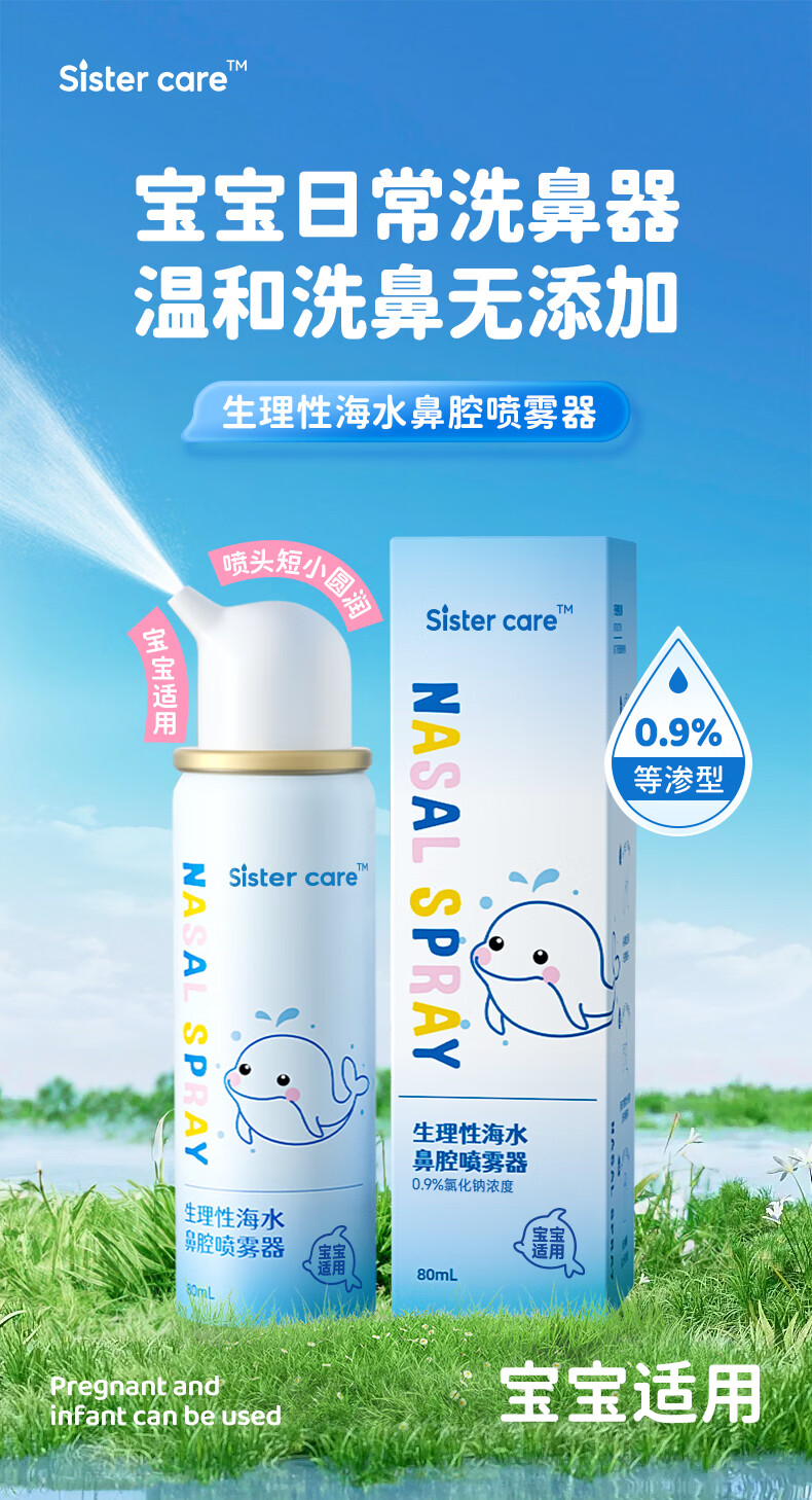 sister care婴儿生理盐水洗鼻器儿童海盐水喷鼻冲洗器鼻塞鼻腔喷雾冲鼻器80mL