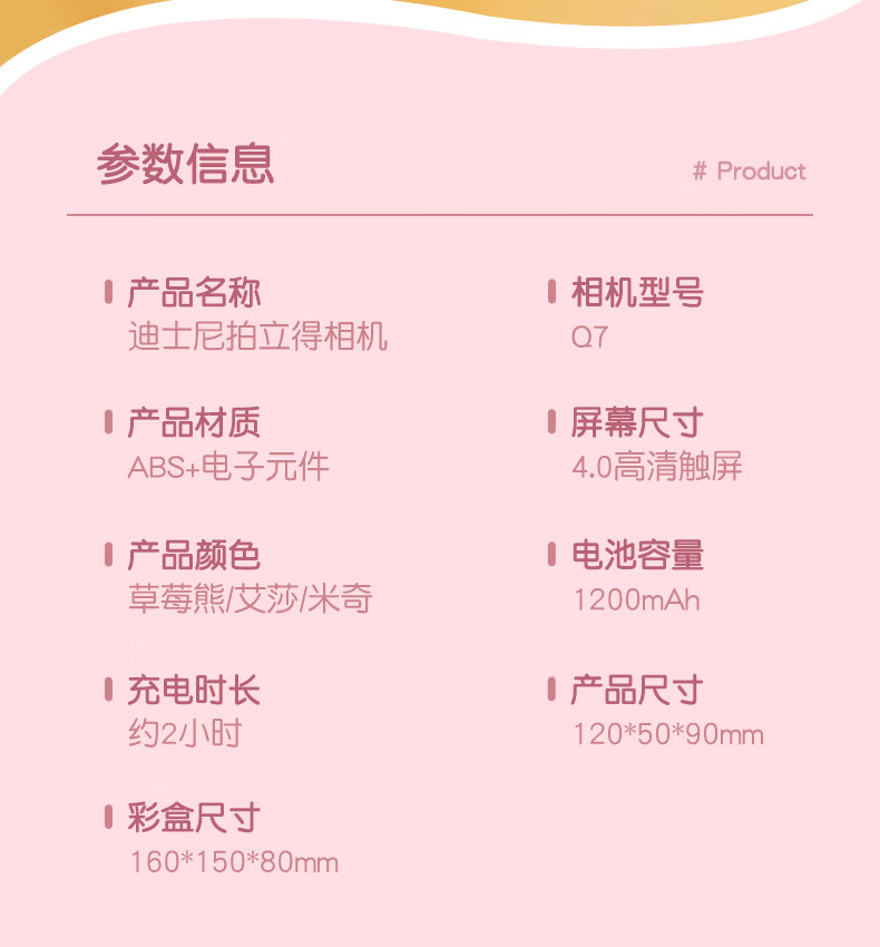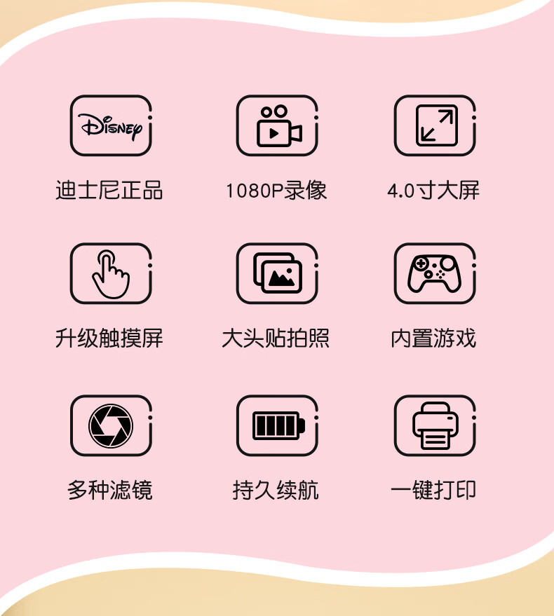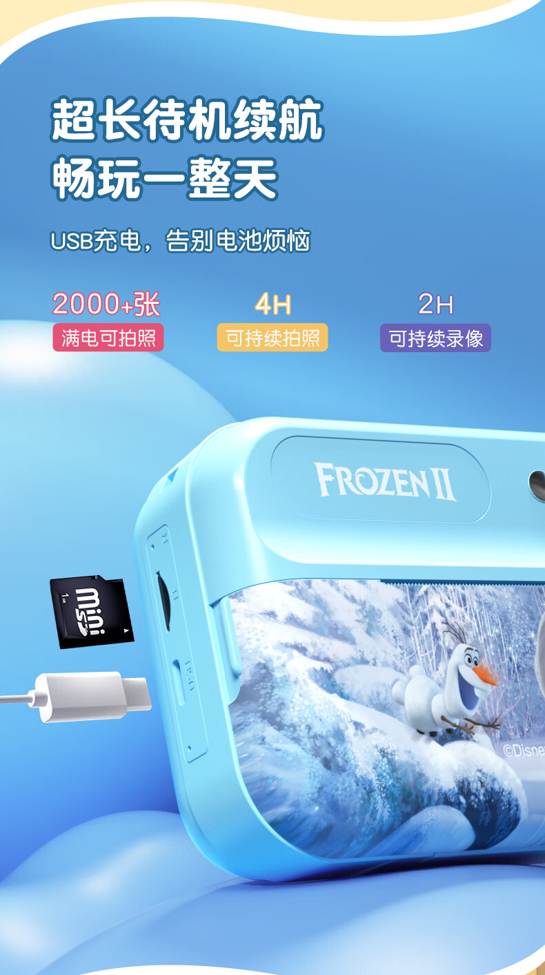 迪士尼(Disney)儿童相机玩具高清数码拍照录像彩色拍立得ccd男女孩玩具生日2礼物