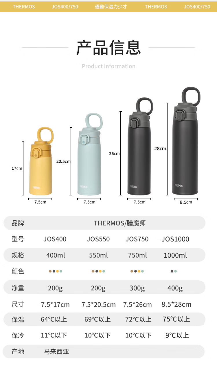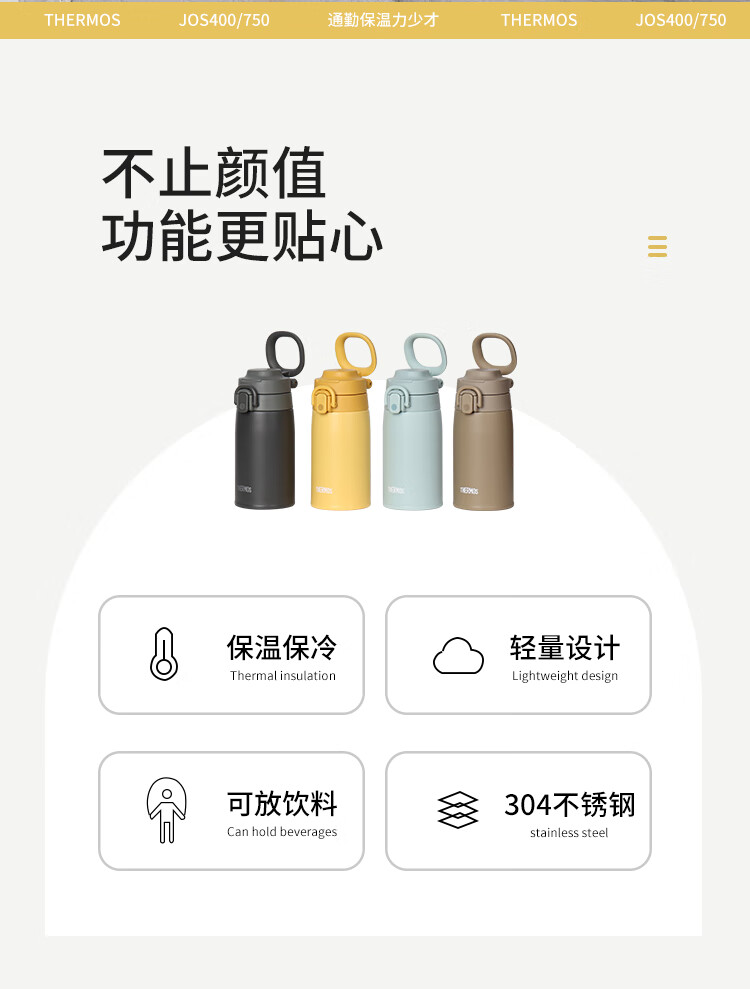 膳魔师(THERMOS)日本膳魔师保温杯男女大容量便携运动保冷水杯子可团购定制JOS550 薄荷绿550ml日本专柜新版