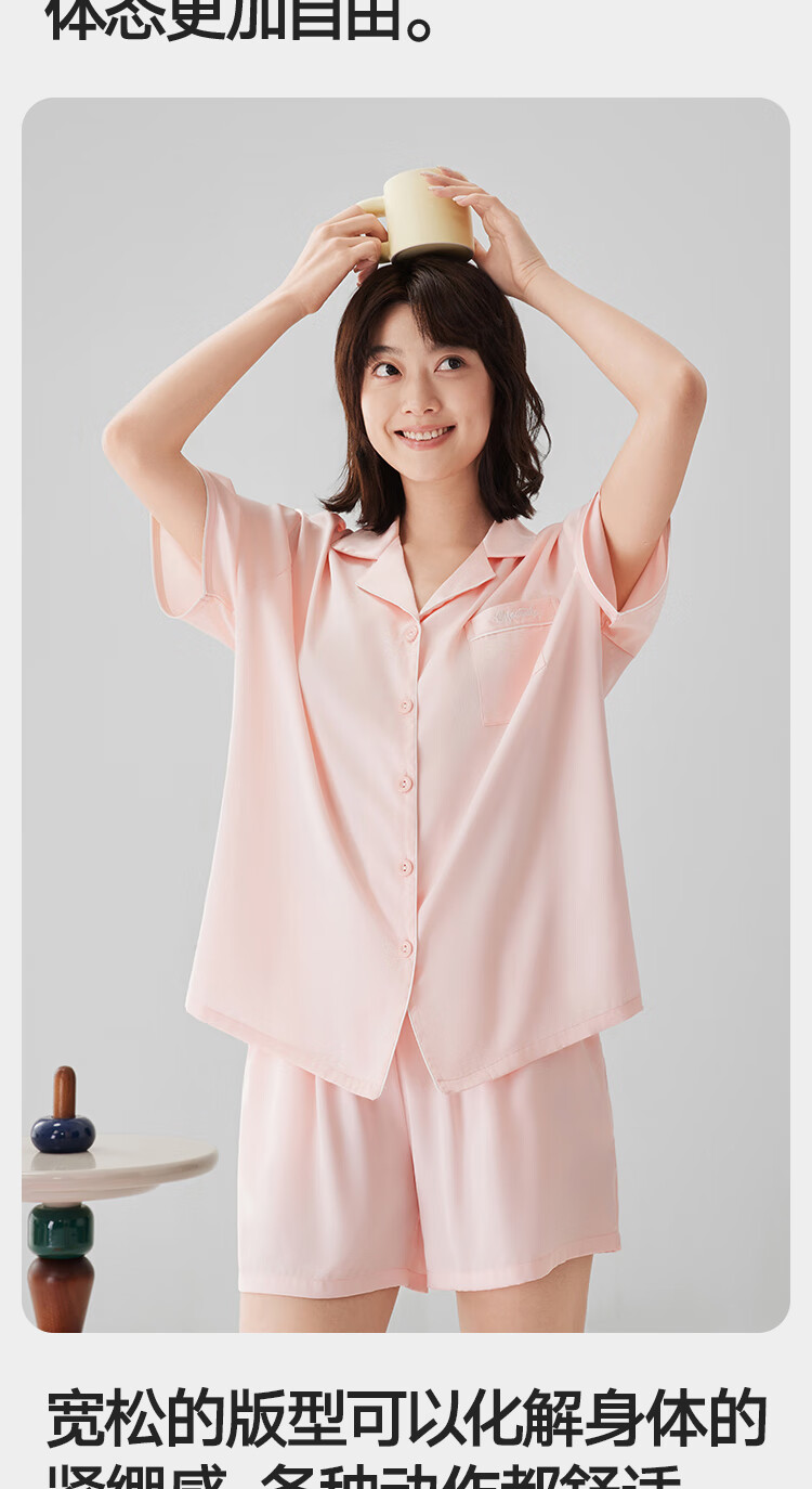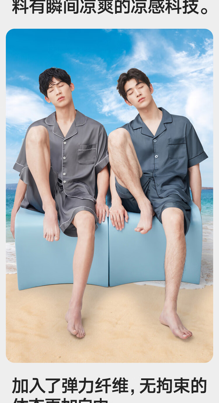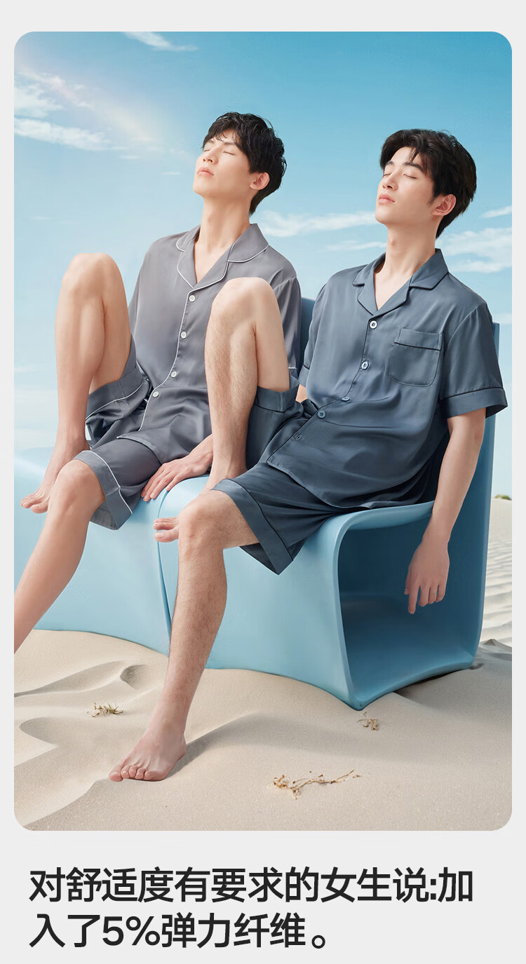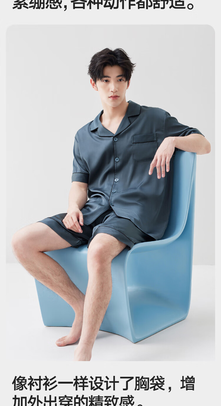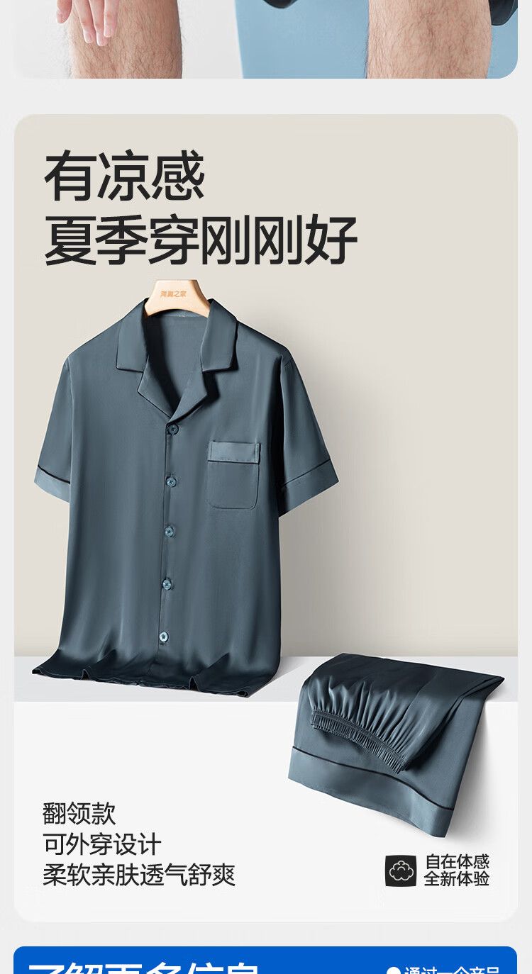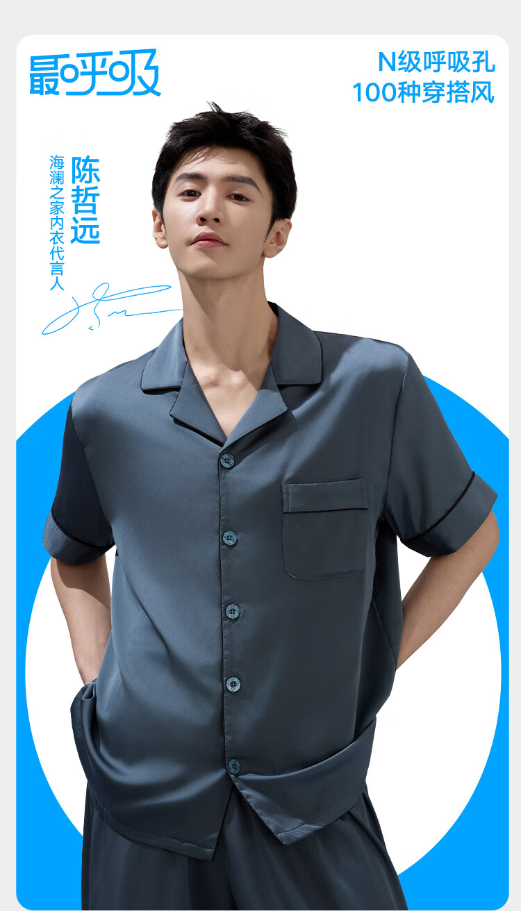 海澜之家【陈哲远同款】睡衣男士翻领冰丝凉感可外穿短袖短裤家居服套装