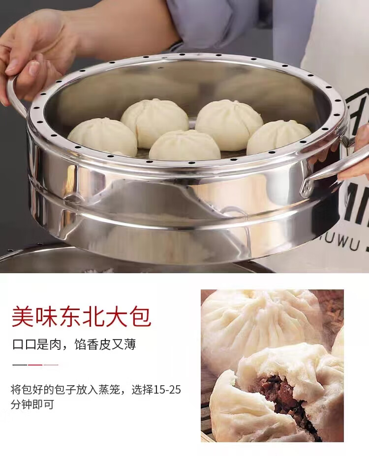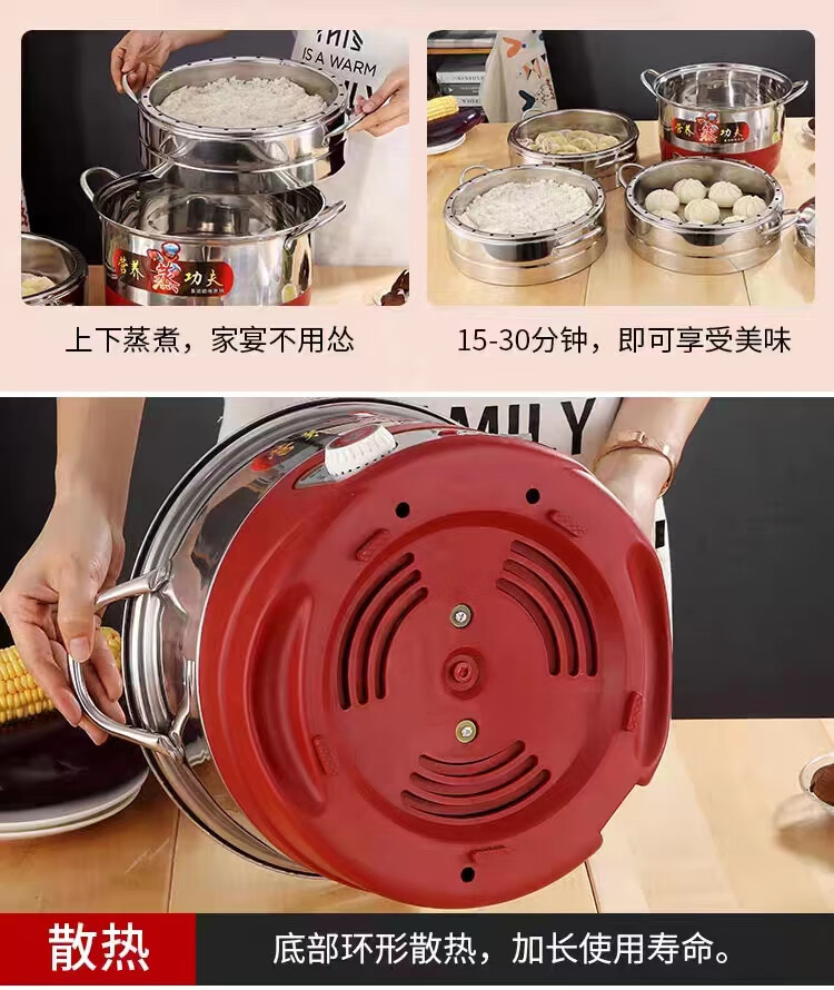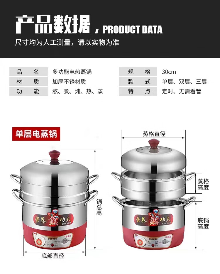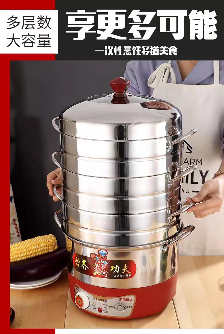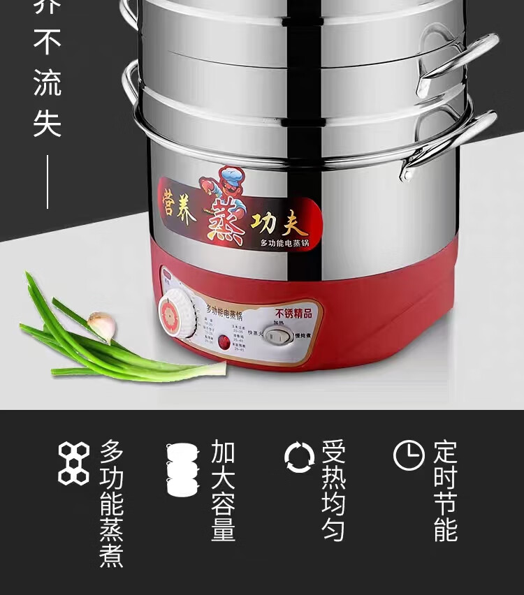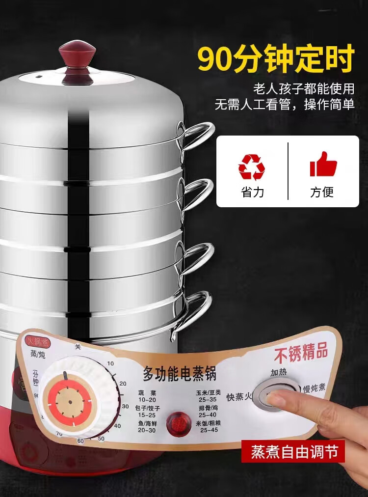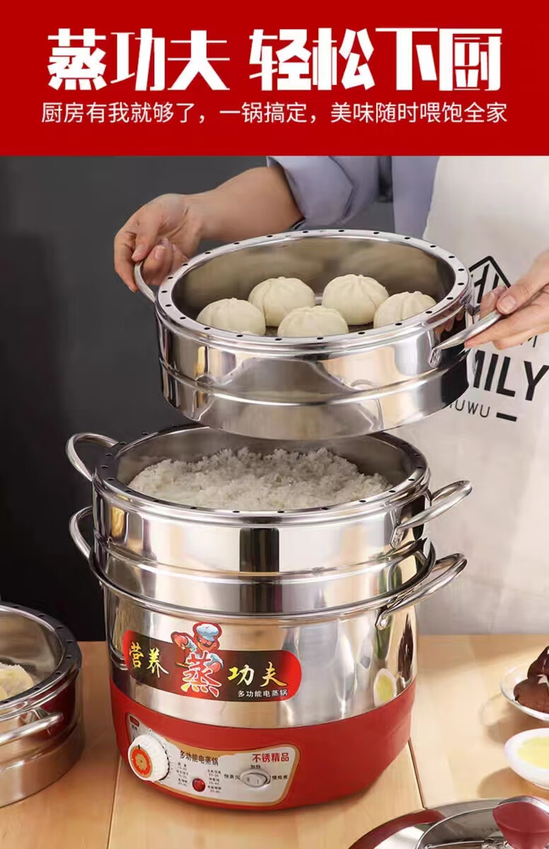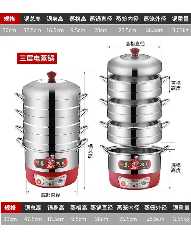 不锈钢加厚无孔三层电蒸锅茂腾定时蒸汽锅包子馒头原味蒸饭锅智能 直径28CM【单层蒸格】1锅+1蒸笼+1盖