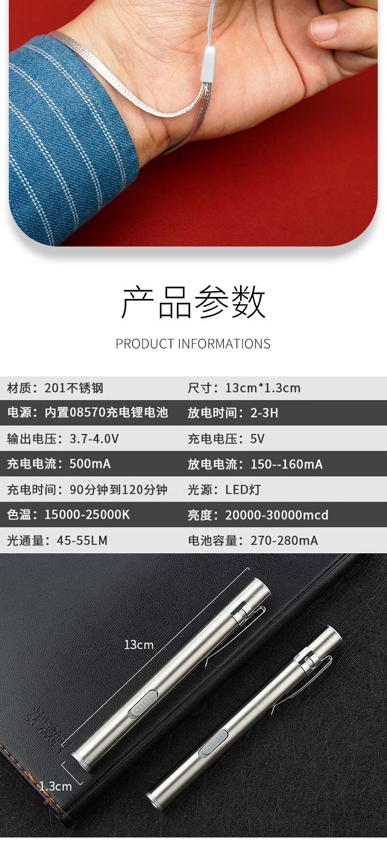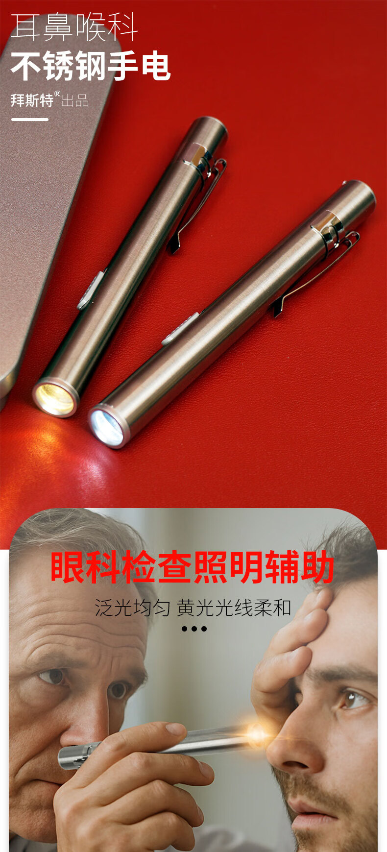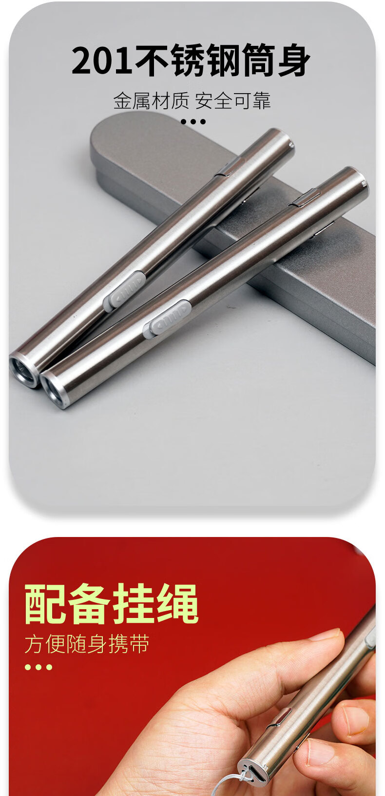 拜斯特笔试手电筒usb充电户外黄光白光不锈钢 BST-2w笔试手电筒配盒(白光)
