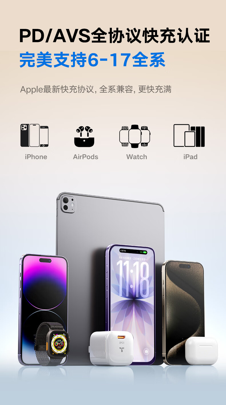 图拉斯小冰块Lite【全网热销100万+】适用iPhone17ProMax充电头适配原装45W快充40W套装16氮化镓15 【17-15套装】冰透白+1.2米双C线 【20W丨快充不伤机】苹果全系