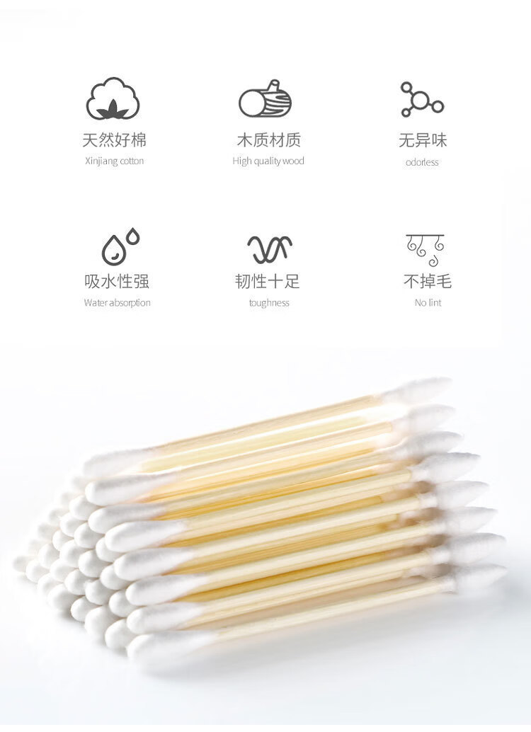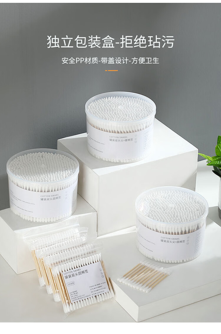 洋臣盒装双头棉签一次性棉签掏耳朵棉签成人棉签卸妆清洁工具套装 1盒500