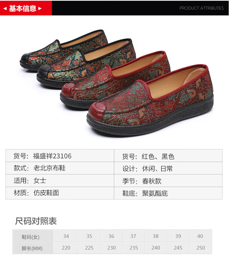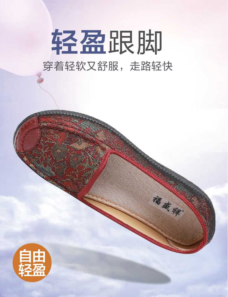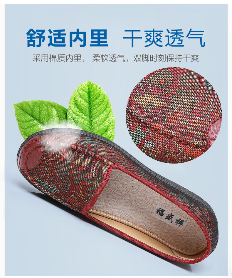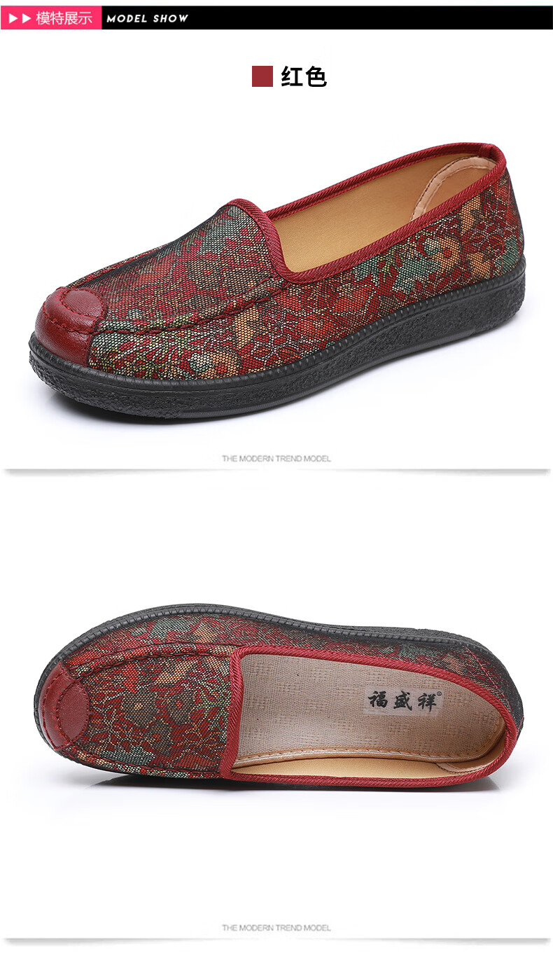 福盛祥新款老北京布鞋女软底妈妈鞋中老年奶奶鞋舒适防滑老人鞋老太太鞋 红色 42