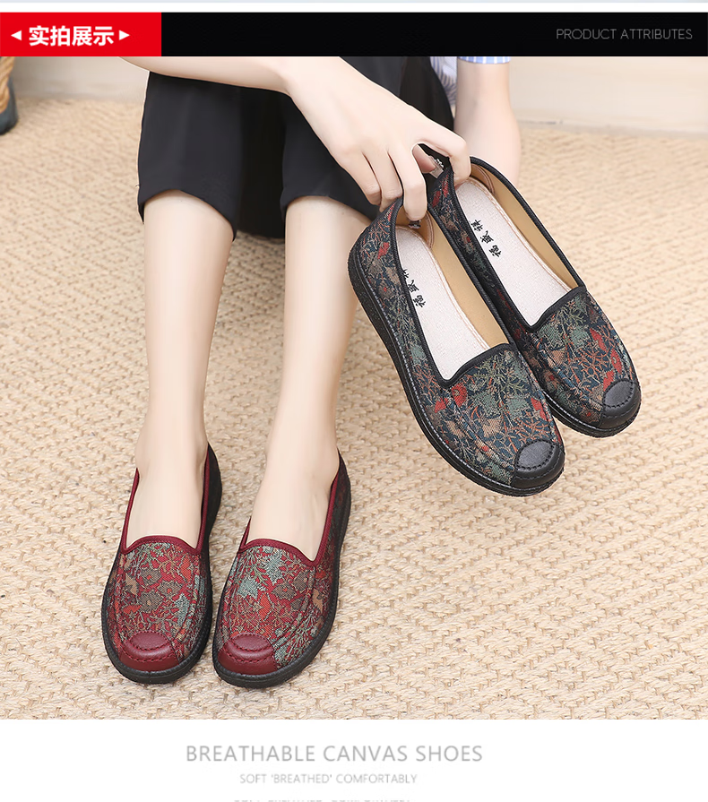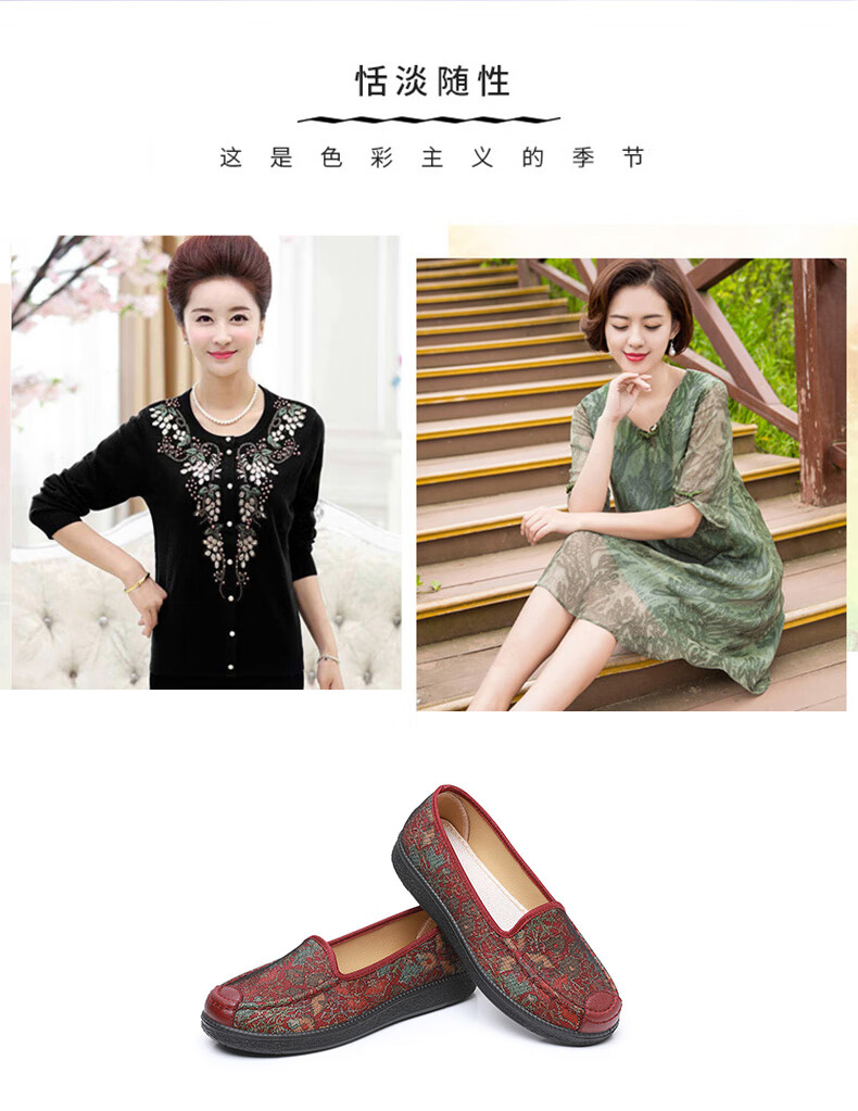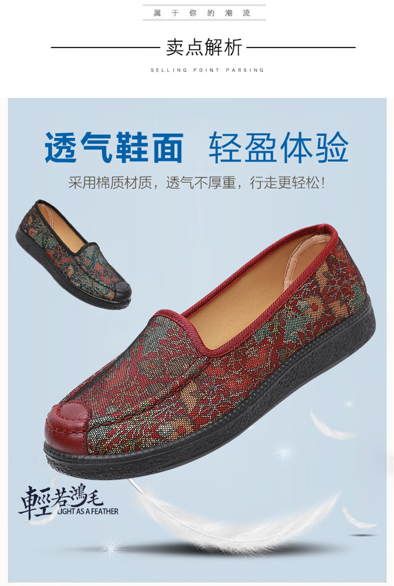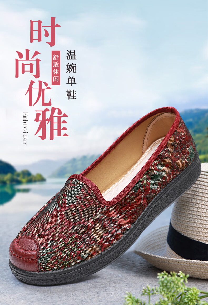 福盛祥新款老北京布鞋女软底妈妈鞋中老年奶奶鞋舒适防滑老人鞋老太太鞋 红色 42
