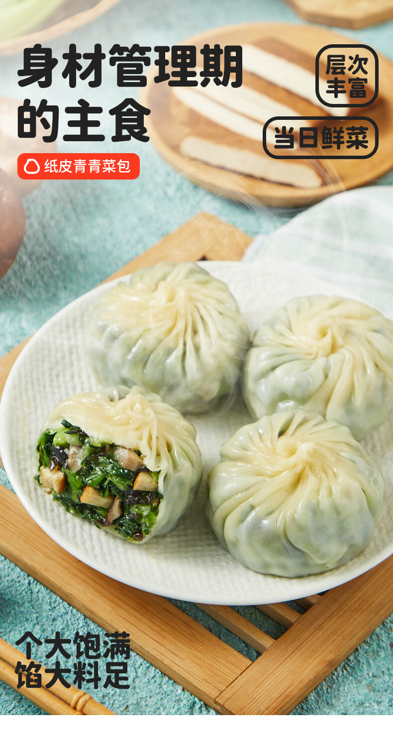 蒸笼头【纸皮青青菜包】儿童加热半成品速食早餐苏式手工薄皮青菜包子 纸皮青青菜包(240g4只)*2袋