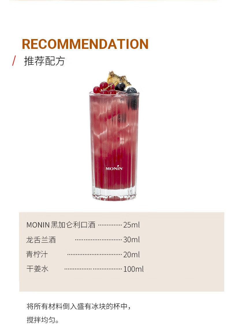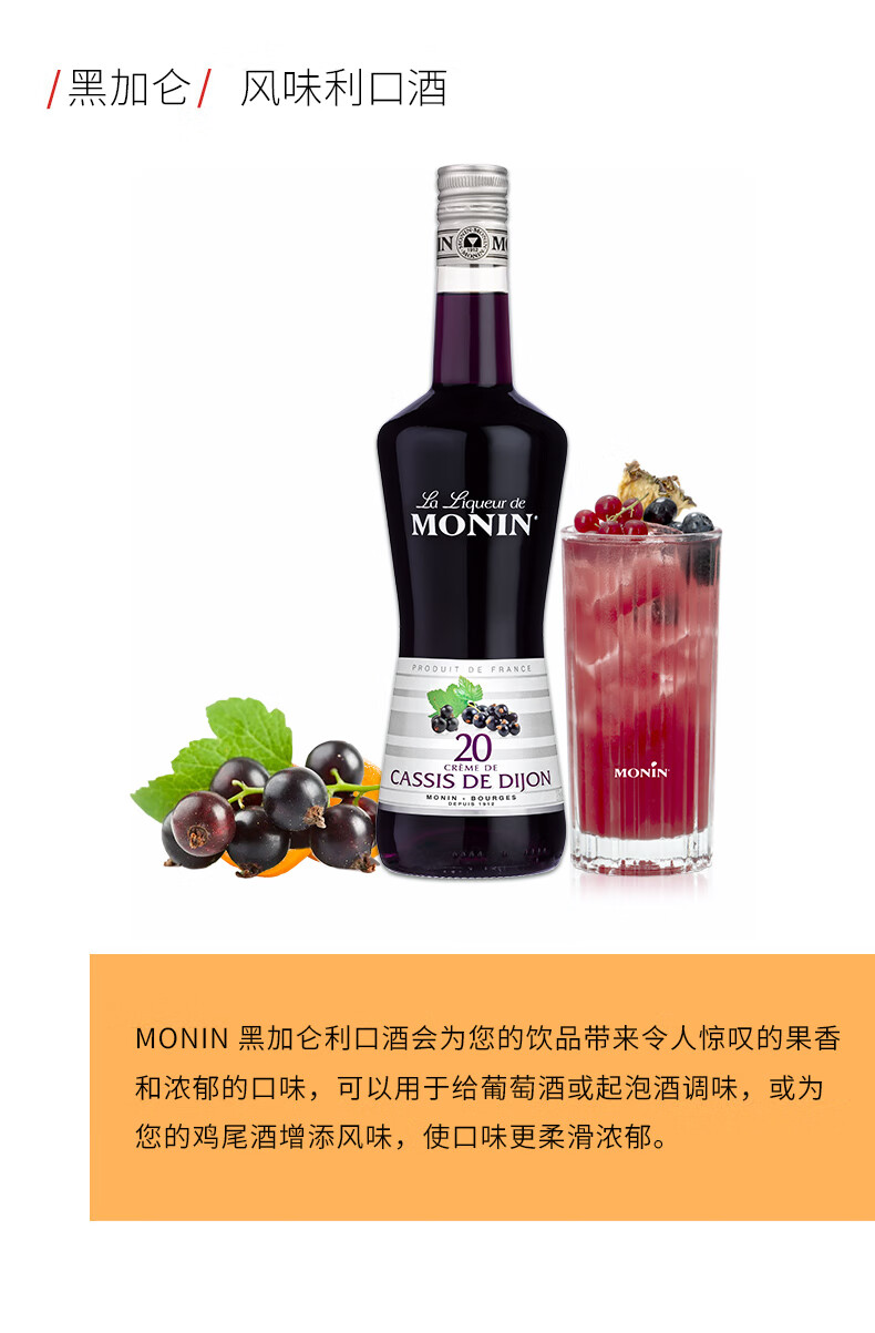 莫林黑加仑风味利口酒 700ml瓶装洋酒力娇酒调制配制莫吉托 酒精量20% 黑加仑风味