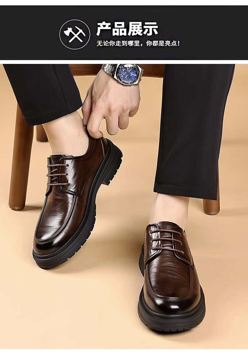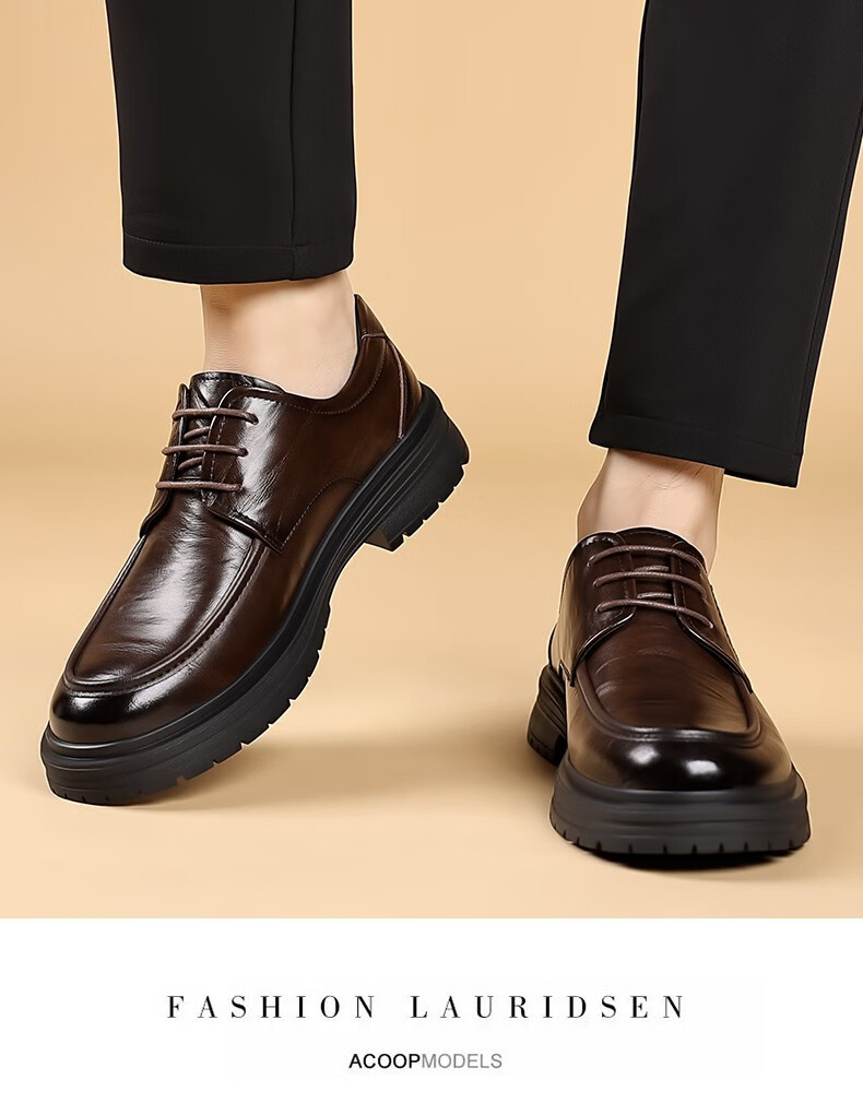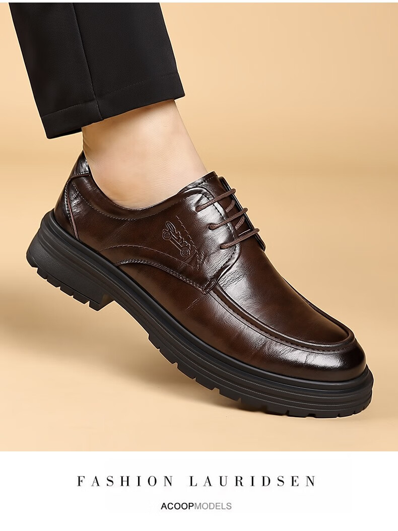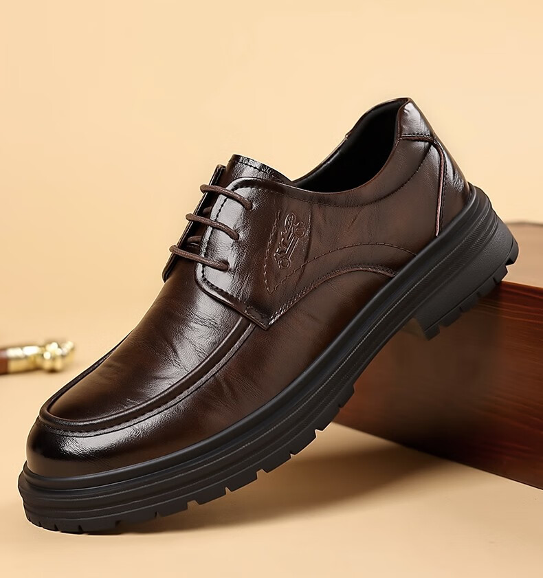 老爷车男鞋正品新款真皮英伦软底透气商务正装新郎结婚鞋男士皮鞋 2l24a536棕色(升级版) 44