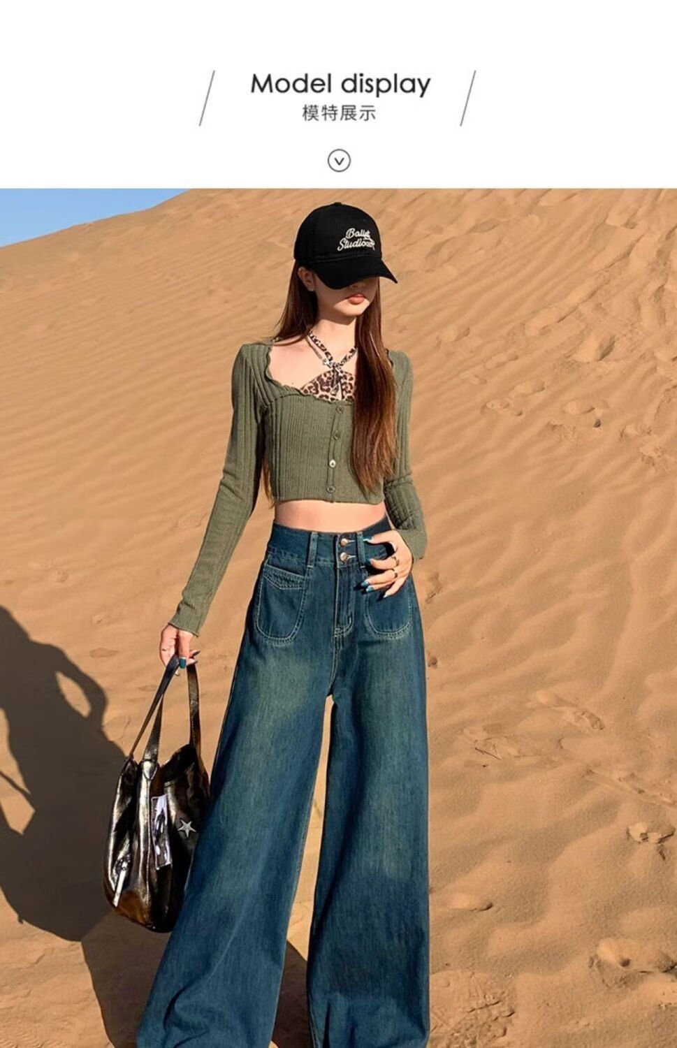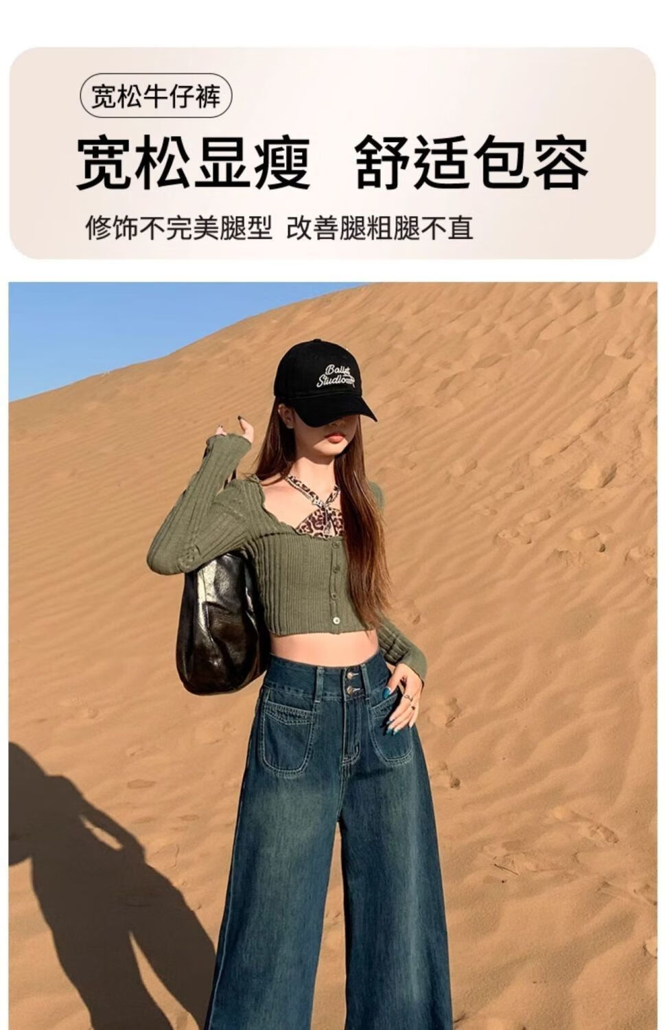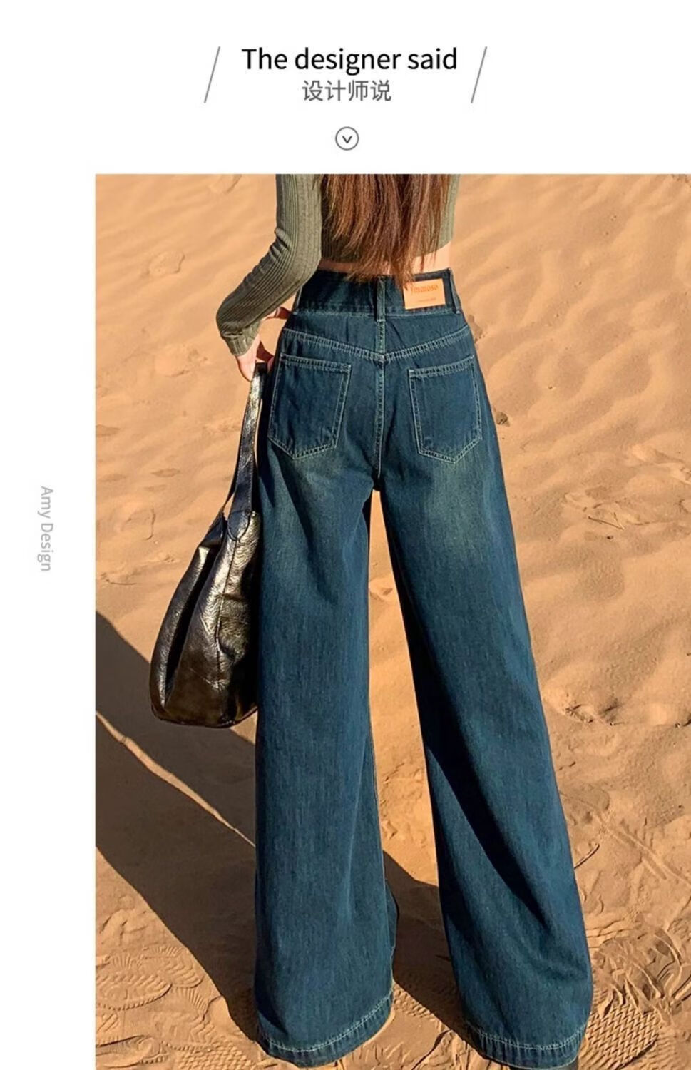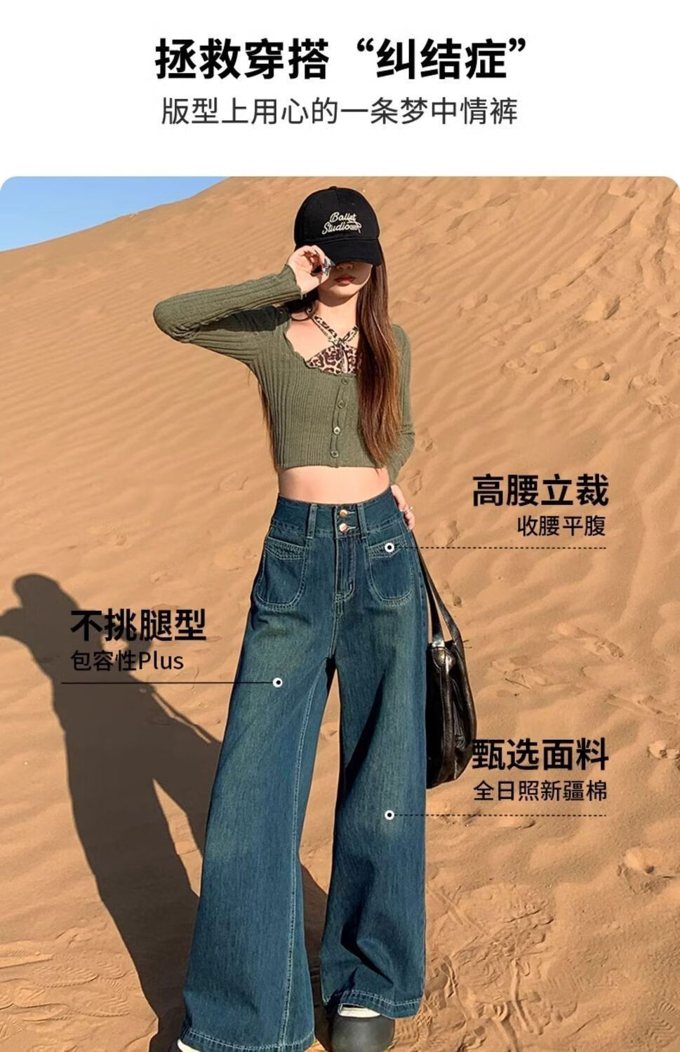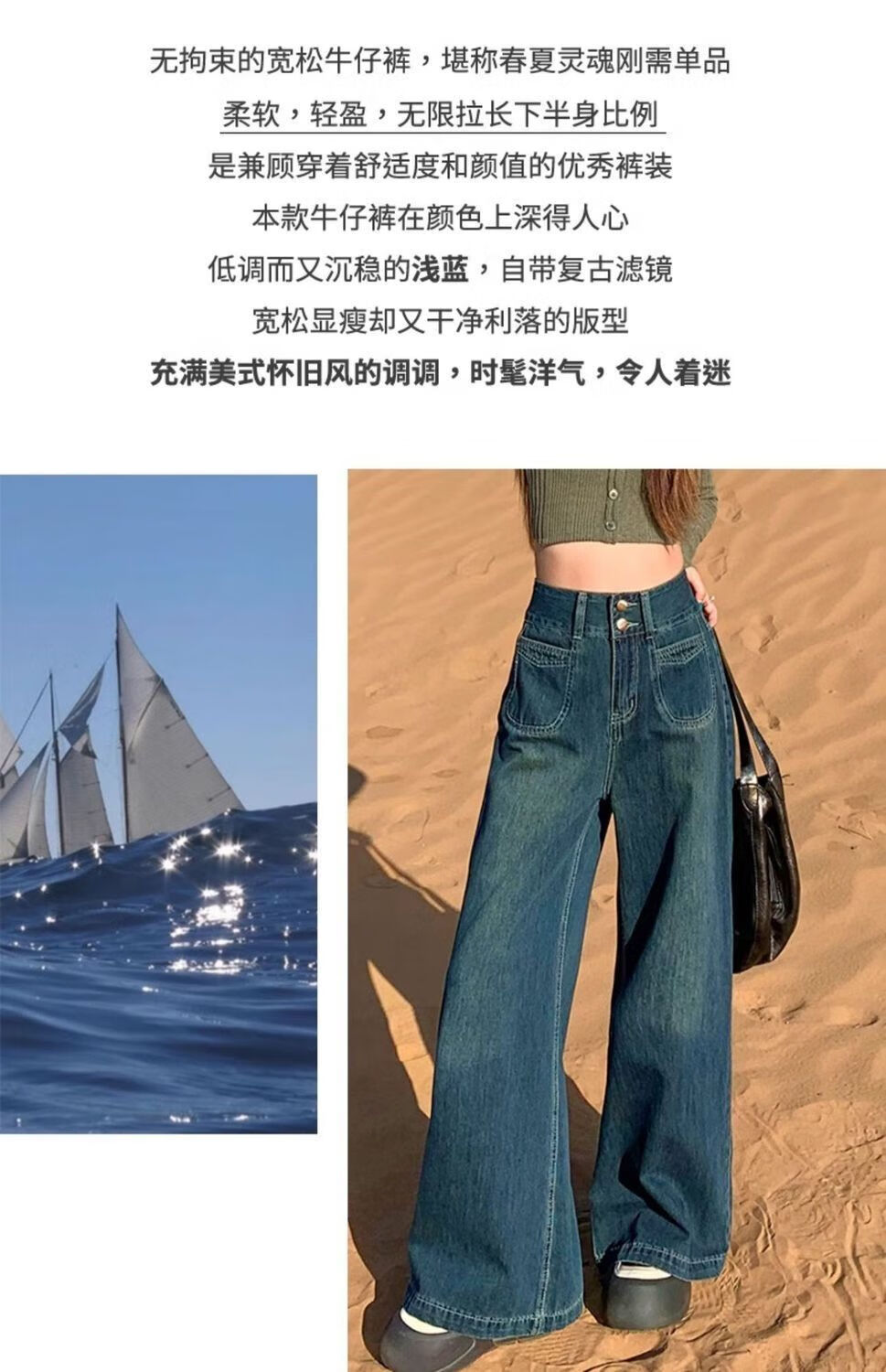 燠阳高腰阔腿牛仔裤女春秋季新款2025宽松显瘦遮胯大裤脚百搭拖地潮裤 2068深蓝色 M 【93-105斤】