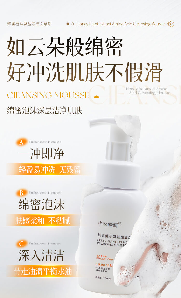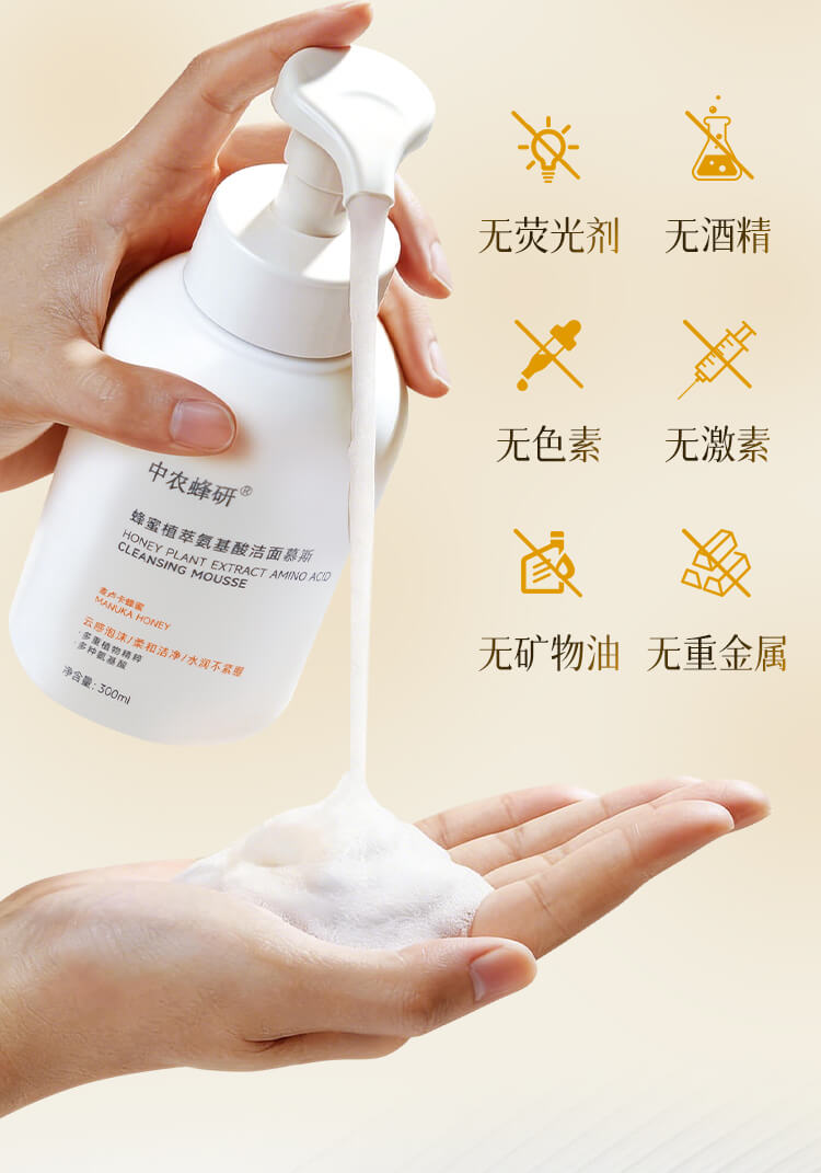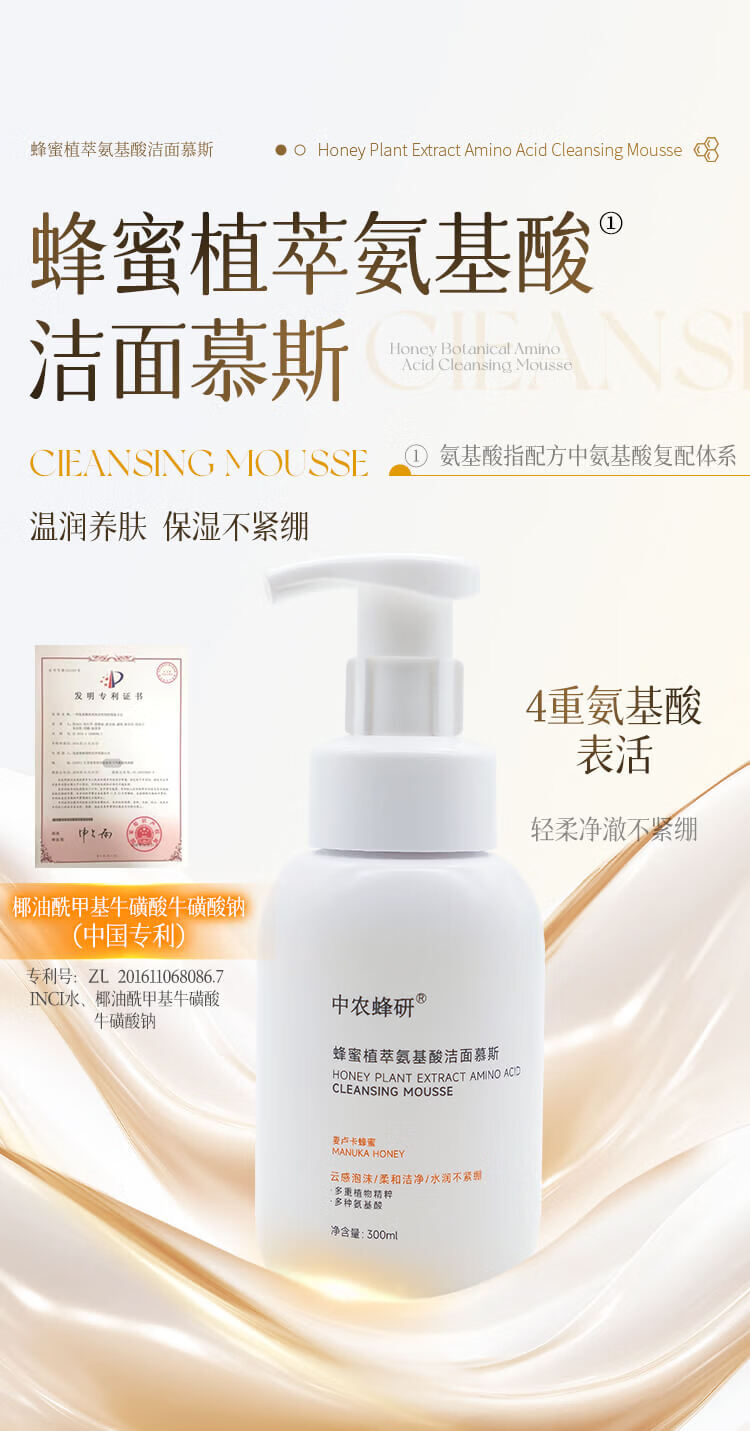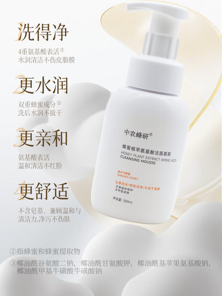 中农蜂研蜂蜜植萃氨基酸洁面慕斯 温和敏感肌友好 300ml