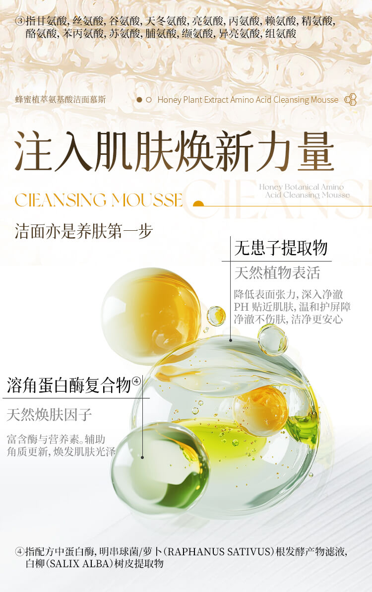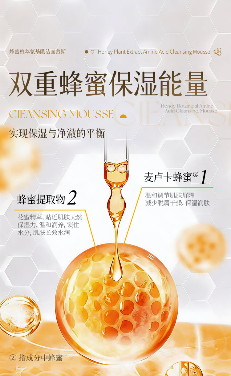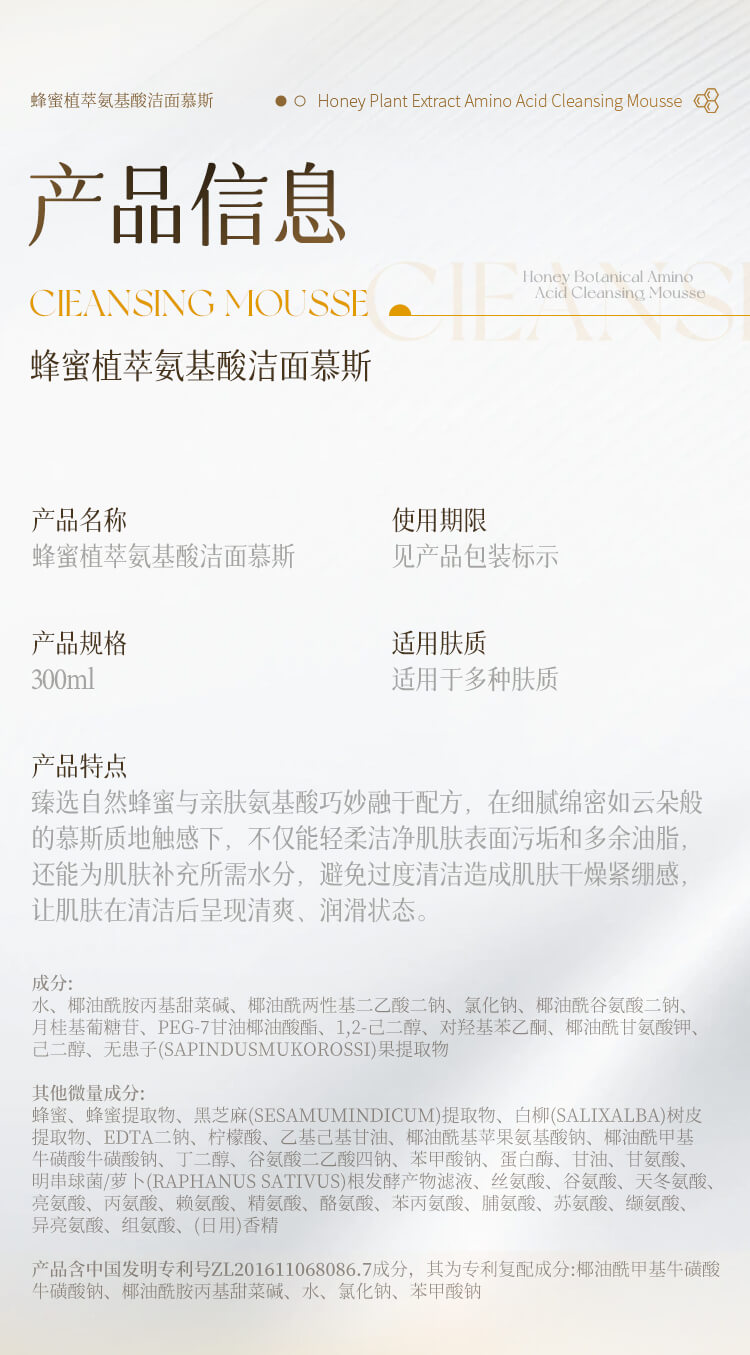 中农蜂研蜂蜜植萃氨基酸洁面慕斯 温和敏感肌友好 300ml