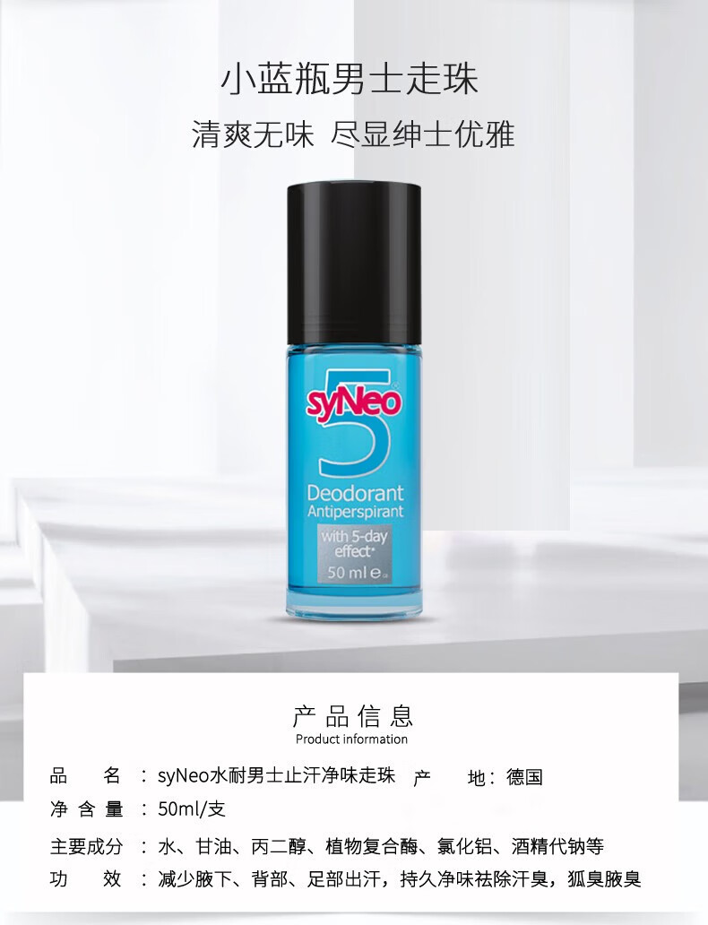 syneo水耐德国进口止汗露去味狐臭走珠男士腋臭根腋下淡香遗传止汗净味 男士止汗净味走珠50ml/瓶
