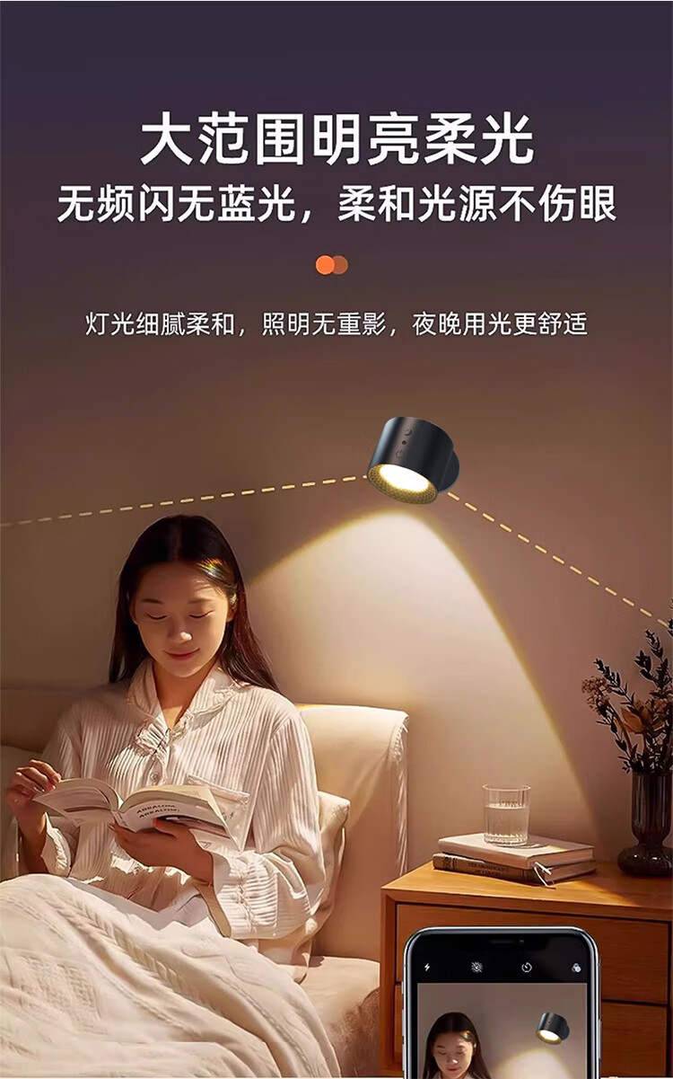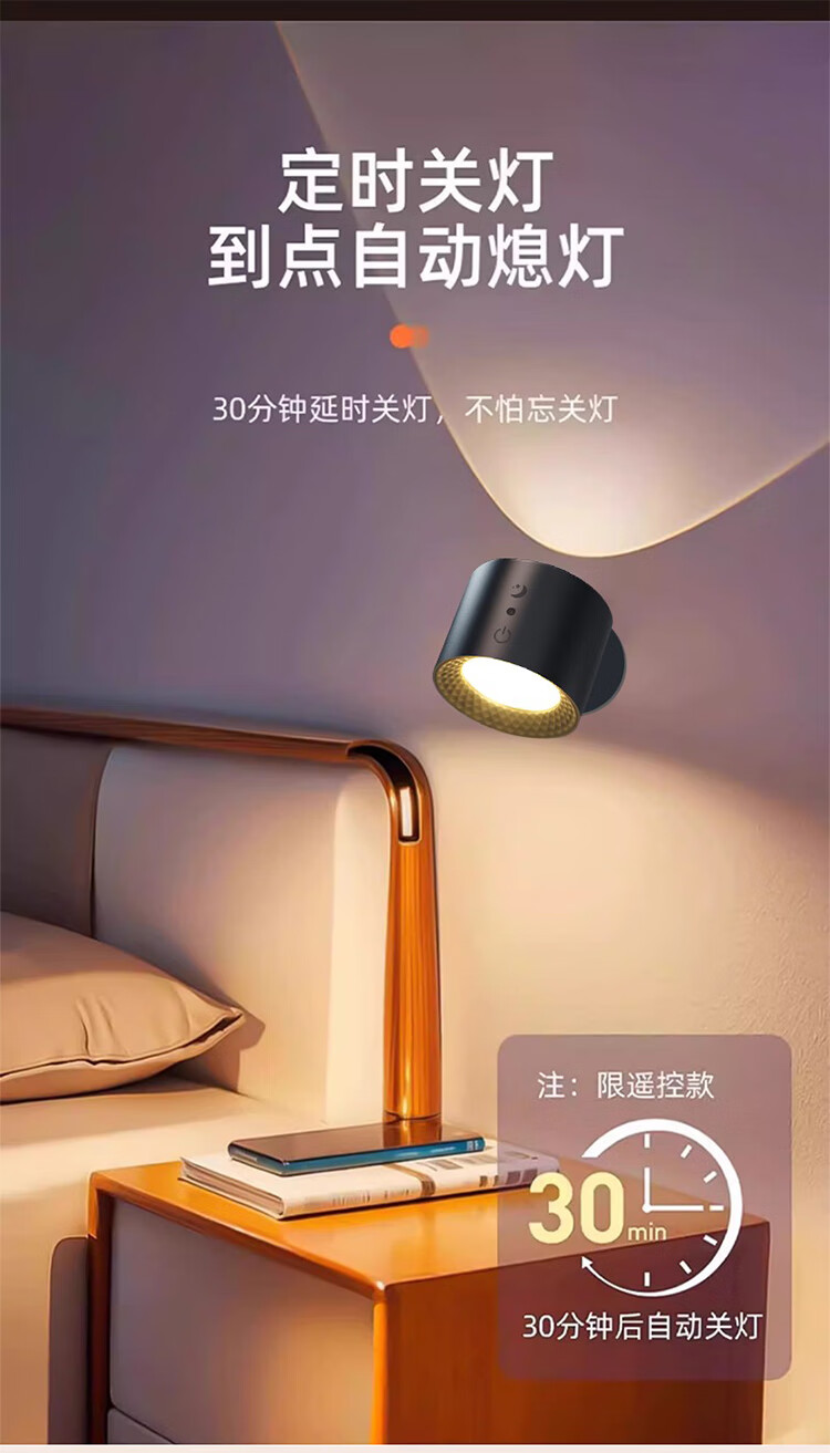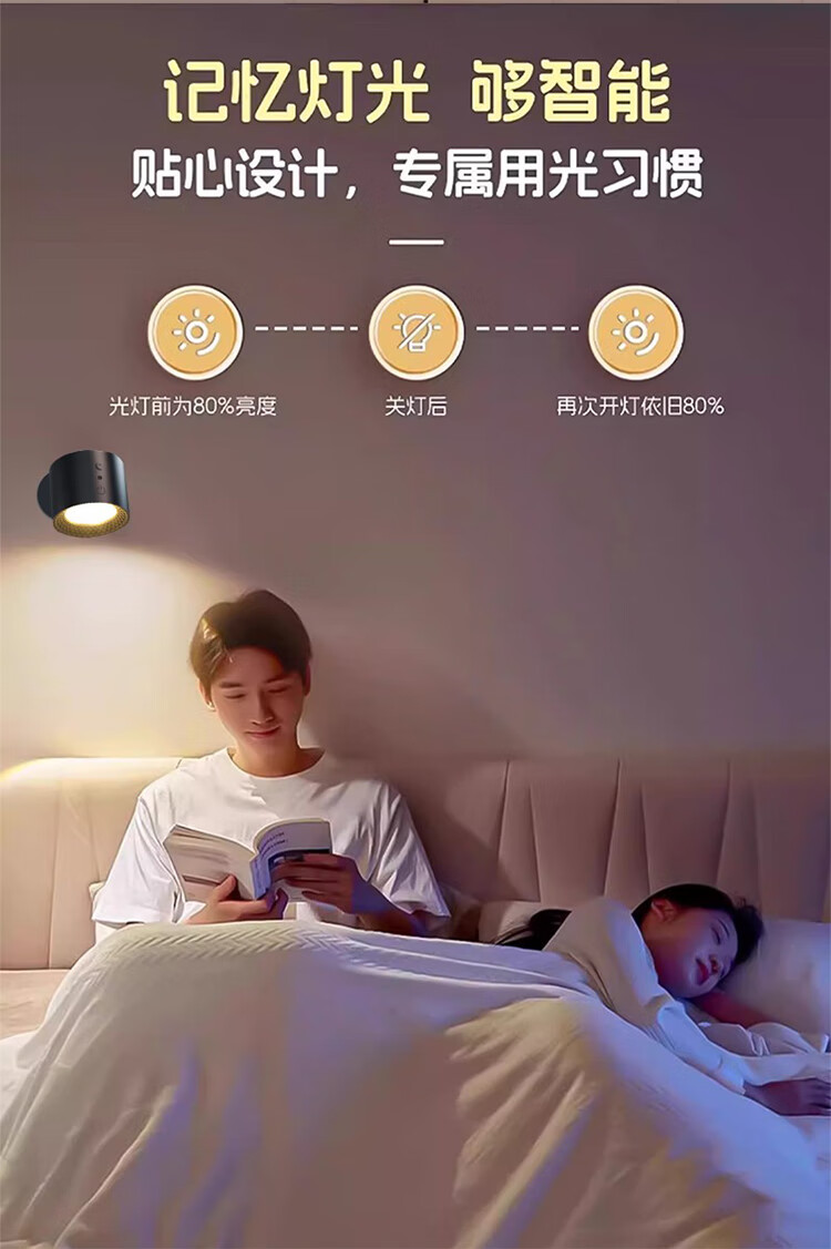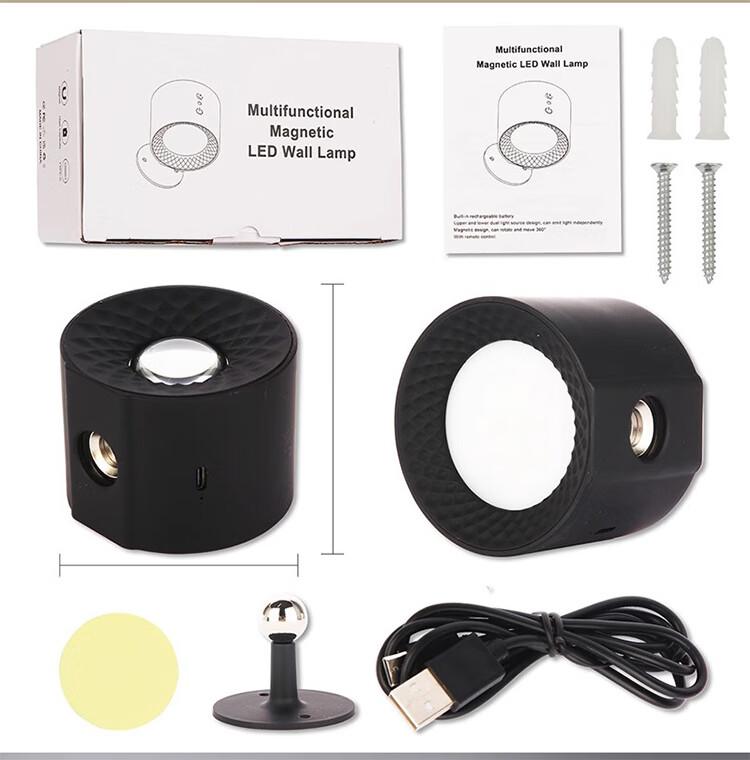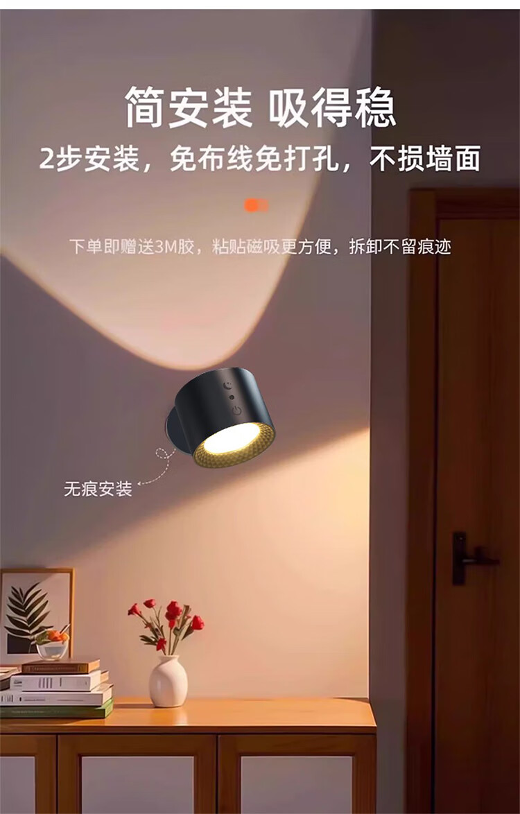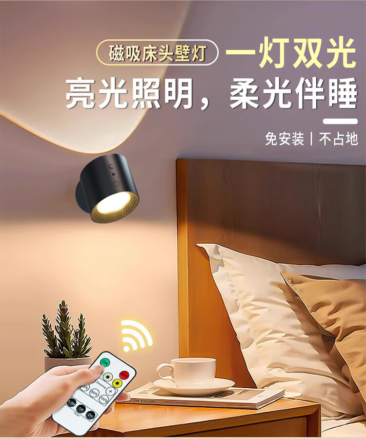 筏芯德国充电磁吸壁灯免接线免布线双头无线免打孔卧室床头阅读墙壁灯 双头黑色款·磁吸底座