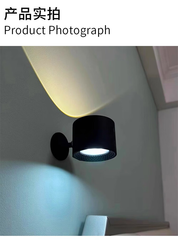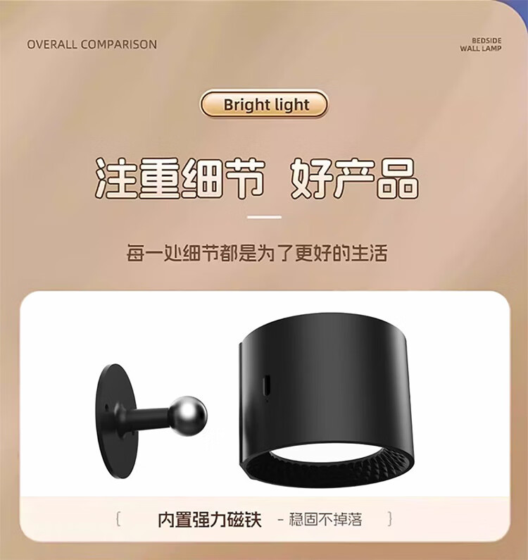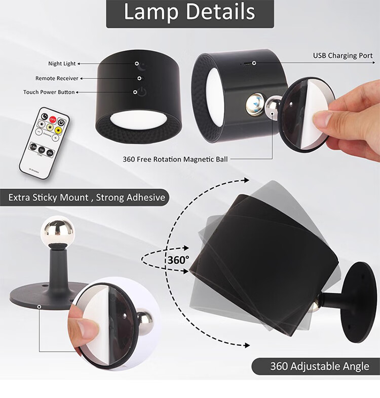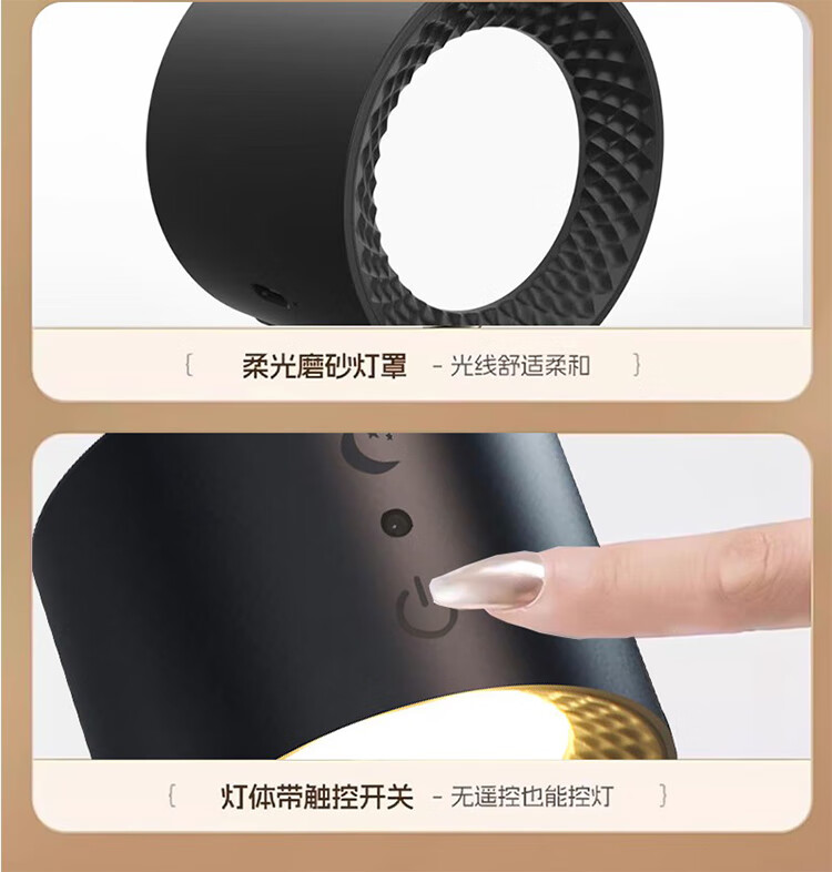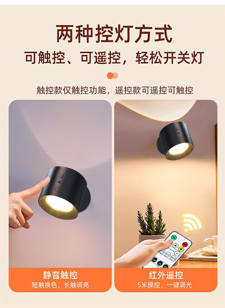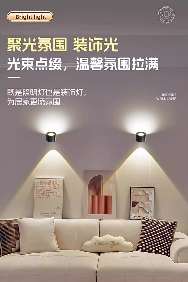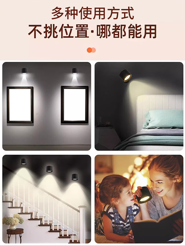 筏芯德国充电磁吸壁灯免接线免布线双头无线免打孔卧室床头阅读墙壁灯 双头黑色款·磁吸底座