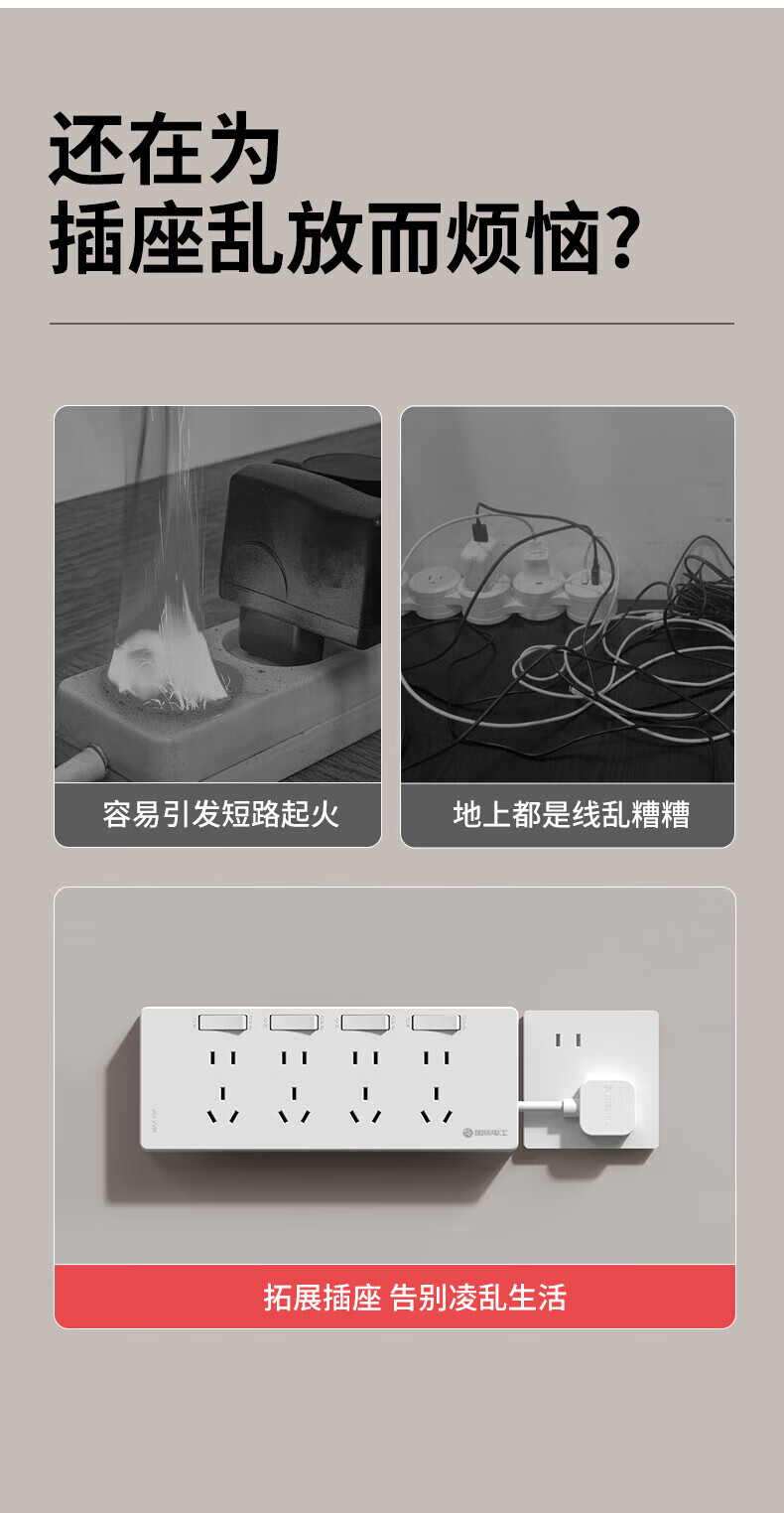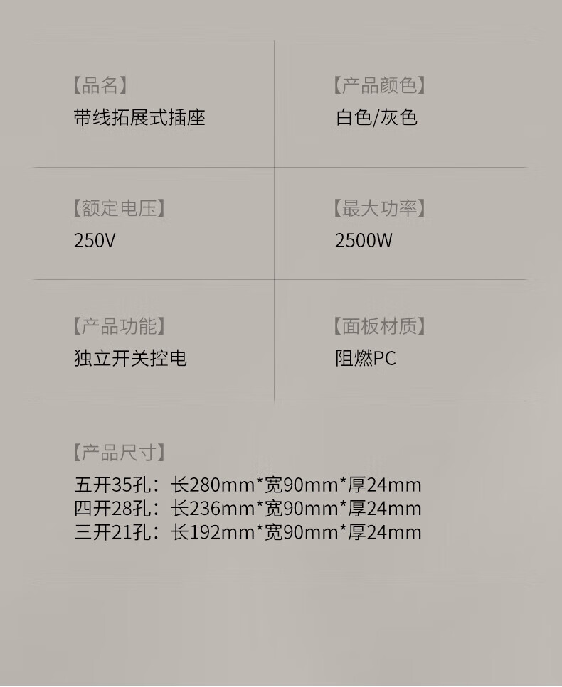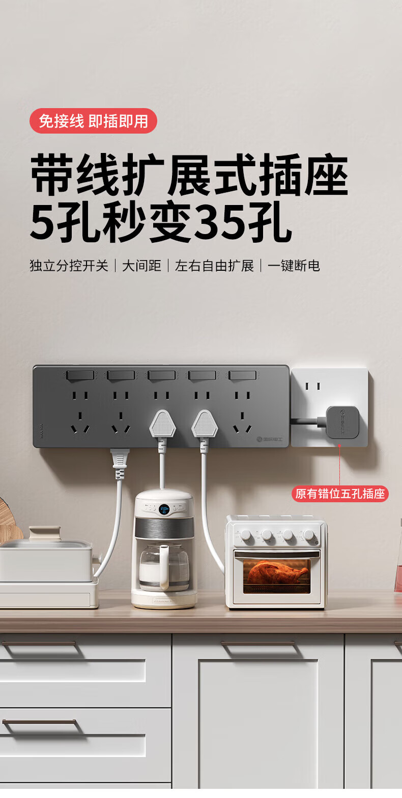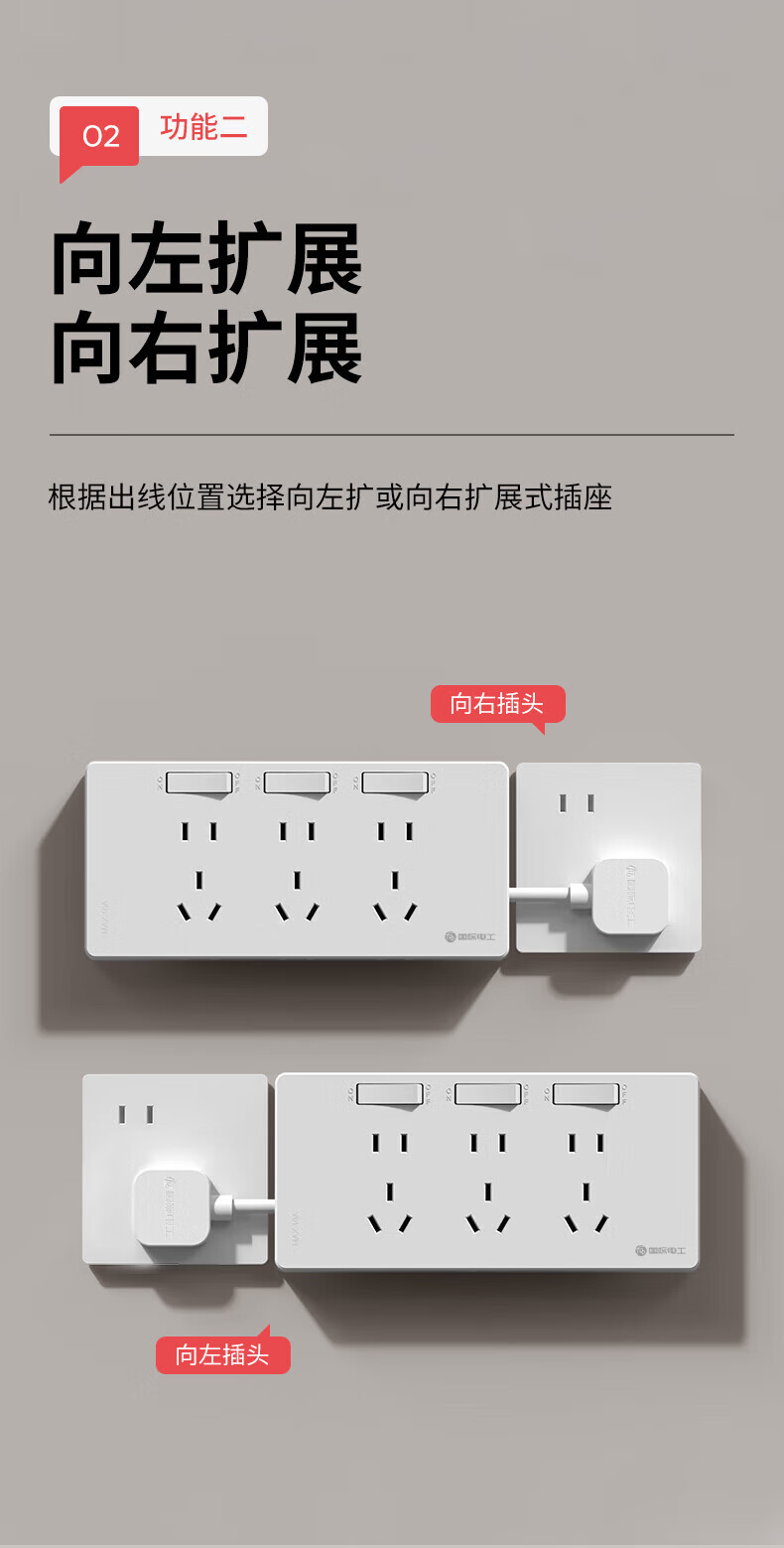 国际电工床头插座扩展转换器多功能客厅餐边柜扩展插头厨房短线插排插线板 向左扩展【三开21孔】白色短线