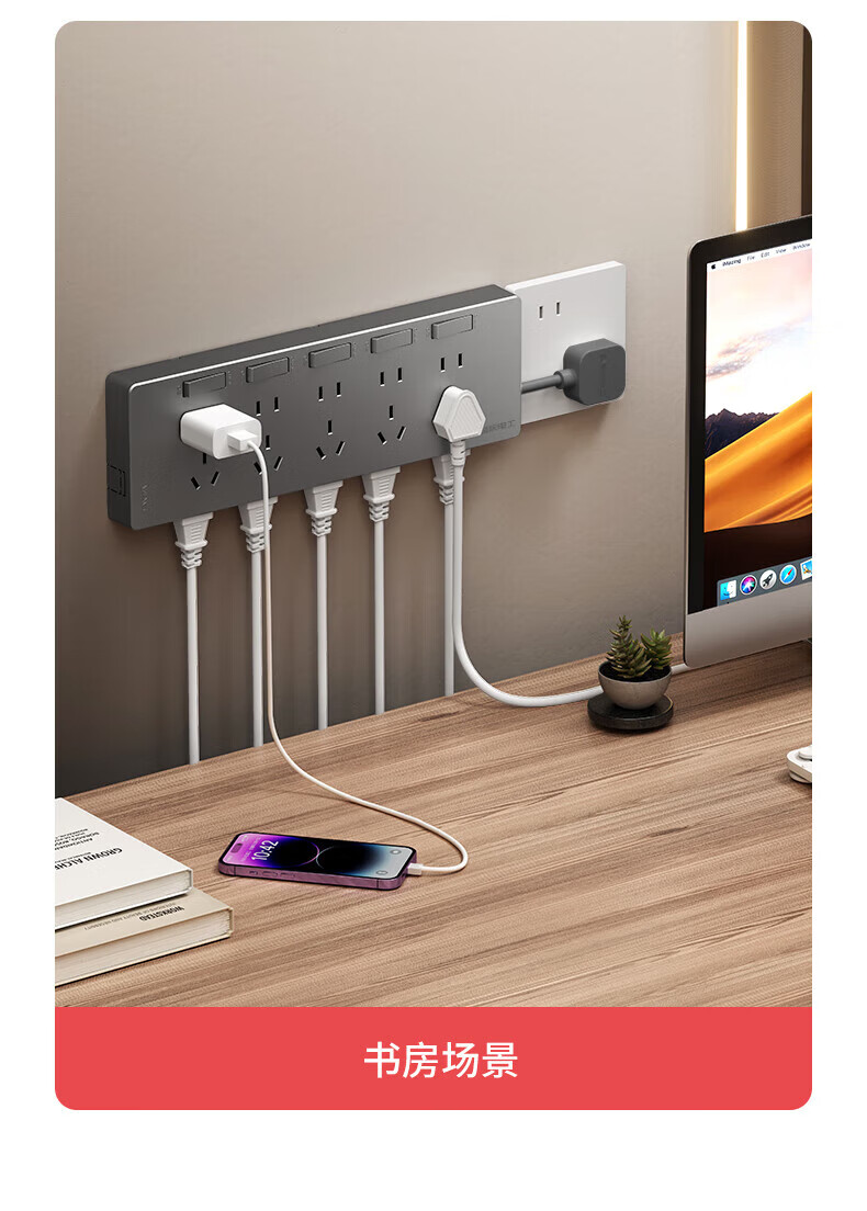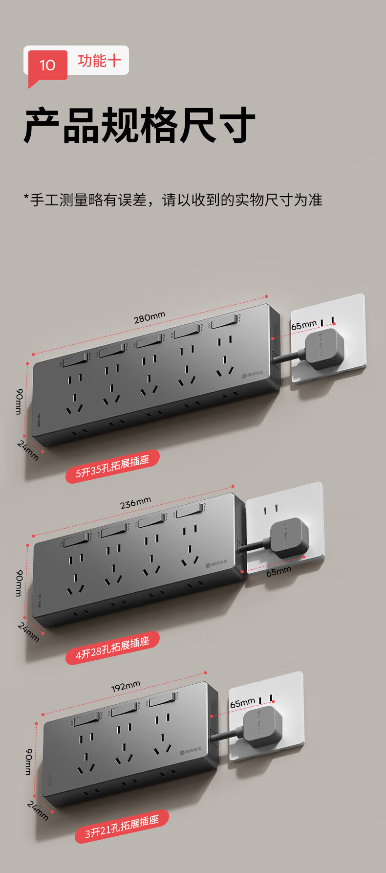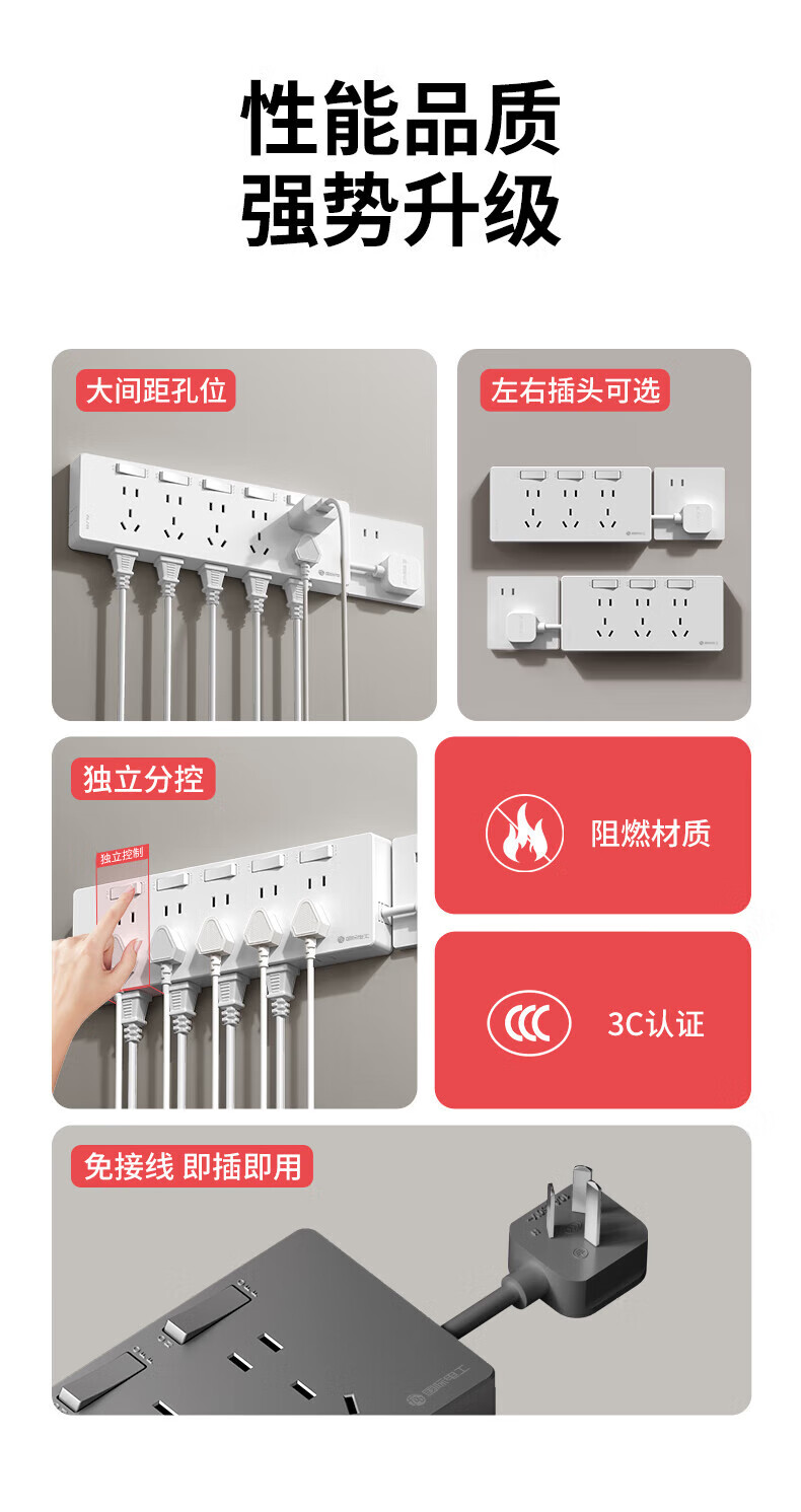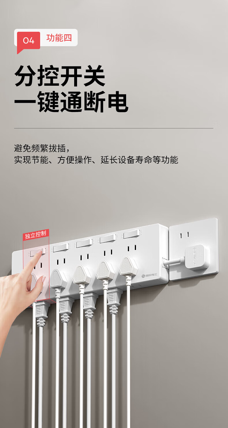 国际电工床头插座扩展转换器多功能客厅餐边柜扩展插头厨房短线插排插线板 向左扩展【三开21孔】白色短线