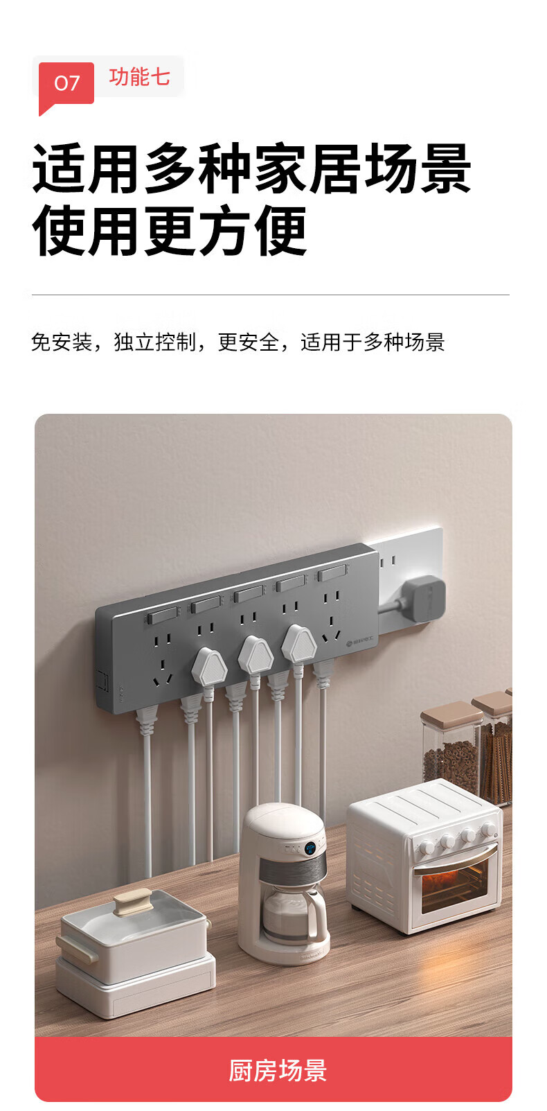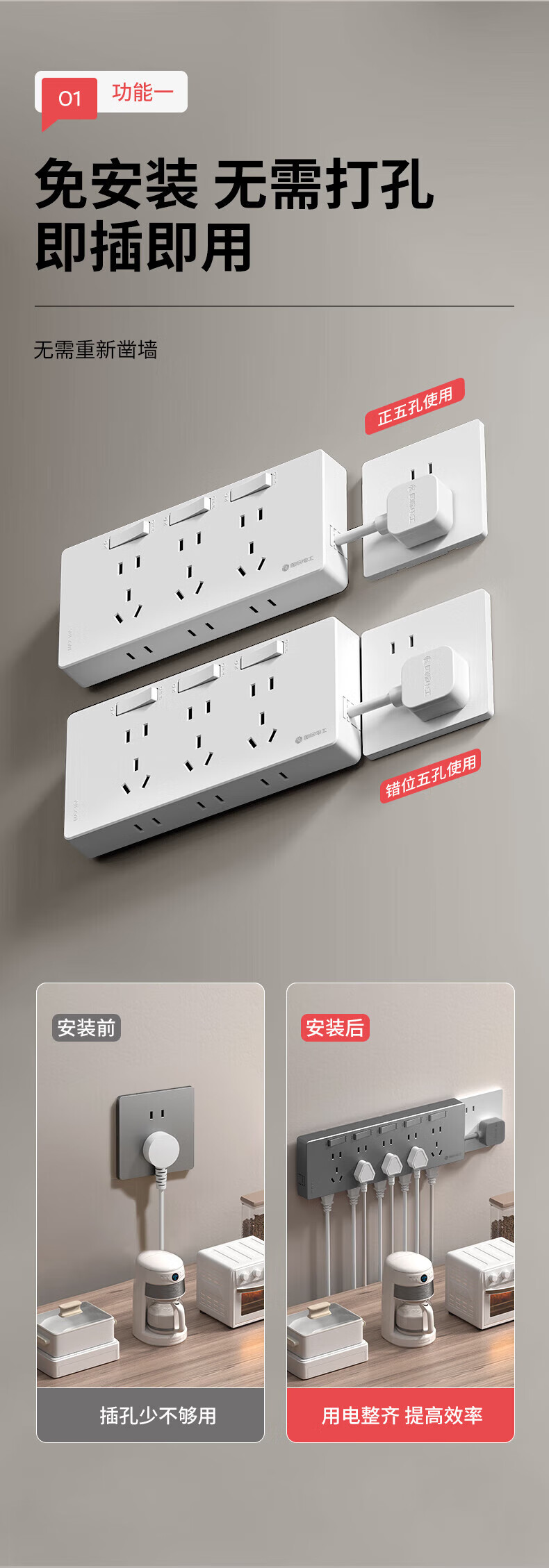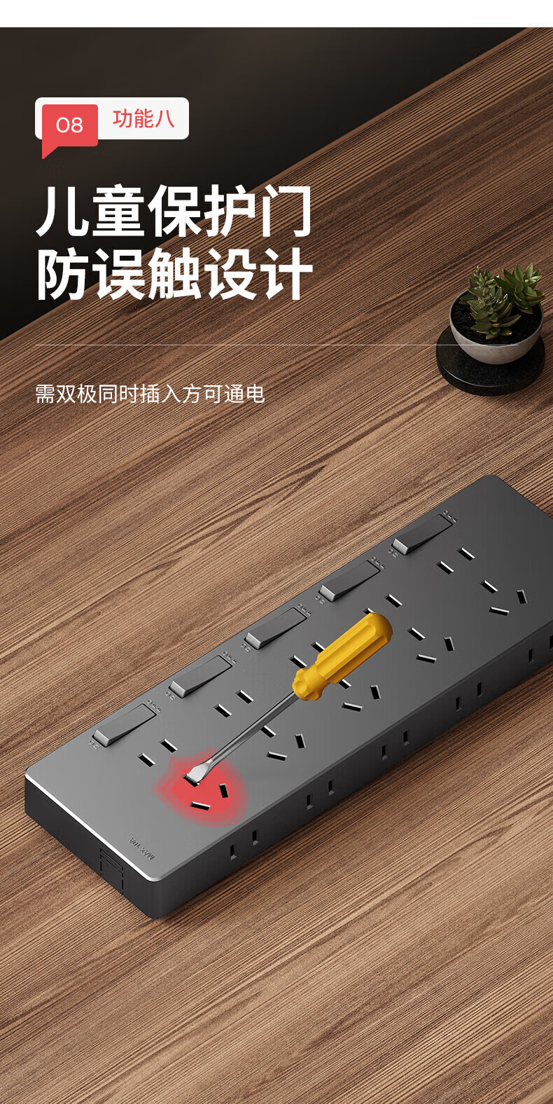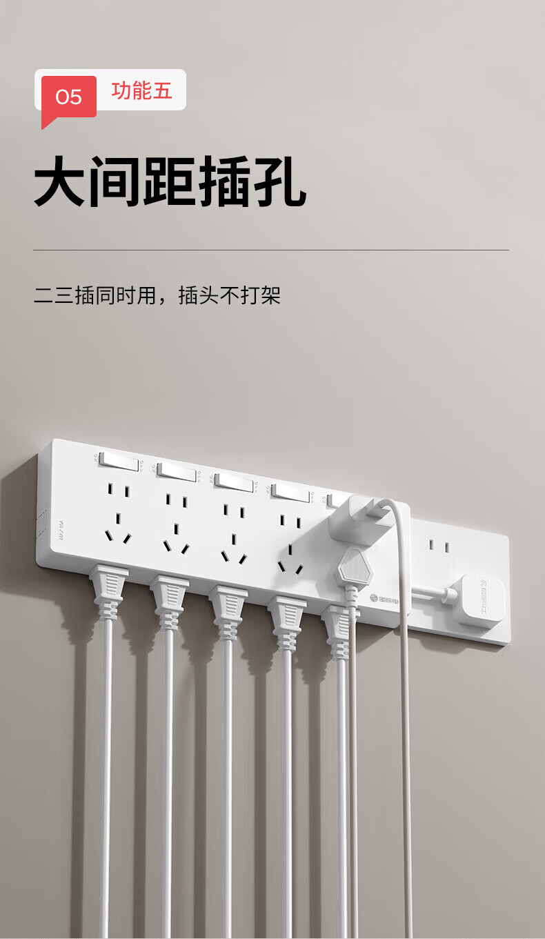 国际电工床头插座扩展转换器多功能客厅餐边柜扩展插头厨房短线插排插线板 向左扩展【三开21孔】白色短线
