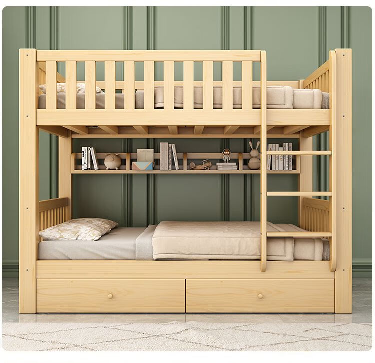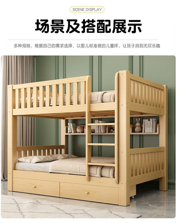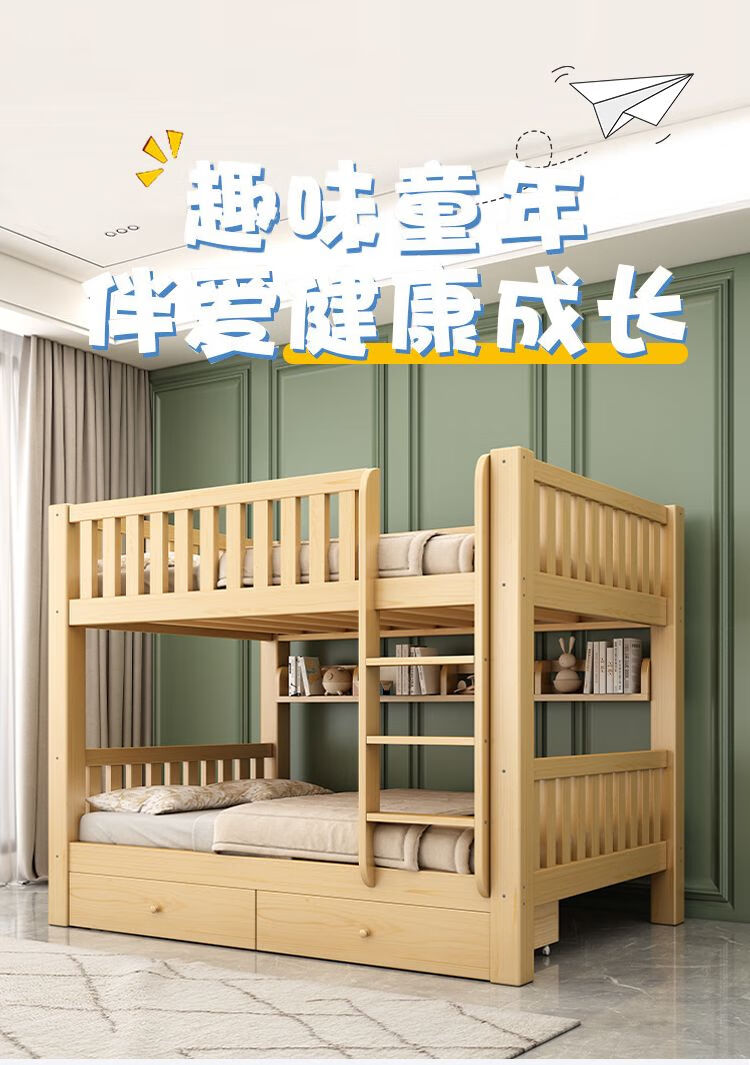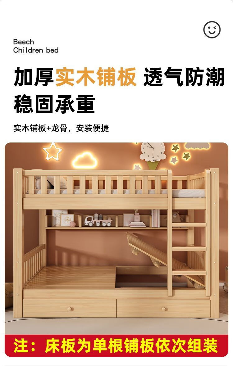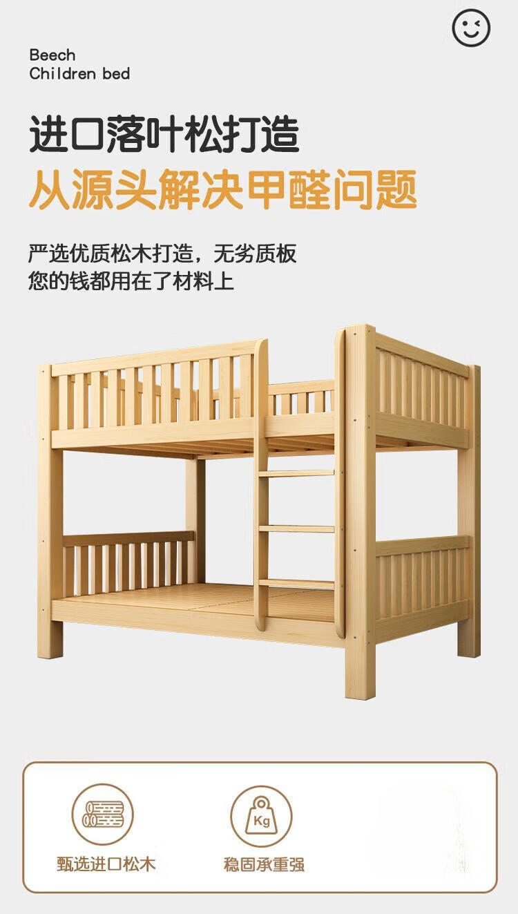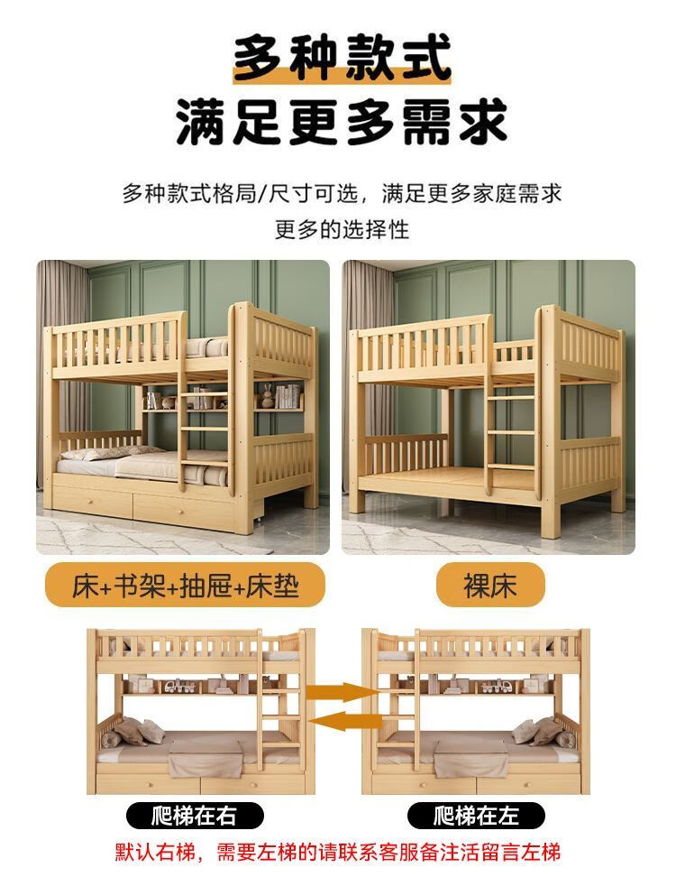 欣慕雅全实木床上下床成人双层床高低子母床多功能儿童双人床二层上下铺 【全实木】直梯款高低床铺 宽800mm*长1900mm