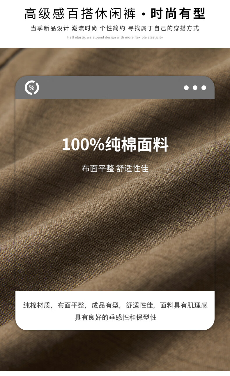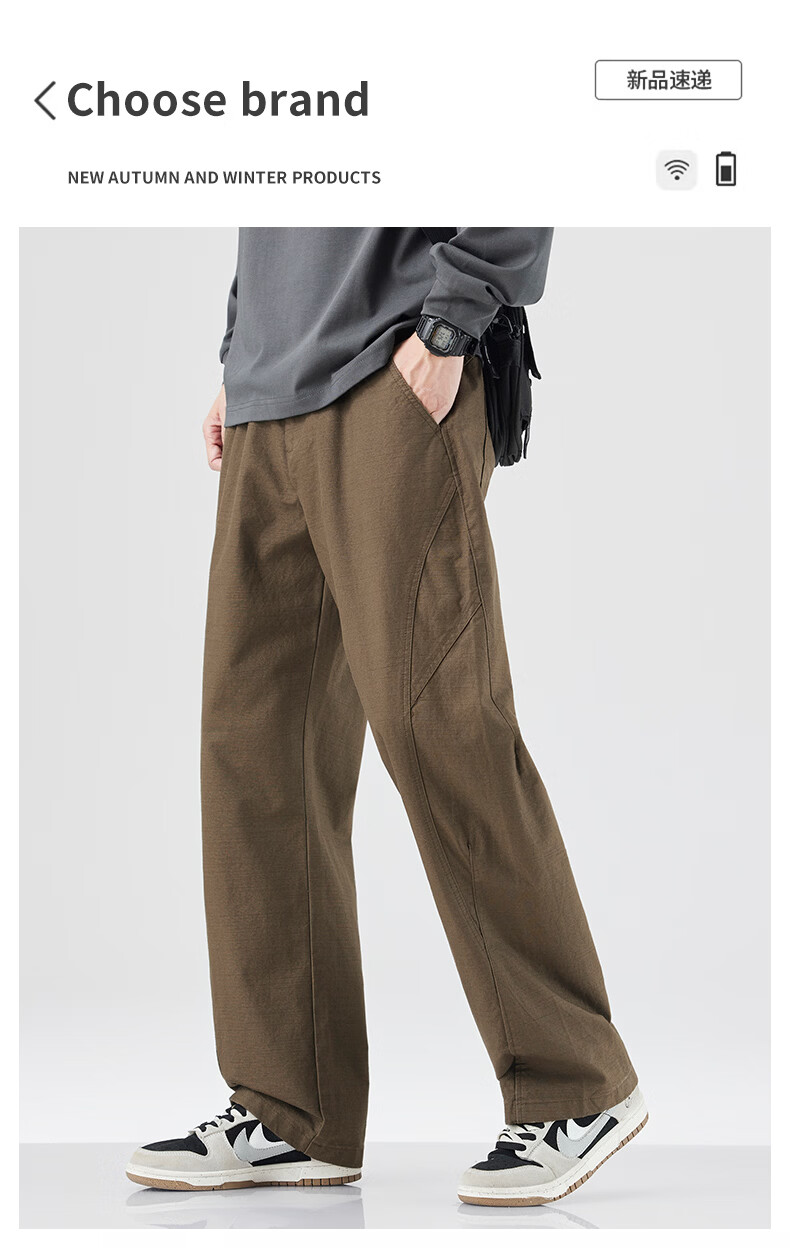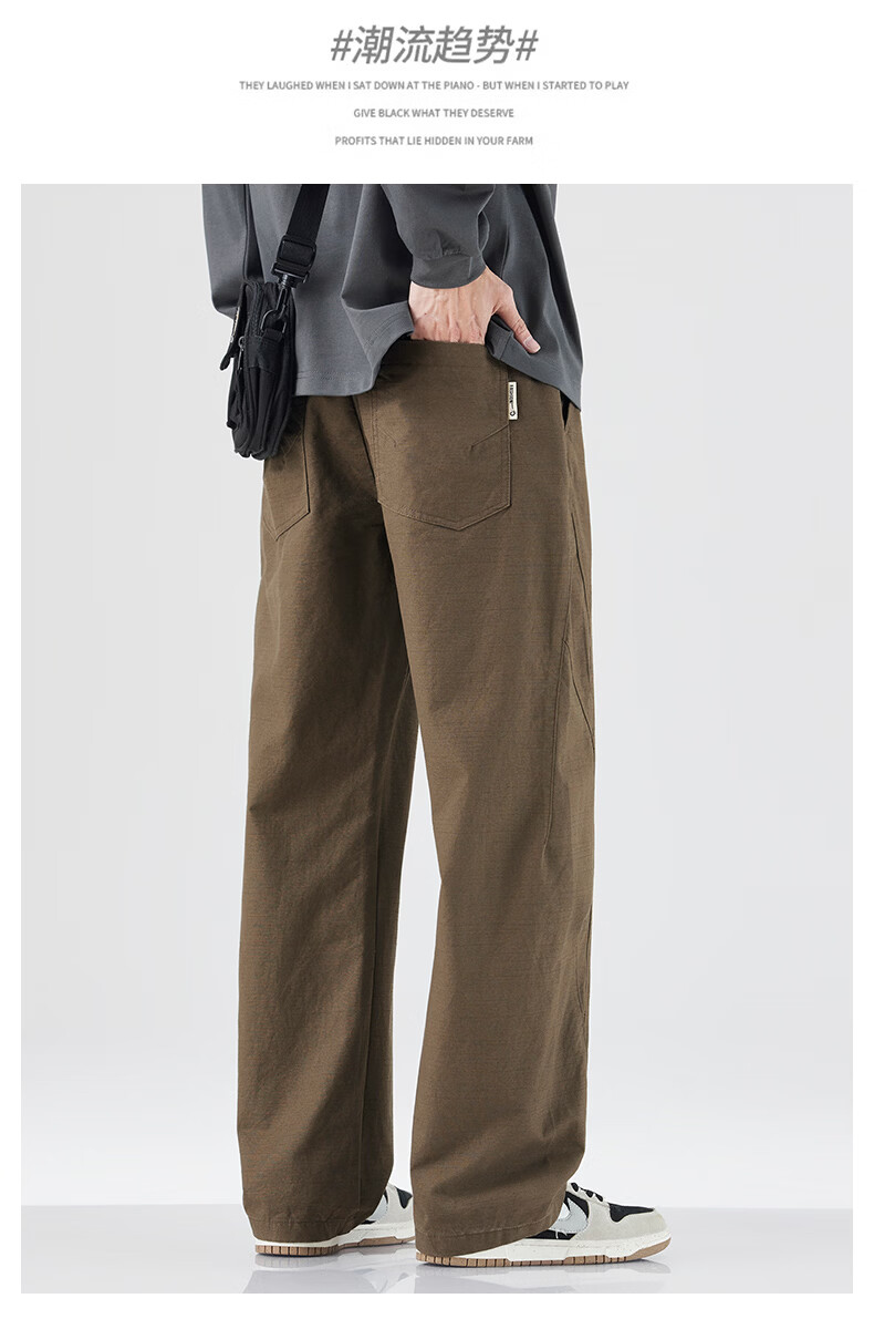 真维斯休闲裤男纯棉高端舒适直筒裤男2026新款潮牌宽松百搭保暖工装裤男 深咖色 S