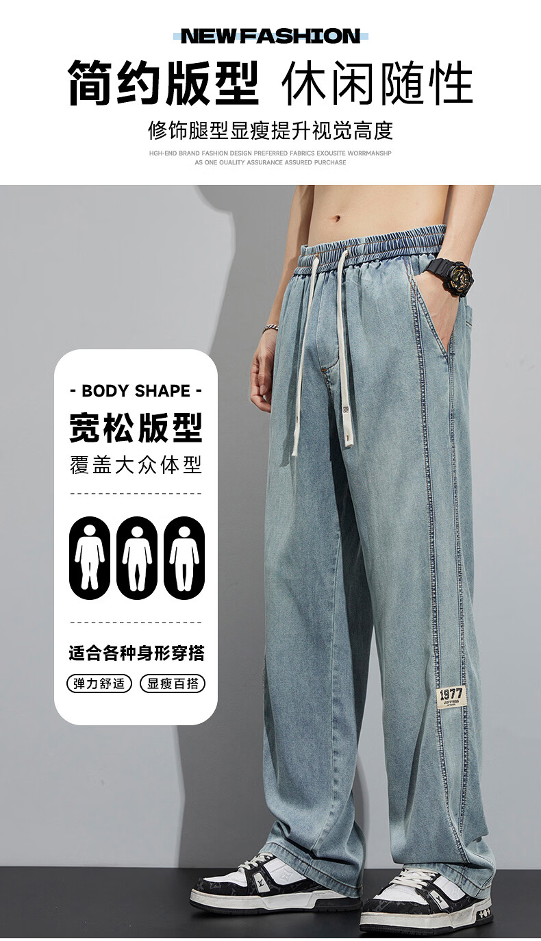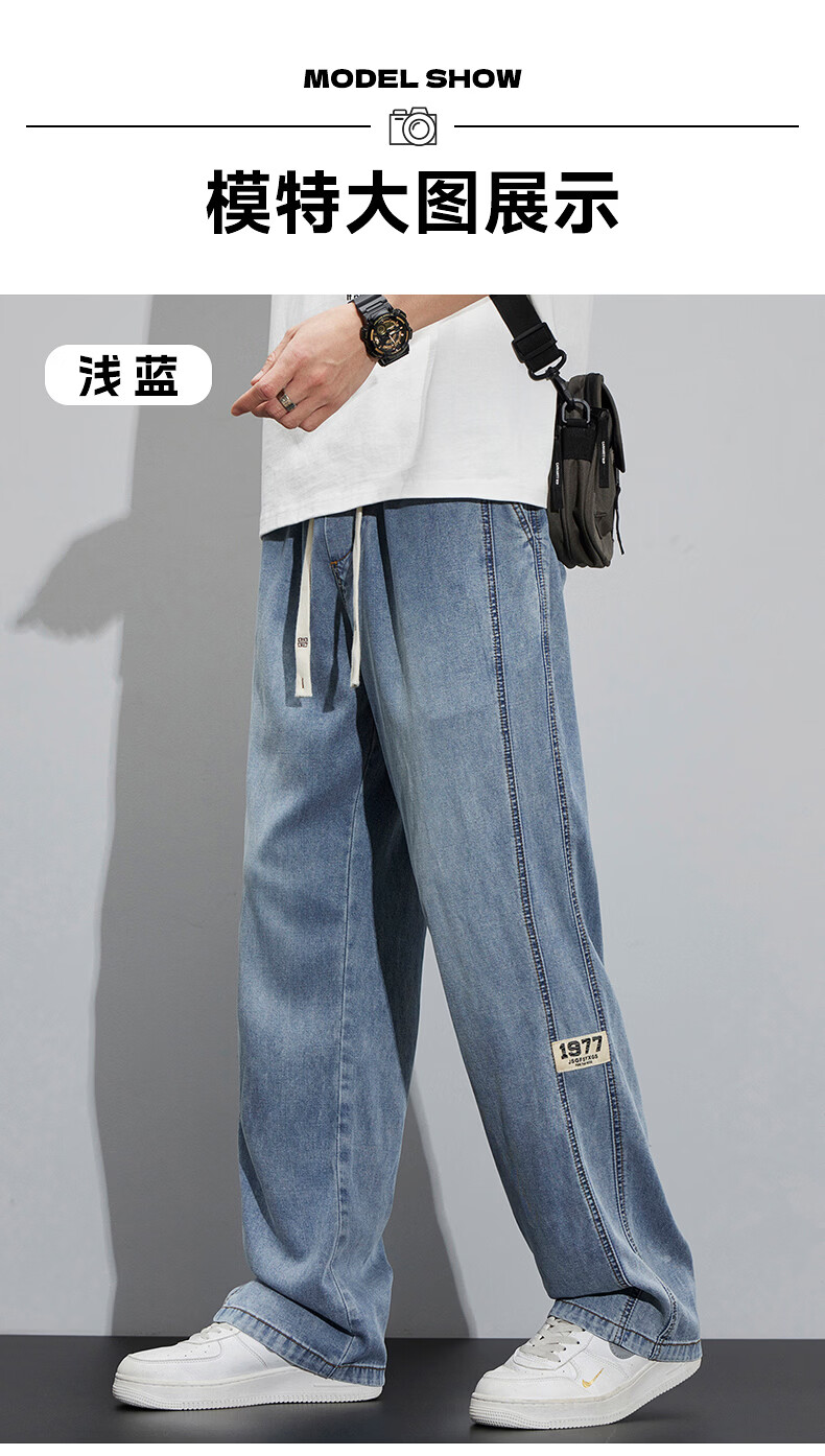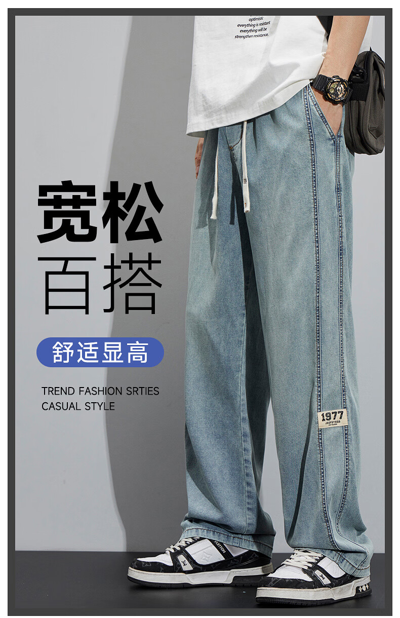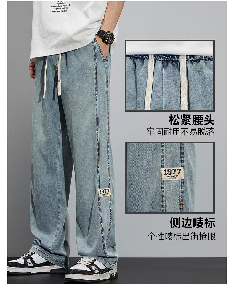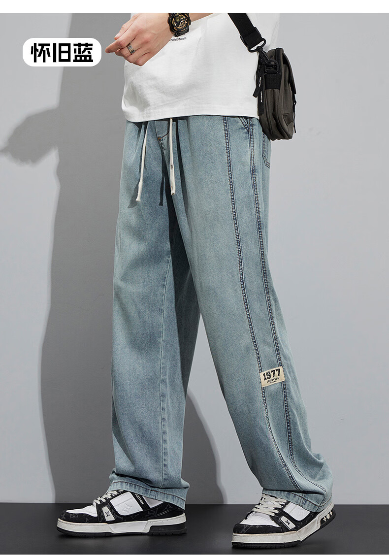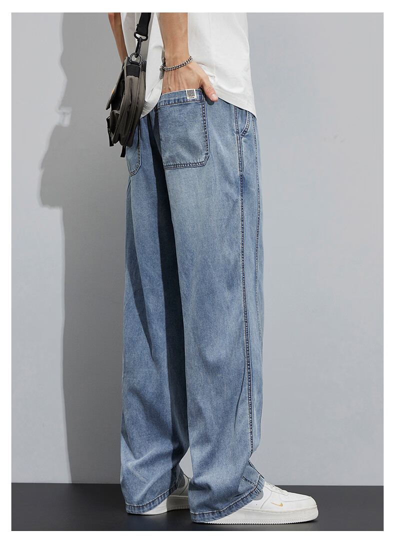 真维斯(Jeanswest)2026新款天丝牛仔裤男士夏季薄款宽松直筒美式工装休闲冰丝长裤子 怀旧蓝 M