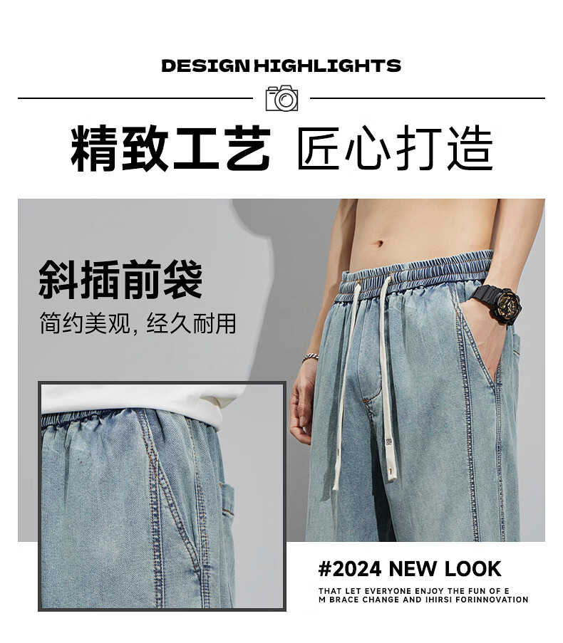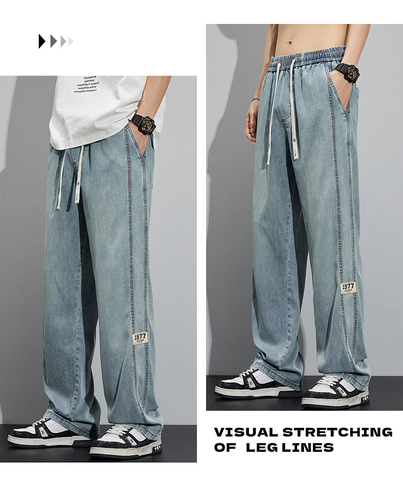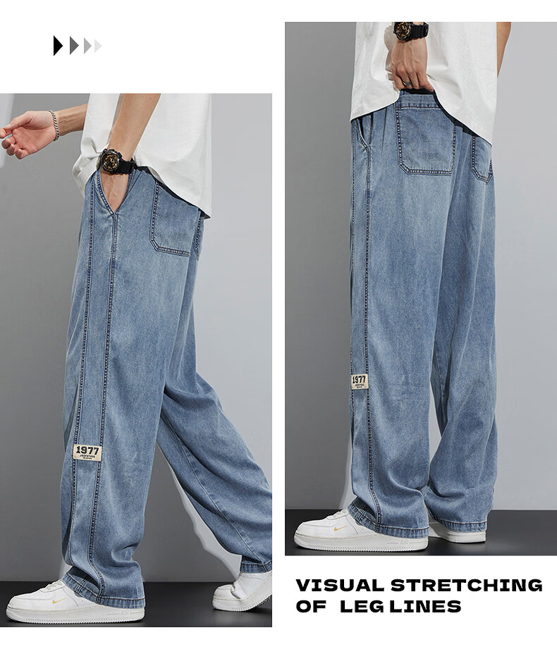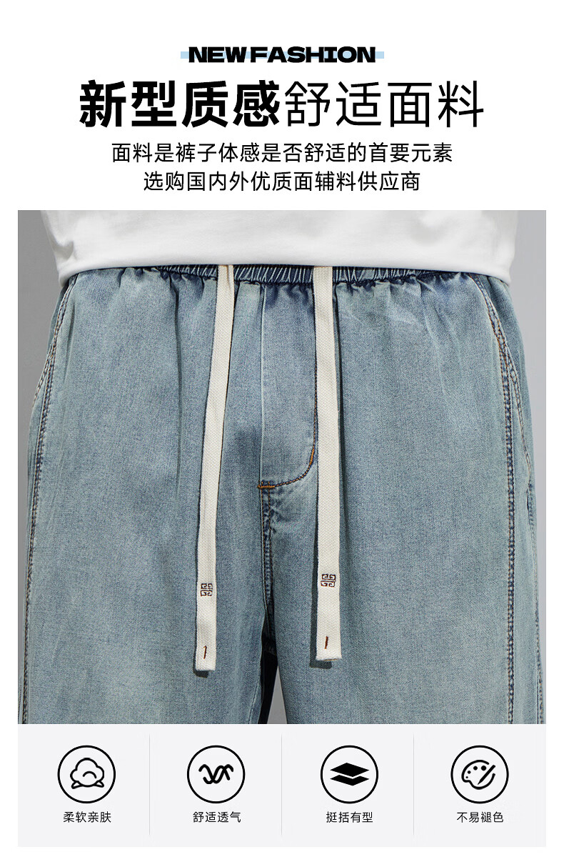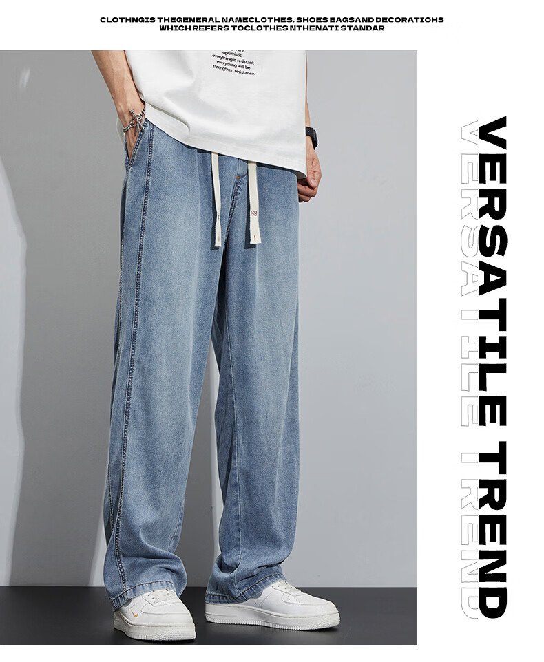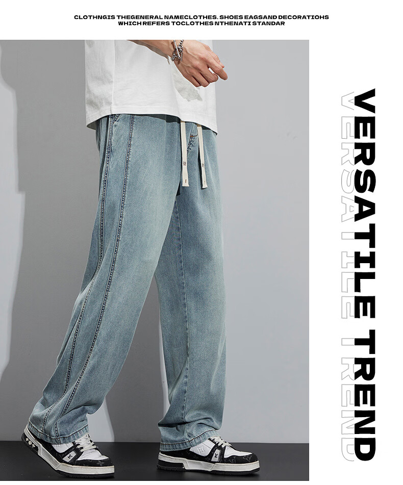 真维斯(Jeanswest)2026新款天丝牛仔裤男士夏季薄款宽松直筒美式工装休闲冰丝长裤子 怀旧蓝 M