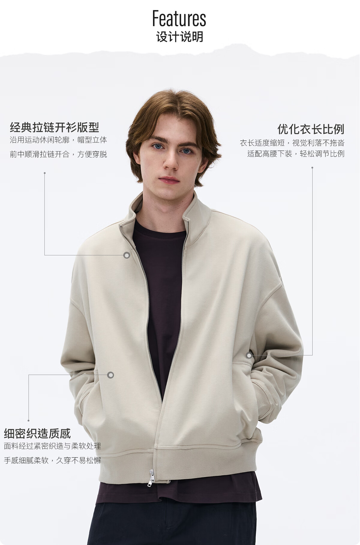 熊猫·本(ben.panda)休闲立领开衫卫衣男士百搭长袖外套上衣2026春季新款 卡其色 M
