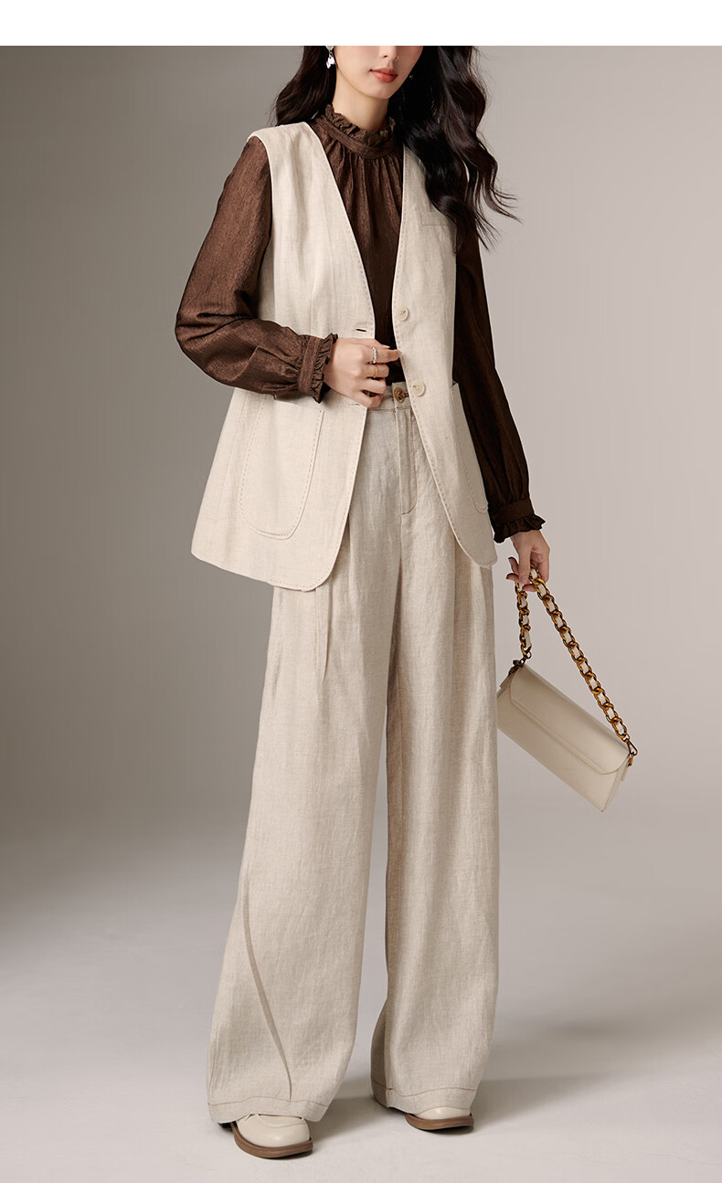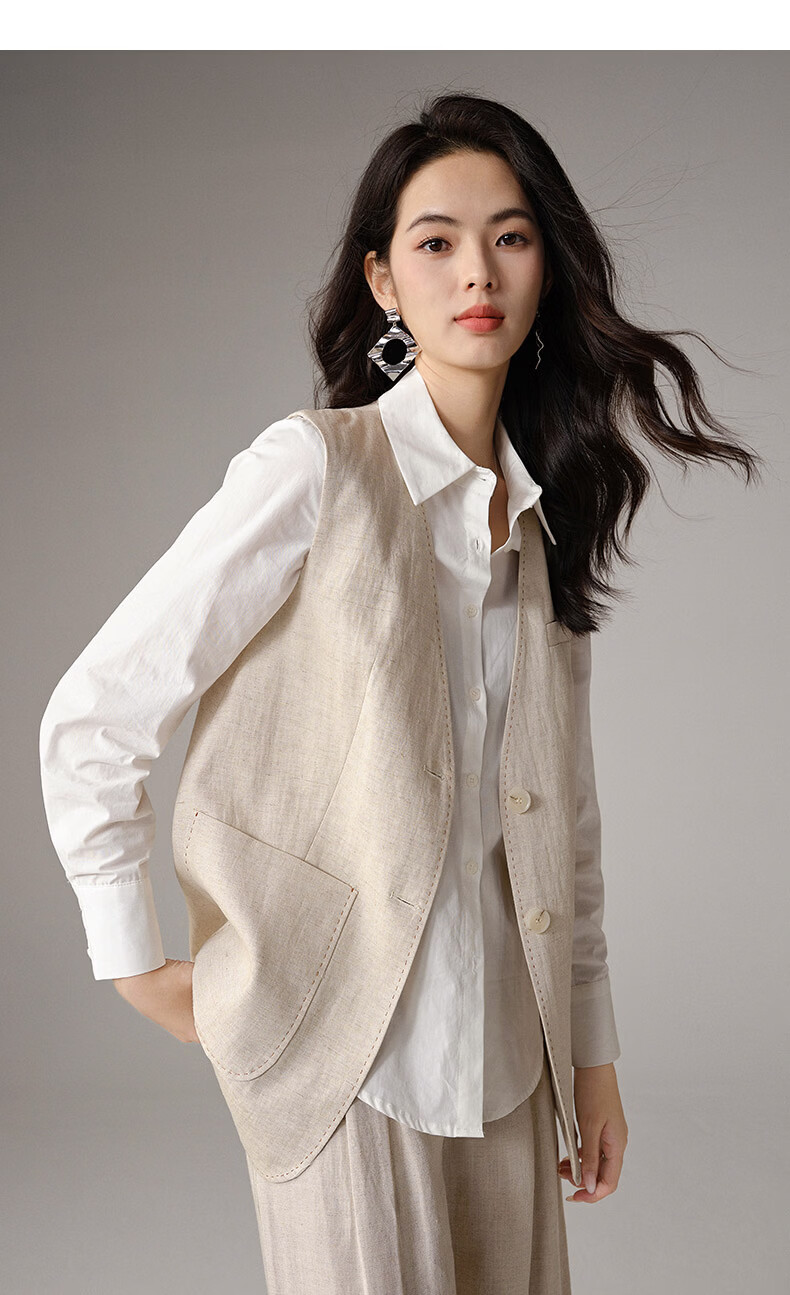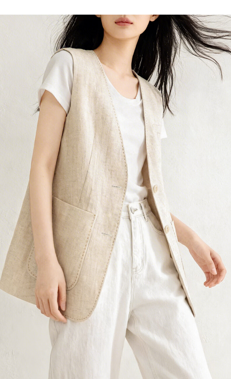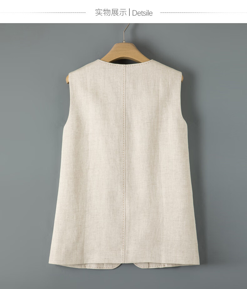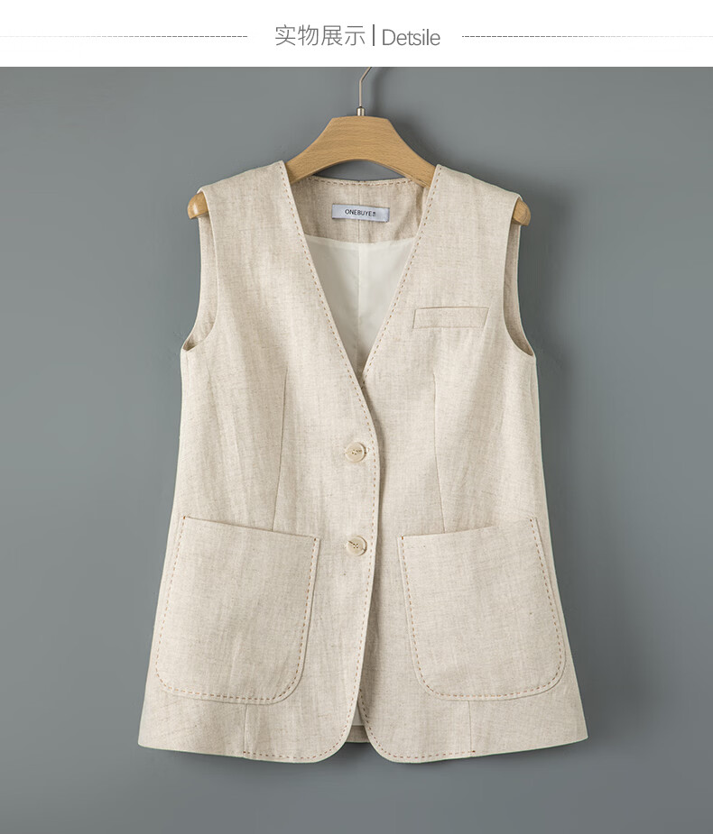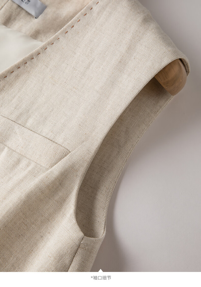 晚白【新品】2026年春款经典V领气质通勤亲肤莱赛尔西装马甲女 原麻色 M