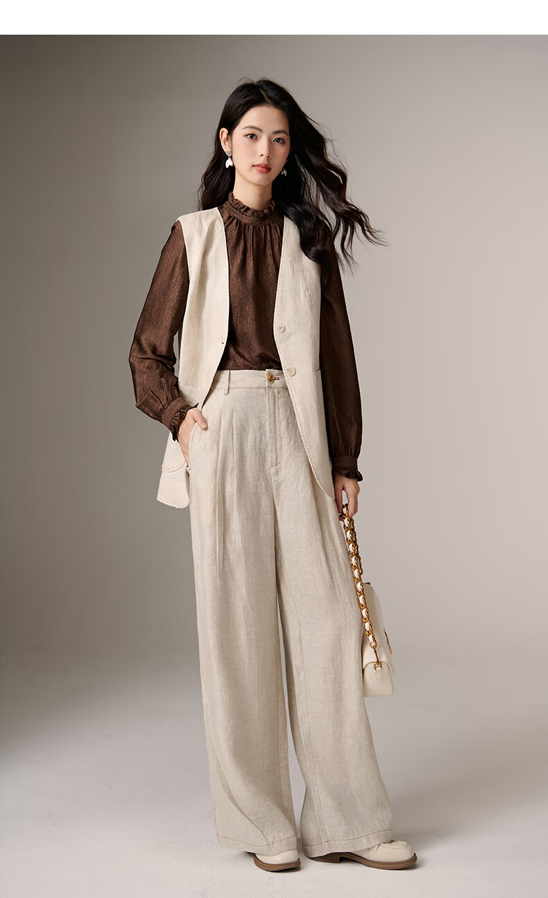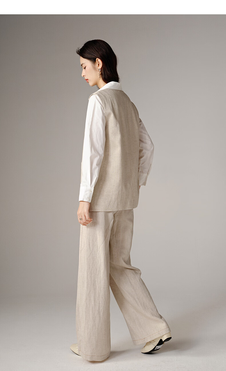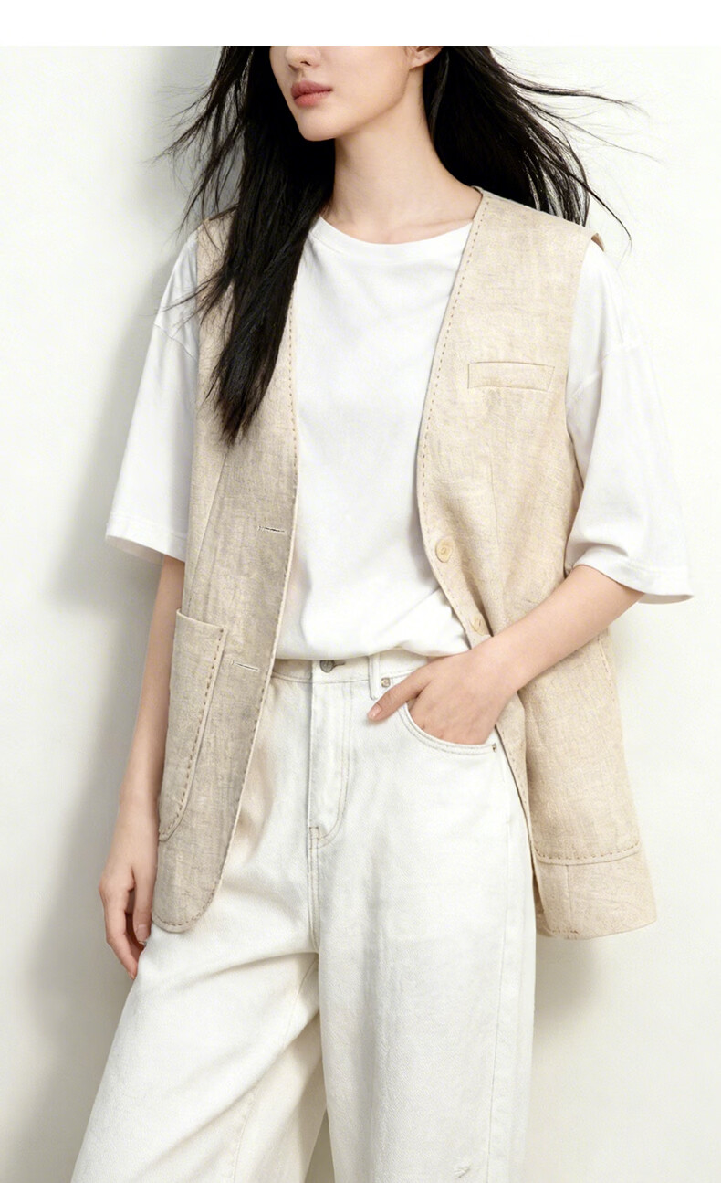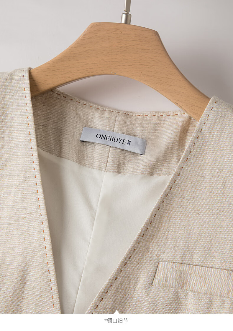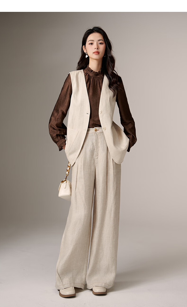 晚白【新品】2026年春款经典V领气质通勤亲肤莱赛尔西装马甲女 原麻色 M
