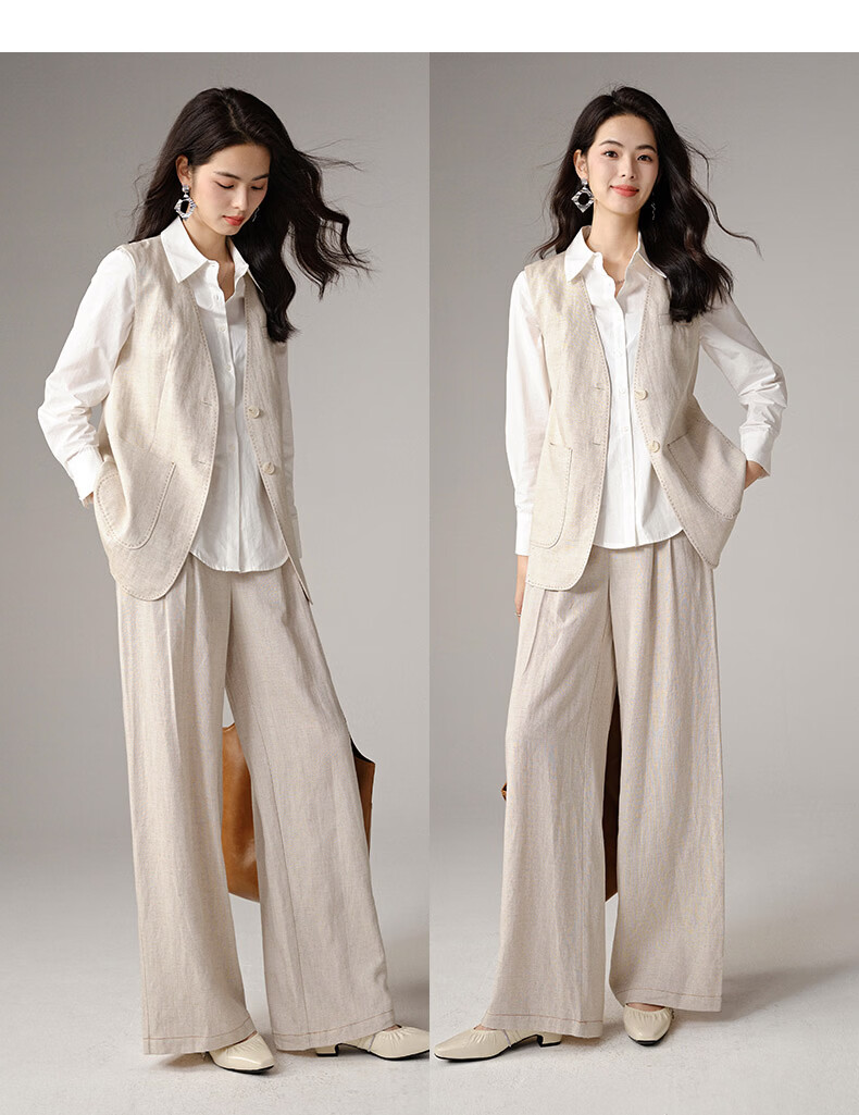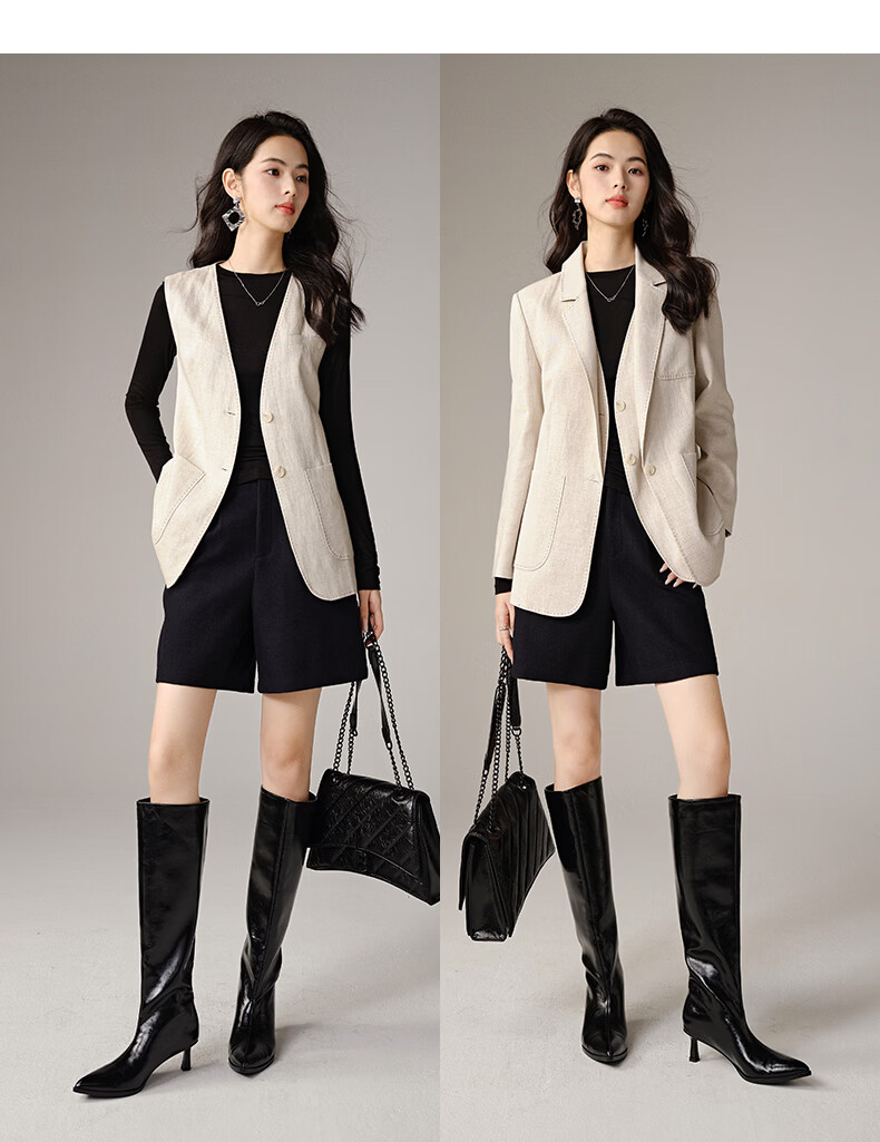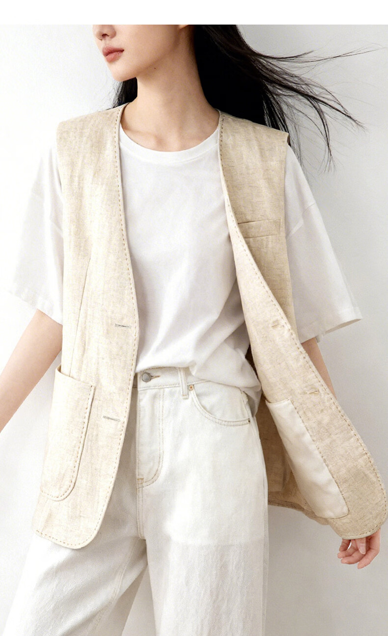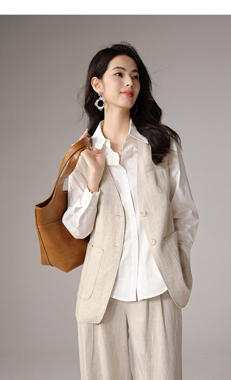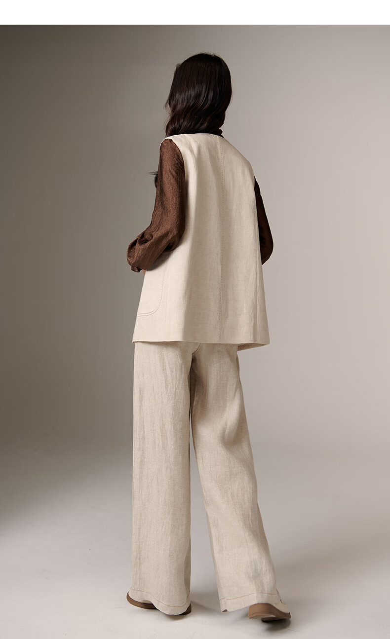 晚白【新品】2026年春款经典V领气质通勤亲肤莱赛尔西装马甲女 原麻色 M