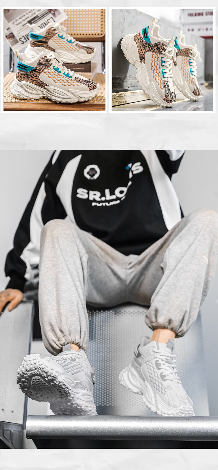 森馬高帮男鞋运动鞋春季2026年新款青少年国潮休闲减震厚底防滑老爹鞋 米色【基础款】 39 标准码数/现货秒发