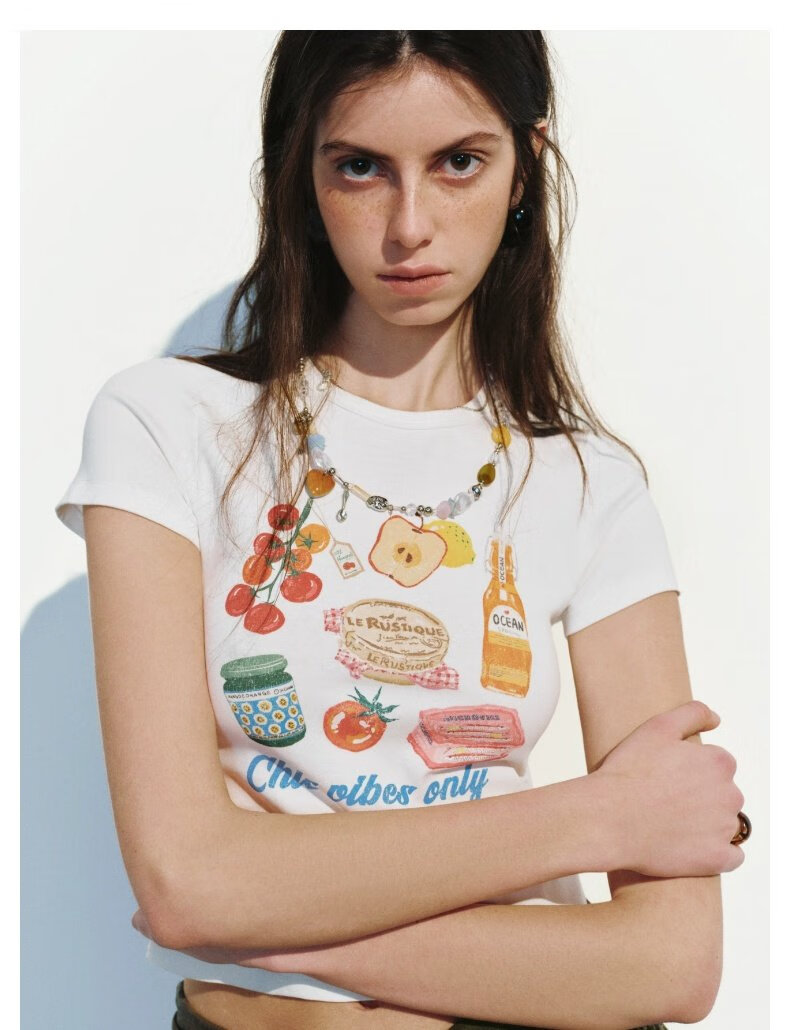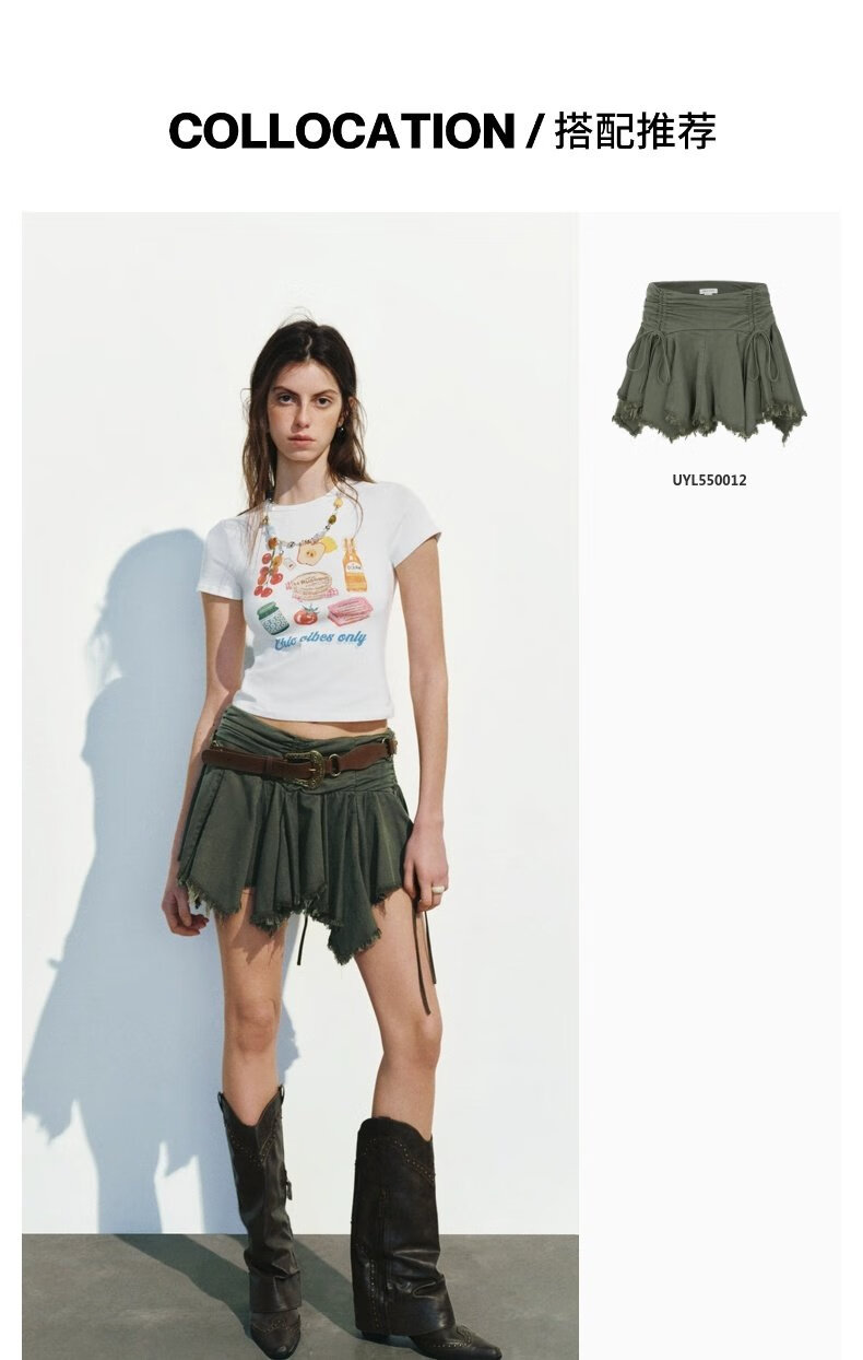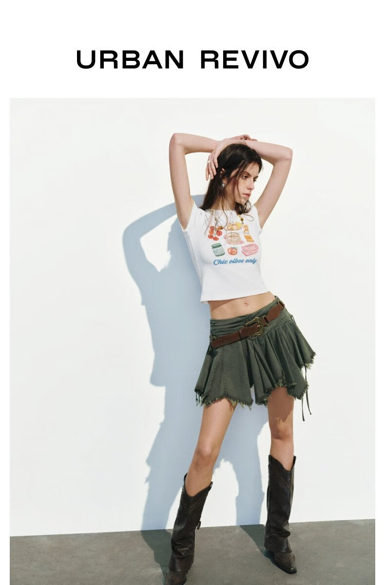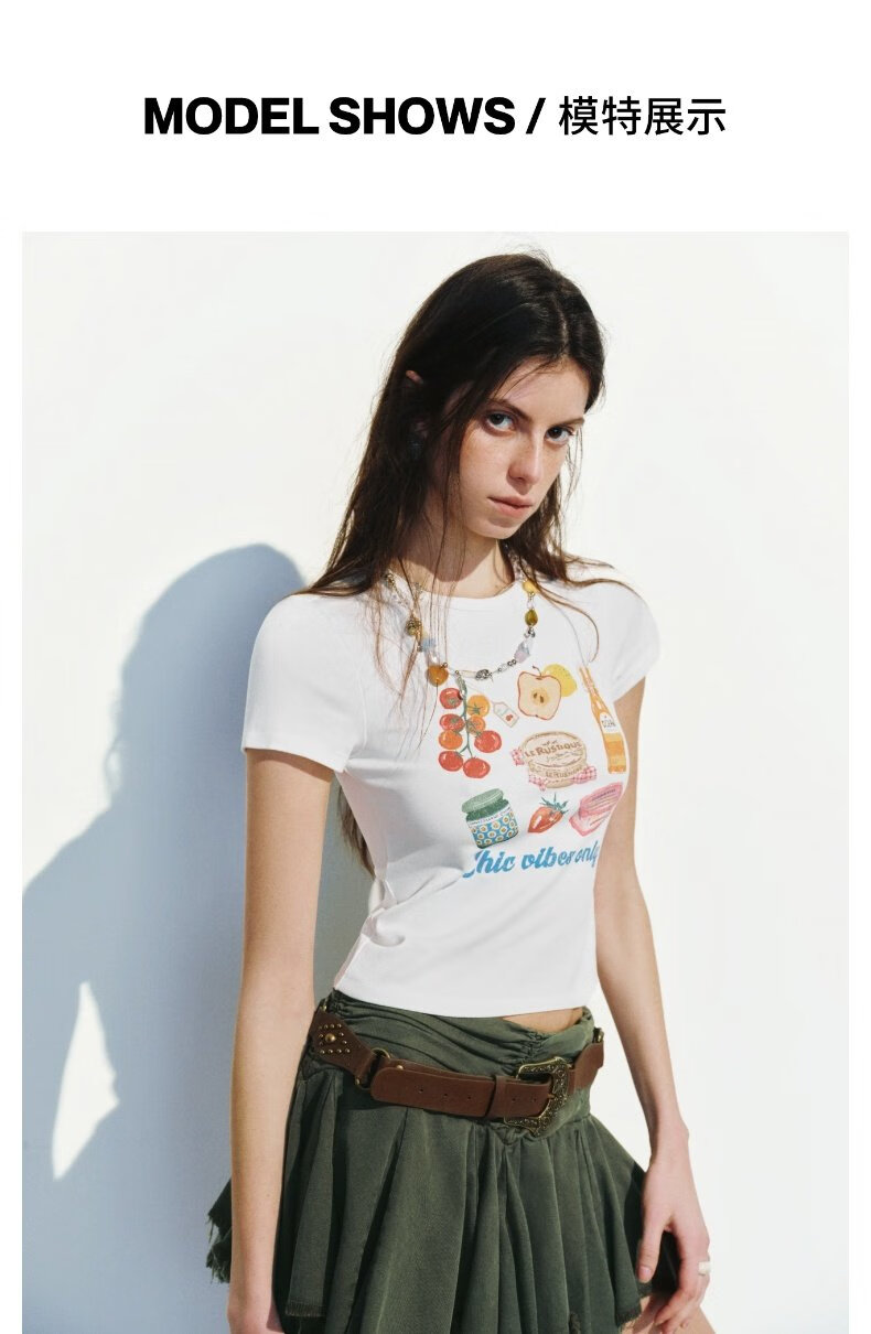 UR2025夏季新款女装趣味休闲印花短款修身短袖T恤UYL450067