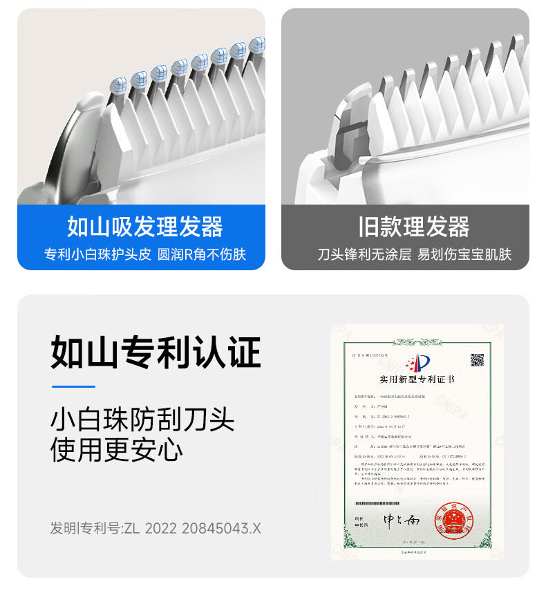 如山小白珠婴儿理发器超静音自动吸发宝宝剃头发专用电推子剃发器