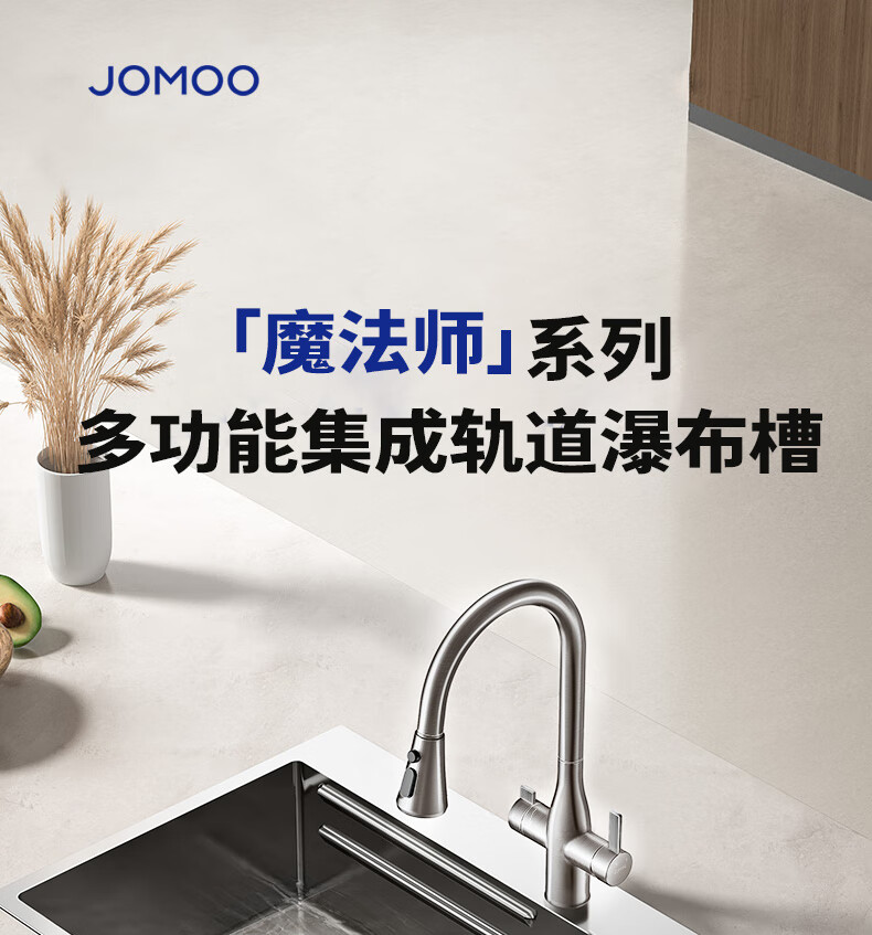 九牧(JOMOO)不锈钢魔法师厨房水槽大单槽洗菜盆飞雨瀑布槽78*48抽拉龙头06388