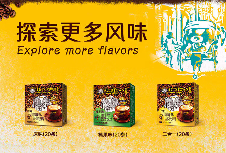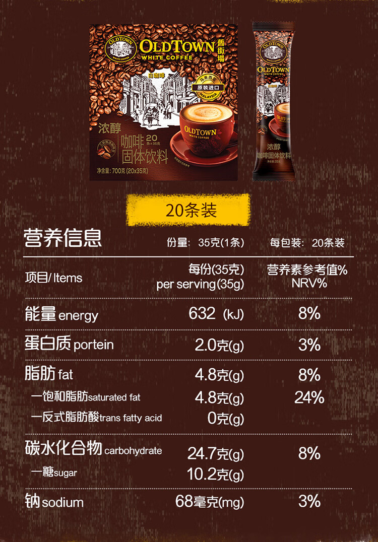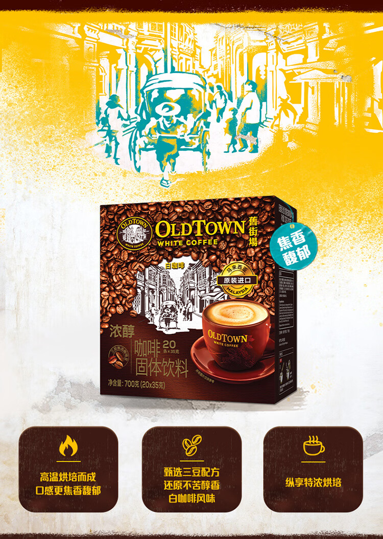 旧街场(OLDTOWN)速溶特浓原味白咖啡深烘浓醇口味马来西亚进口三合一35g*20条