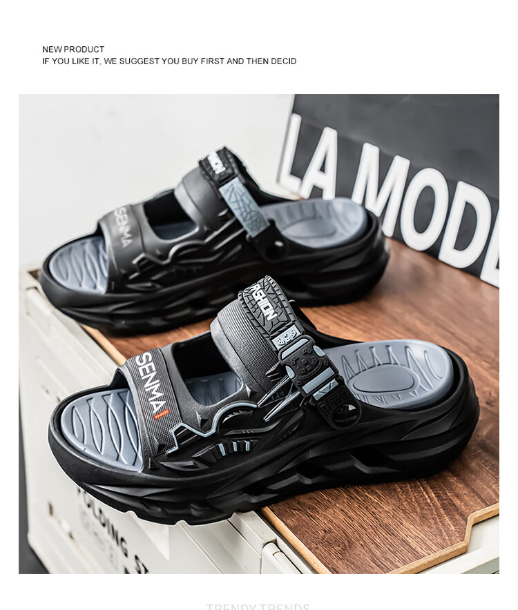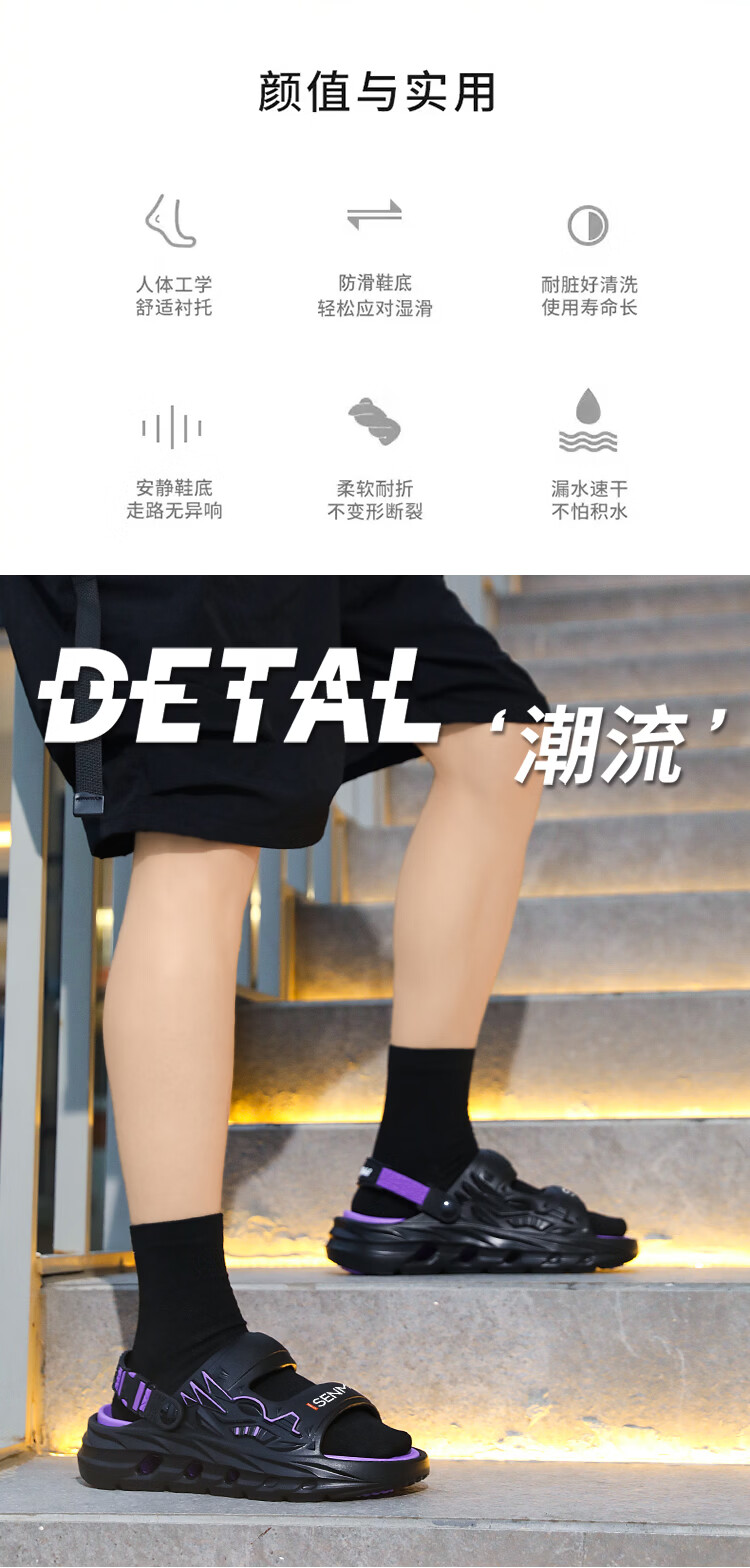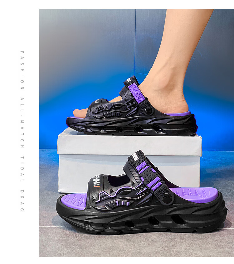 森馬凉鞋男2026夏季外穿防滑两用开车软底休闲沙滩鞋网红踩屎感凉拖鞋 黑紫【基础款】 38-39 现货秒发