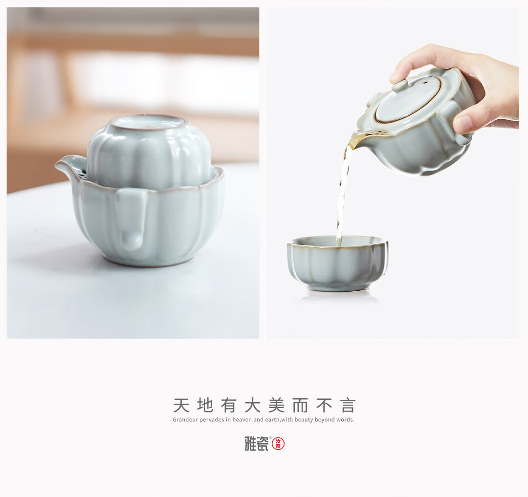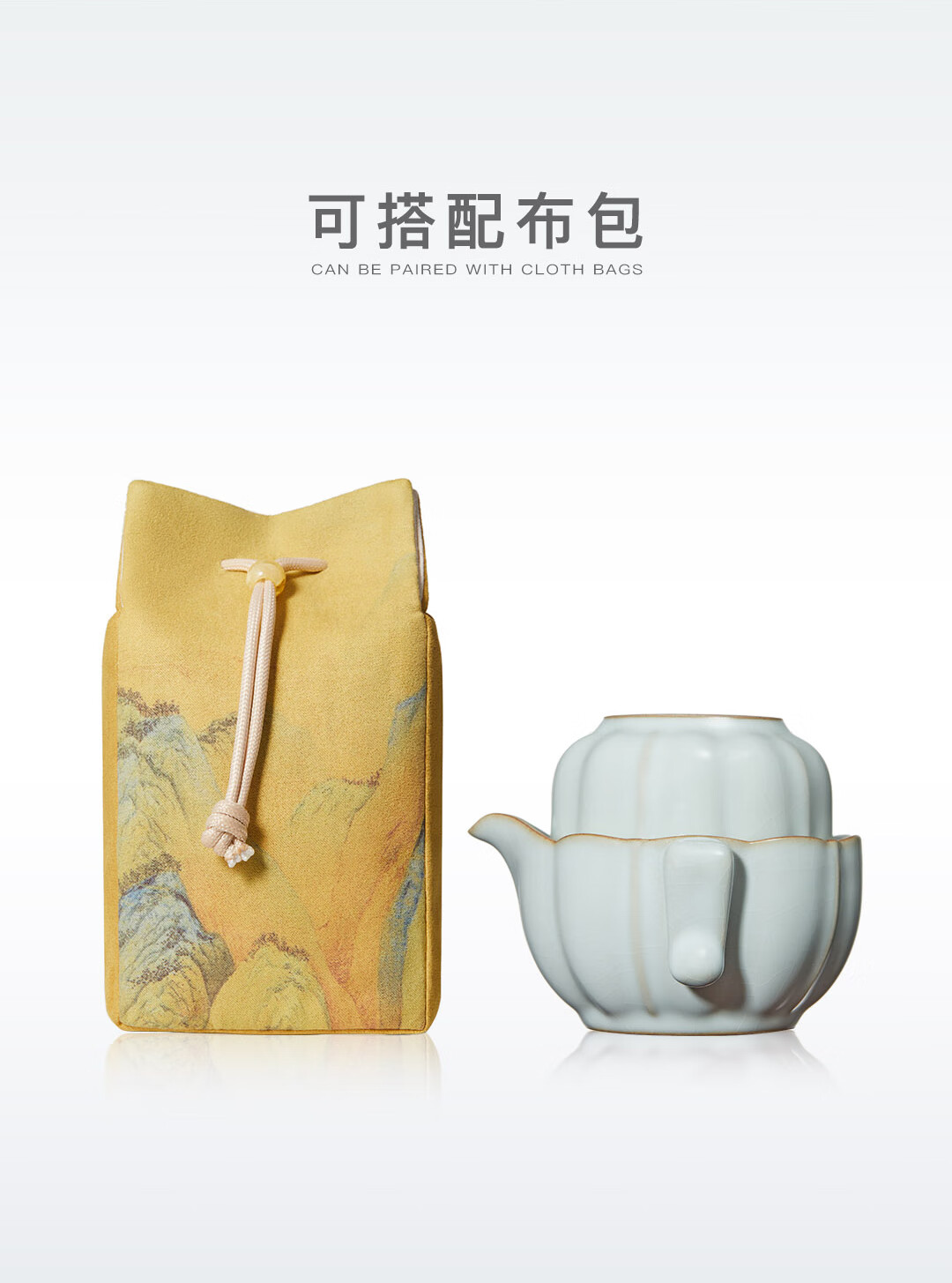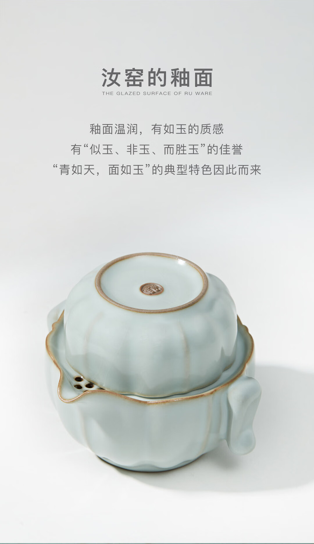 雅瓷汝窑旅行茶具快客杯单人户外便携茶杯套装南瓜礼盒装 汝窑小南瓜 一壶1杯