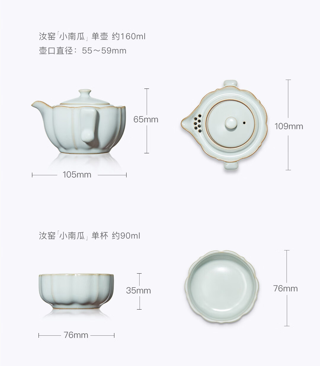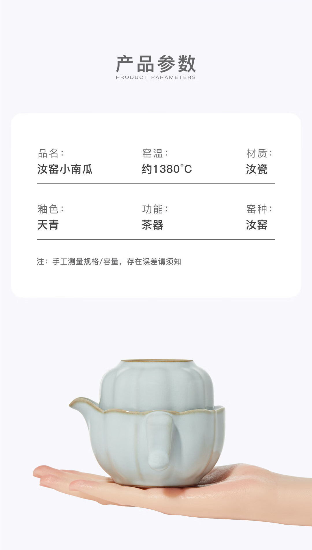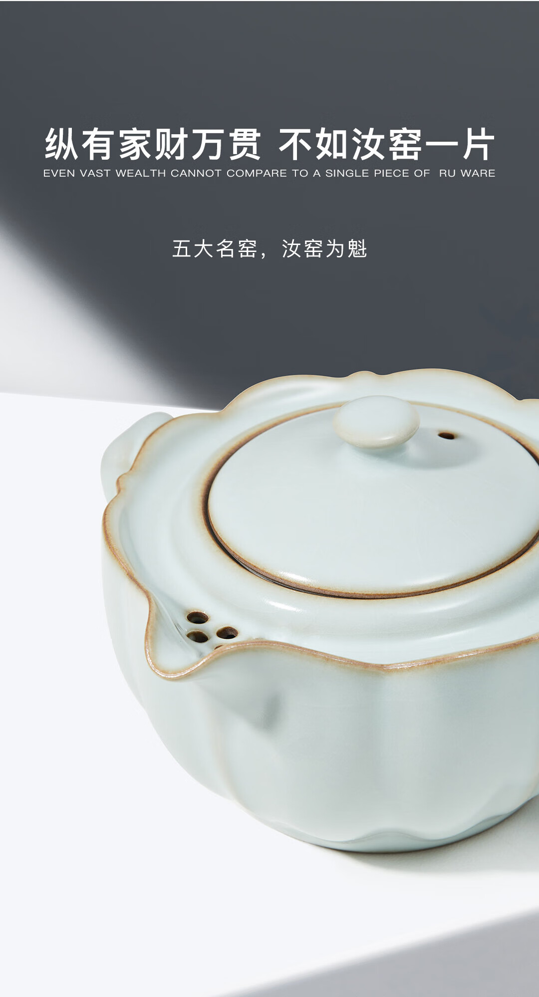 雅瓷汝窑旅行茶具快客杯单人户外便携茶杯套装南瓜礼盒装 汝窑小南瓜 一壶1杯
