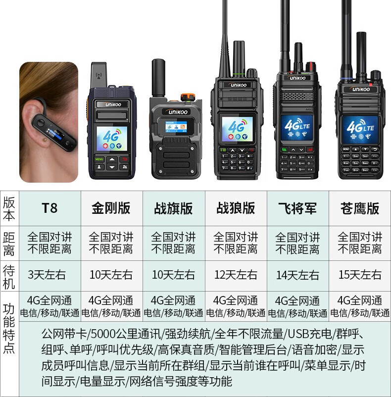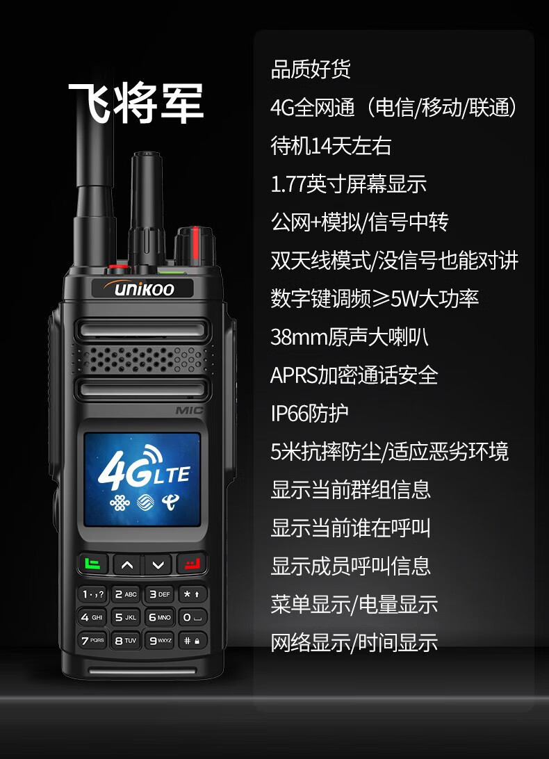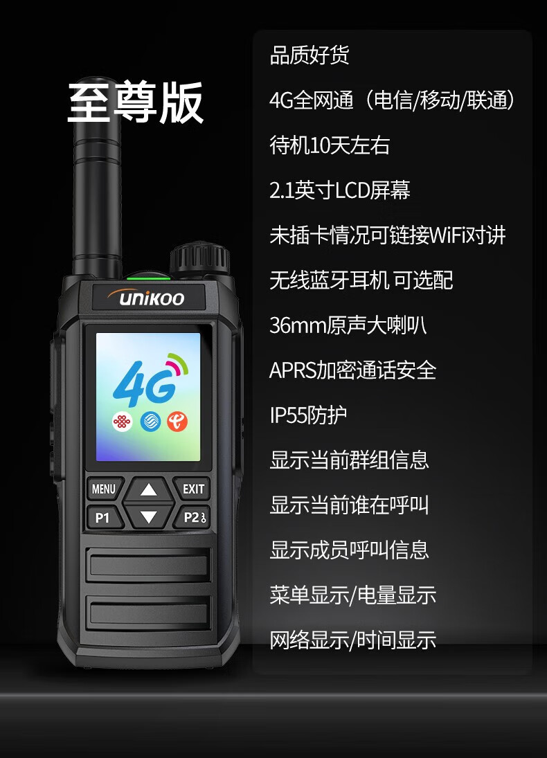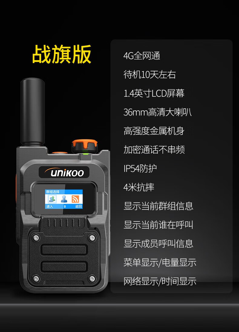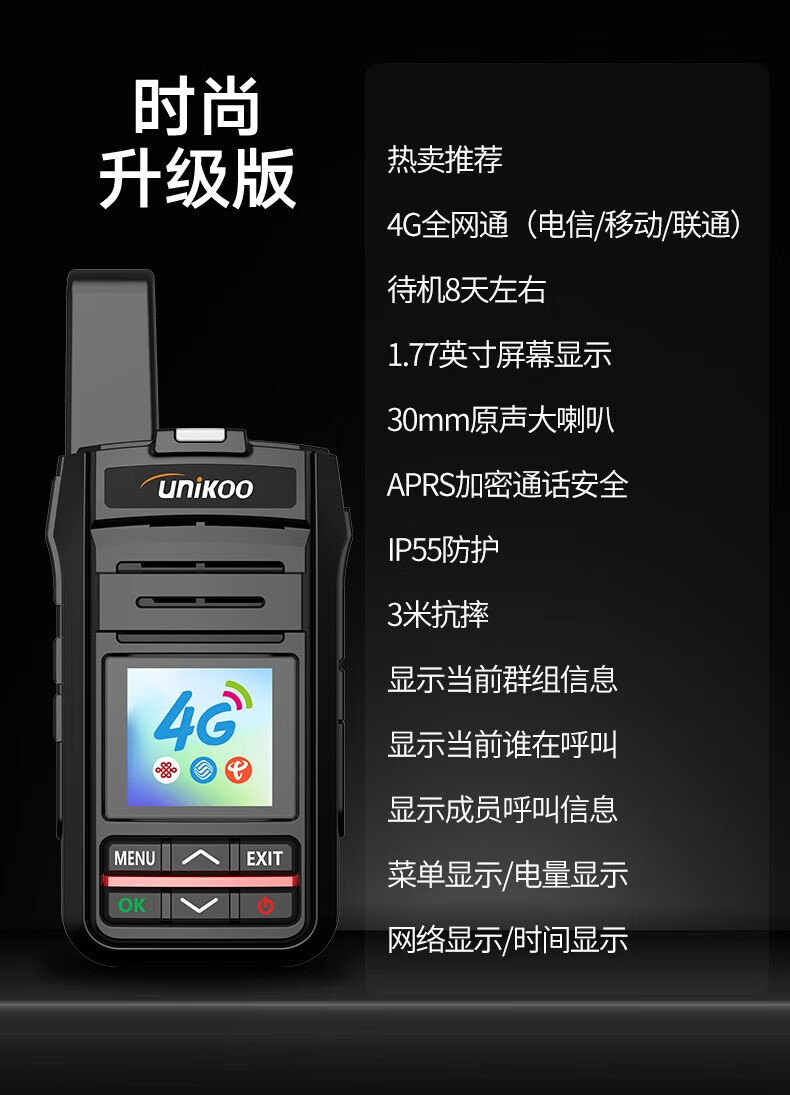UNIKOO 对讲机全国通4g公网对讲机插卡5000公里不限距离 医院酒店办公户外自驾游民用手台 时尚版/配挂绳