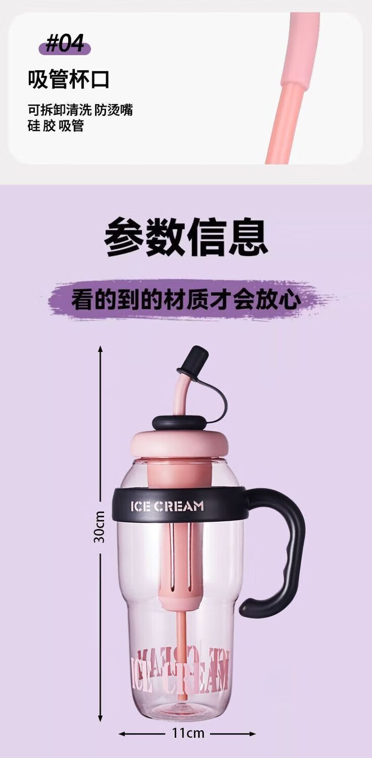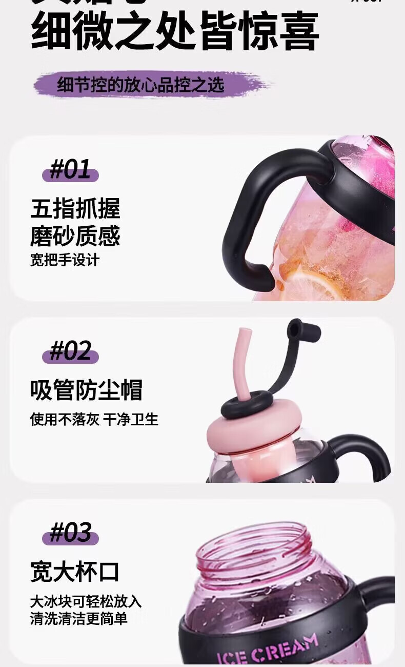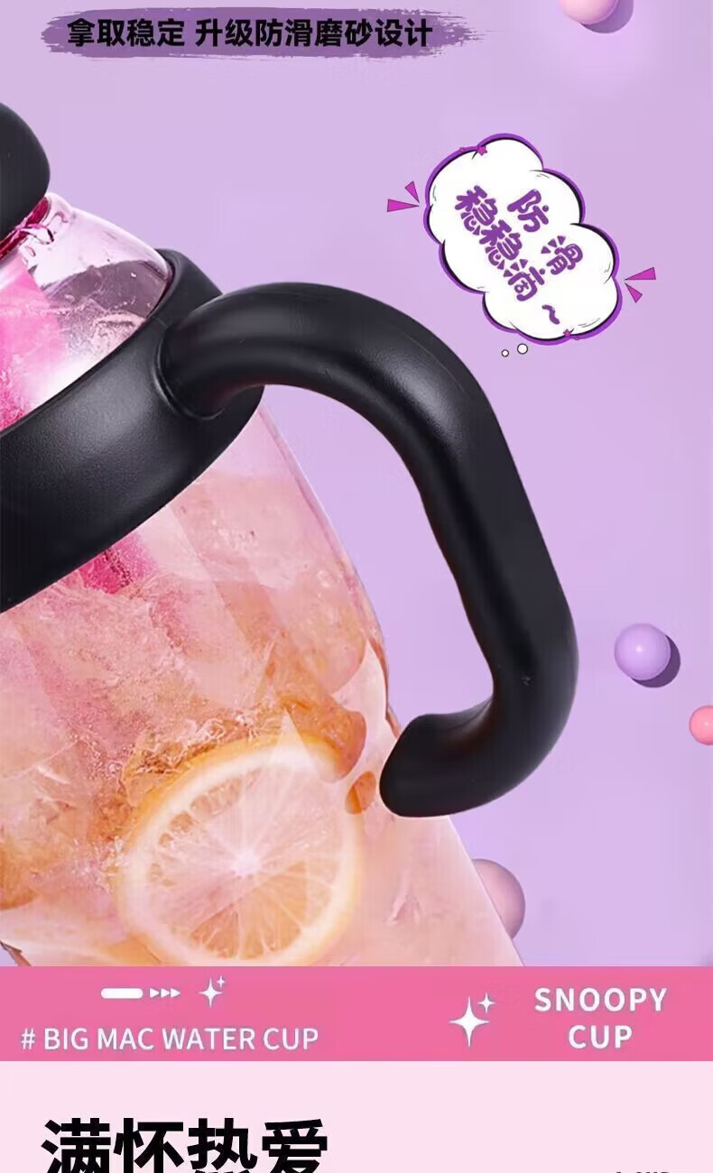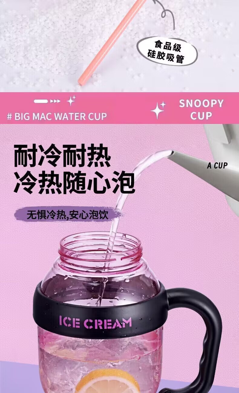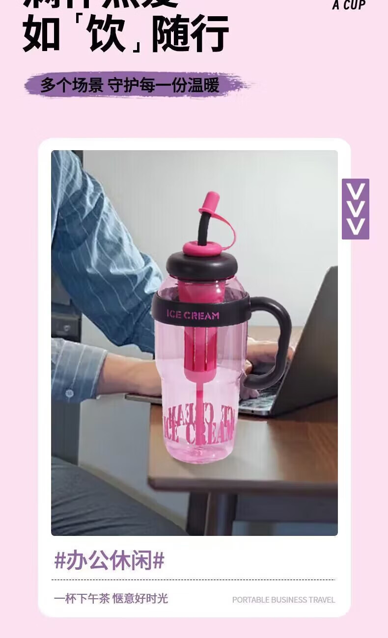收米(ShouMi)幸运肚肚杯大容量巨无霸水杯茶漏花茶吸管杯高颜值把手便捷冰霸杯 玫红黑 冰霸杯+杯刷 1300ml 【PC】耐摔耐高温