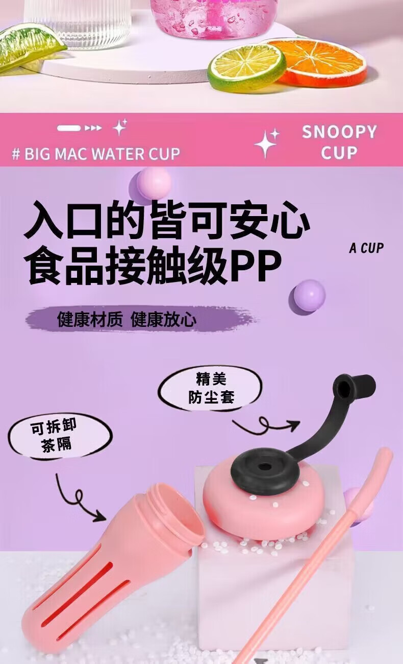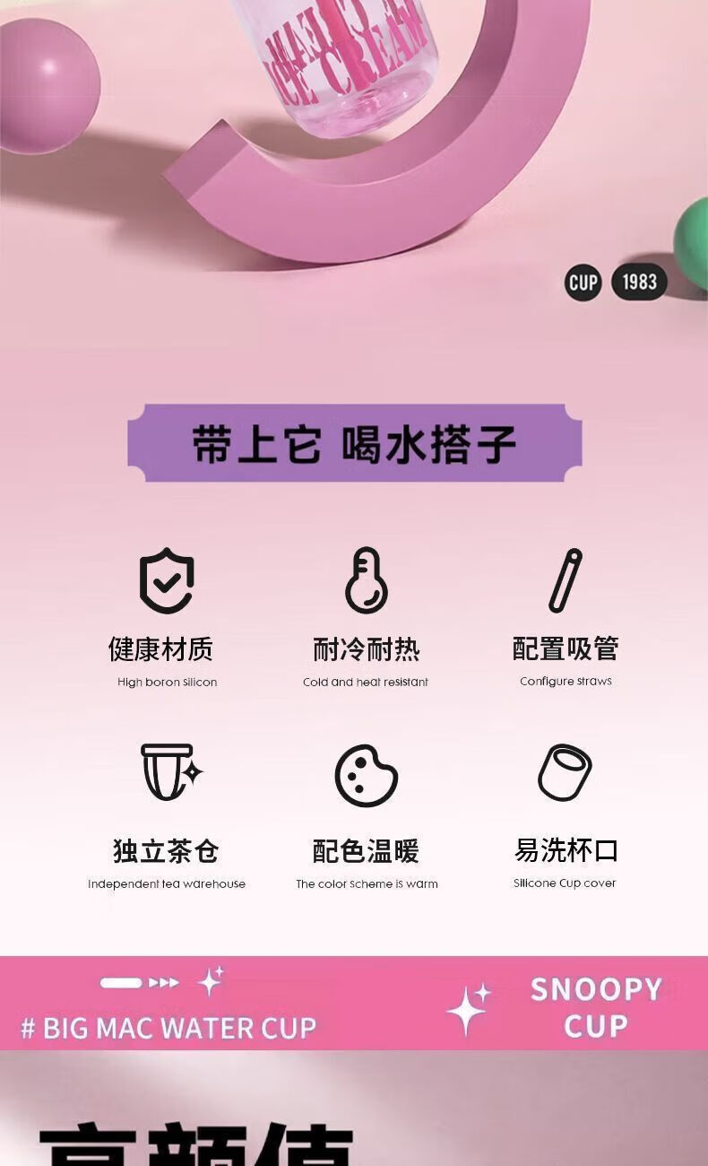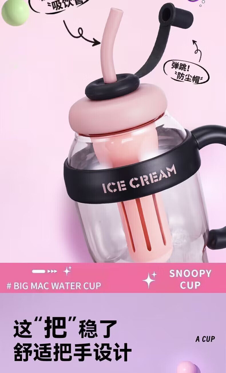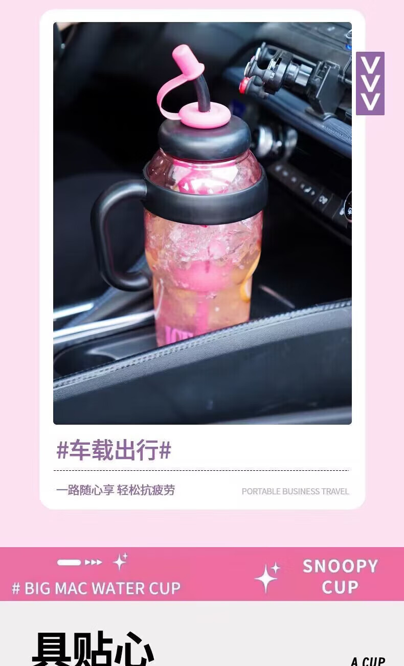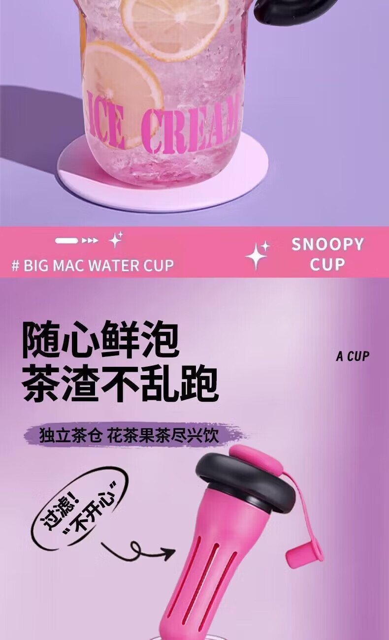 收米(ShouMi)幸运肚肚杯大容量巨无霸水杯茶漏花茶吸管杯高颜值把手便捷冰霸杯 玫红黑 冰霸杯+杯刷 1300ml 【PC】耐摔耐高温