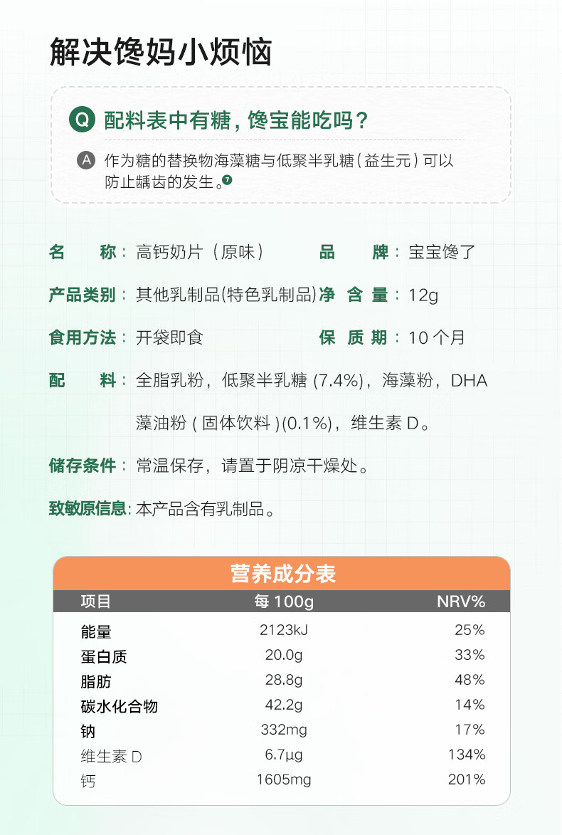 宝宝馋了高钙奶片无添加白砂糖奶贝儿童零食原味尝鲜装12g
